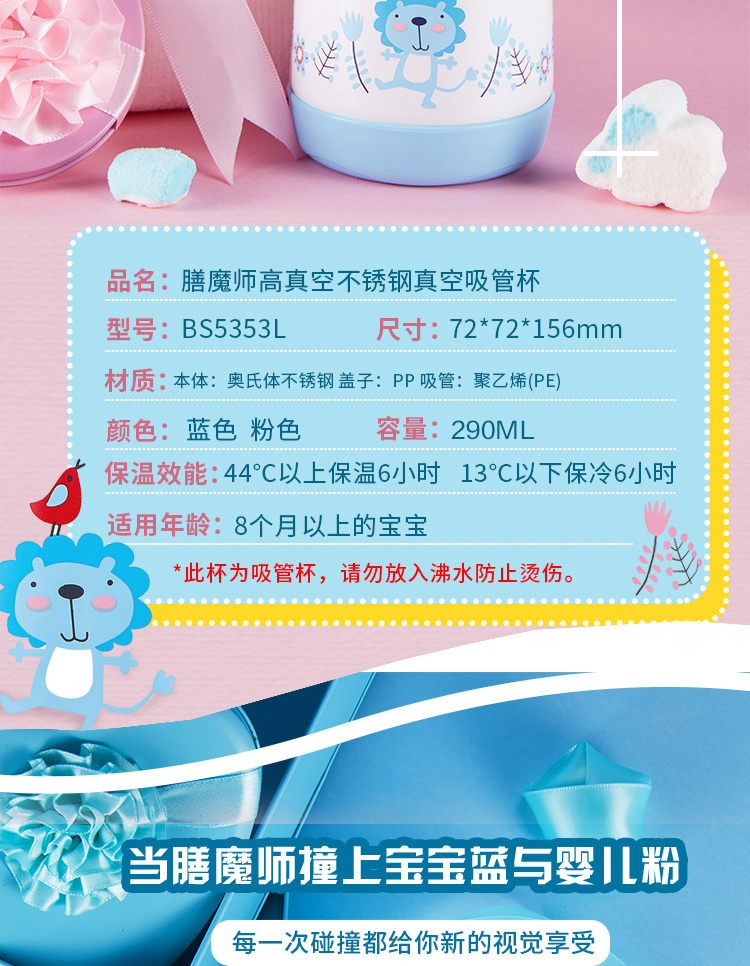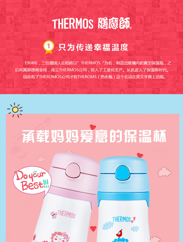 膳魔师lion系列高真空不锈钢吸管杯BS5353L305ml