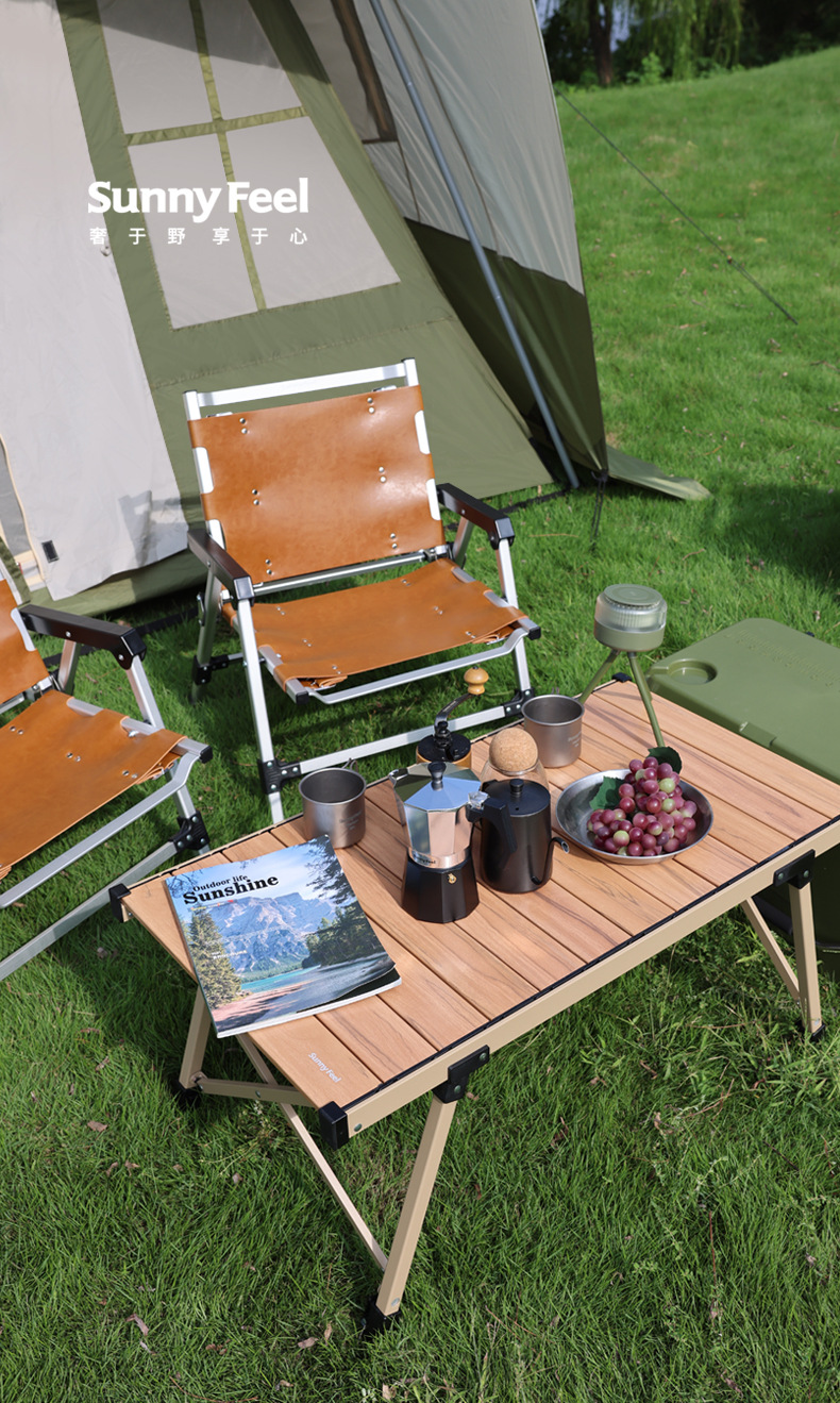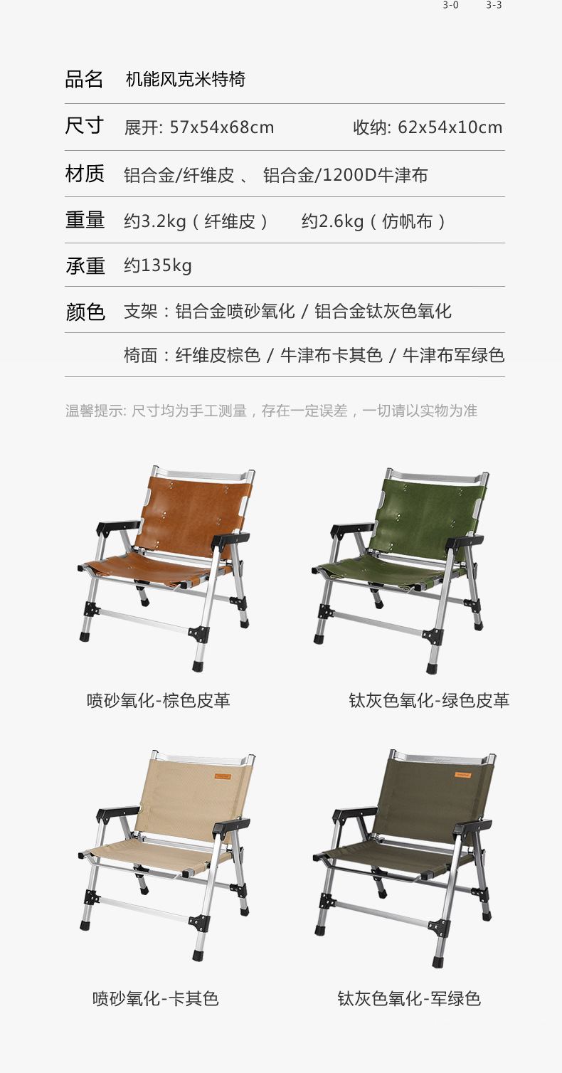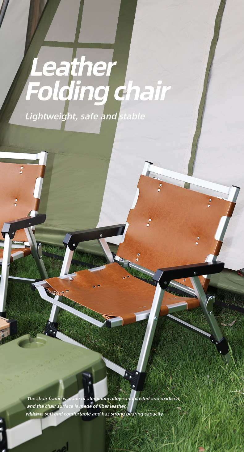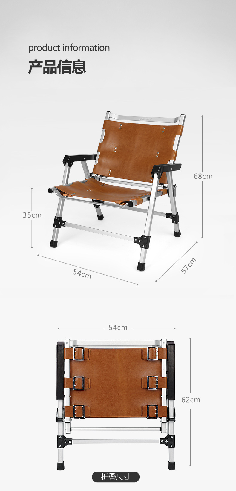 SunnyFeel山扉户外露营折叠椅野营野餐克米特椅_皮质帆布靠背椅子