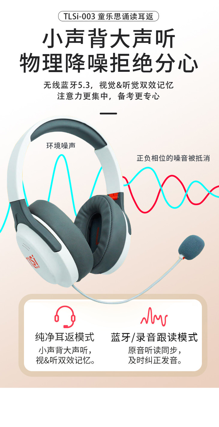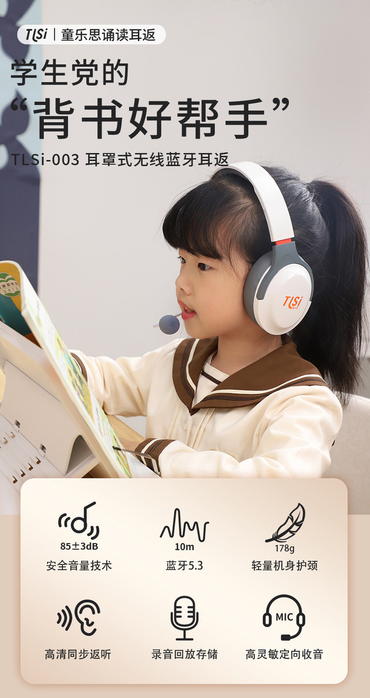 【童乐思诵读耳返(升级录音蓝牙款)】录音背书学习耳机/阅读、朗读、练习口语、背诵,提升效率,加强记忆/中小学生通用/网课图书馆地铁等各场景都可用