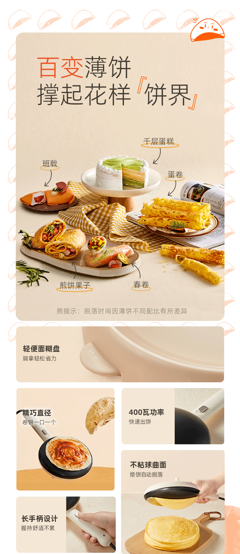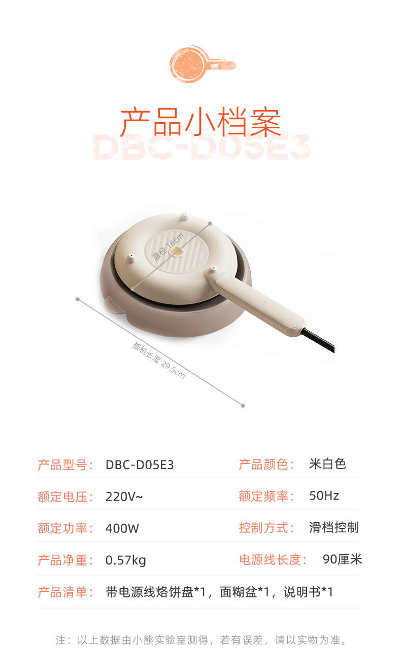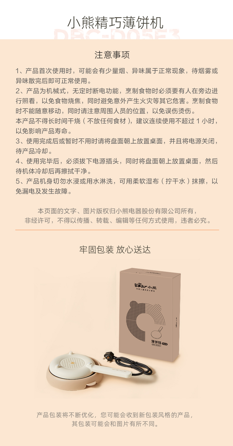 【小程序】小熊电饼铛(薄饼铛) DBC-D05E3 米白色 拨动开关