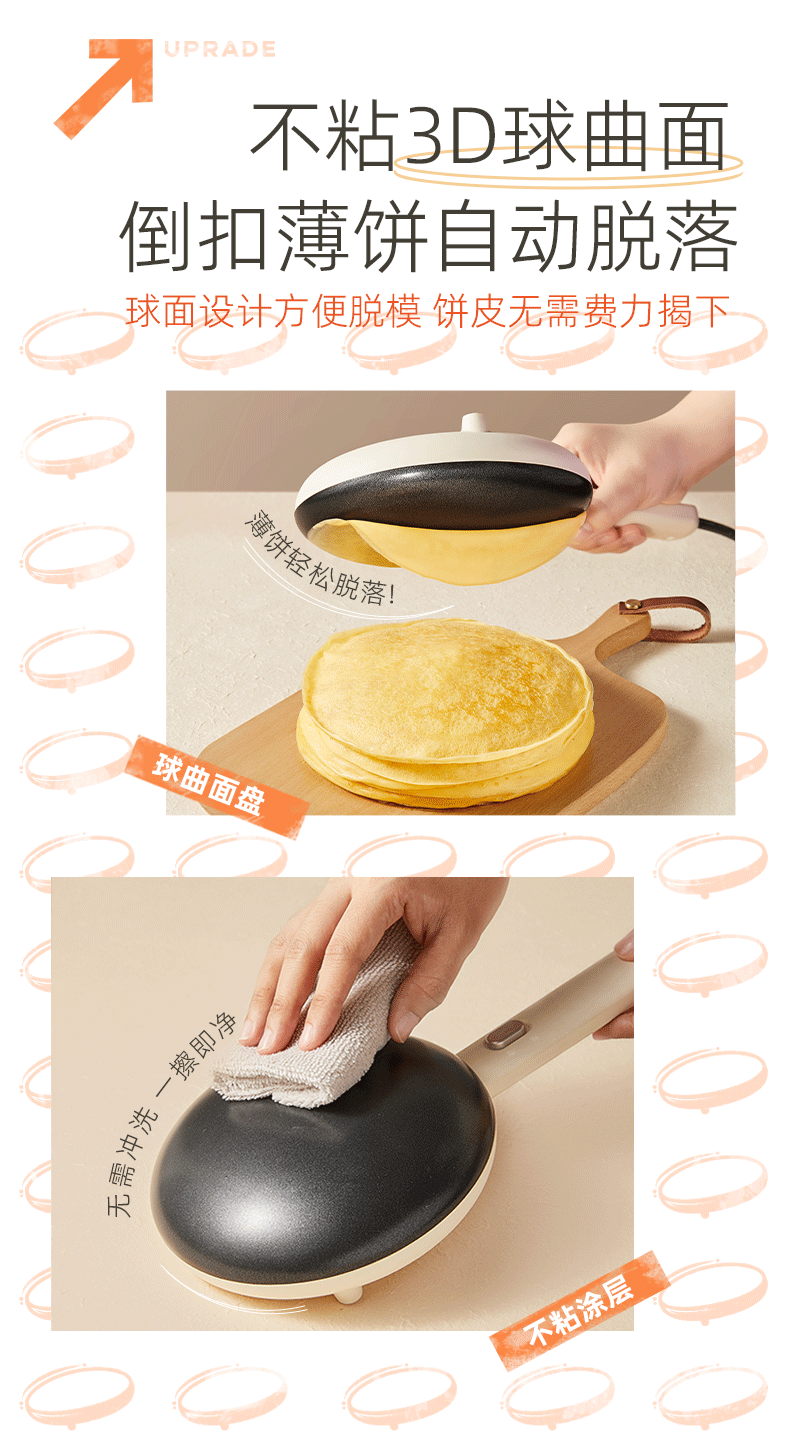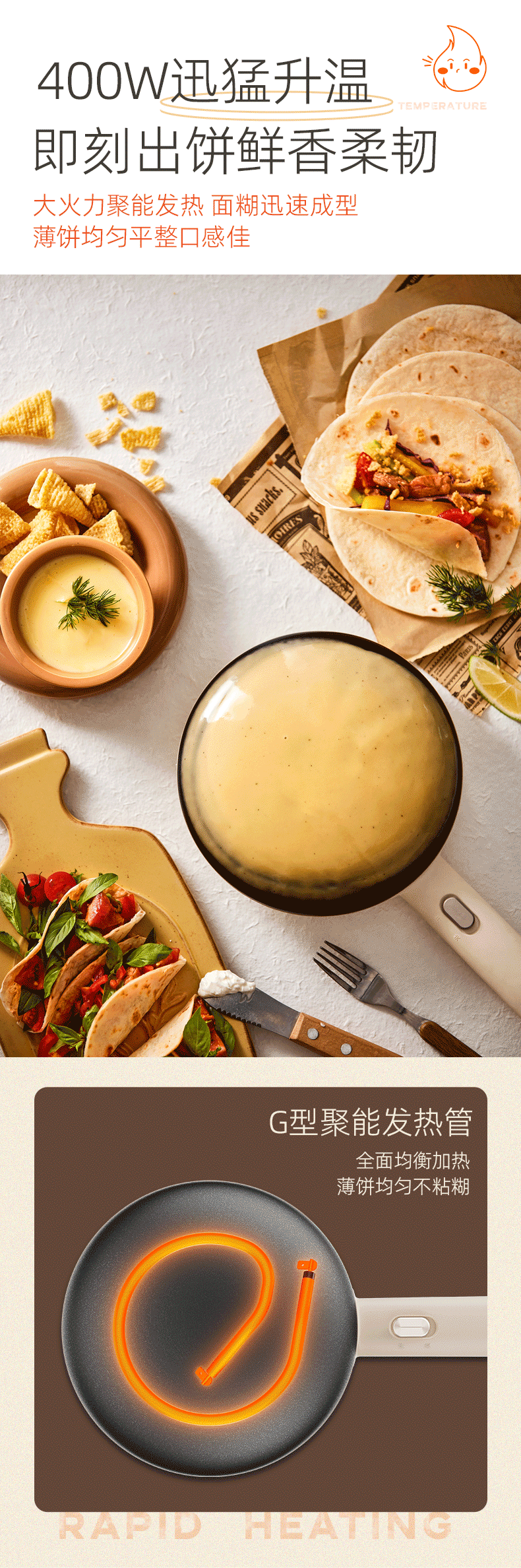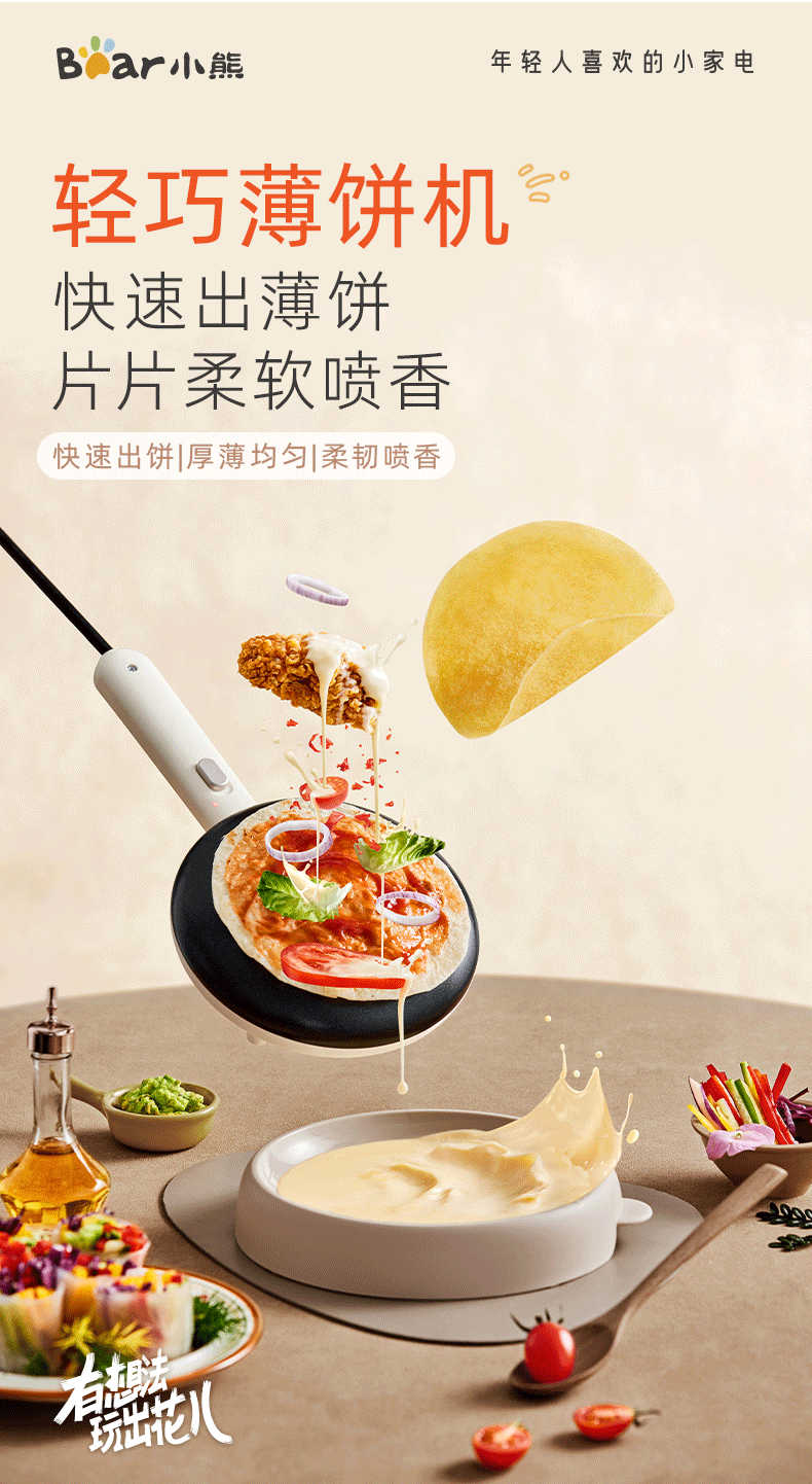 【小程序】小熊电饼铛(薄饼铛) DBC-D05E3 米白色 拨动开关
