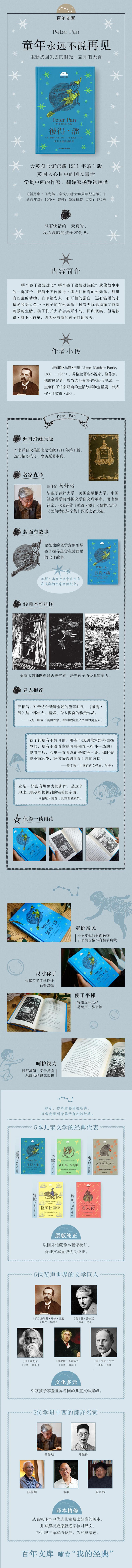 哪个孩子没想过飞?哪个孩子没想过探险?就像故事中的一群孩子,跟随小飞侠彼得·潘去往神奇的永无岛。那里有凶猛的动物,有印第安人,有可怕的强盗,还有温柔的小精灵和美人鱼……孩子们在永无岛上过着无忧无虑而又惊险刺激的生活。孩子们长大后会离开小岛,回归现实,但是彼得·潘不会孤单,因为总有新的孩子向他奔去。