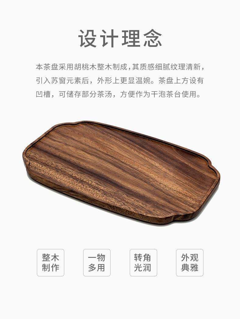 雅集茶具茶盘胡桃木茶托盘(苏窗-长方款)