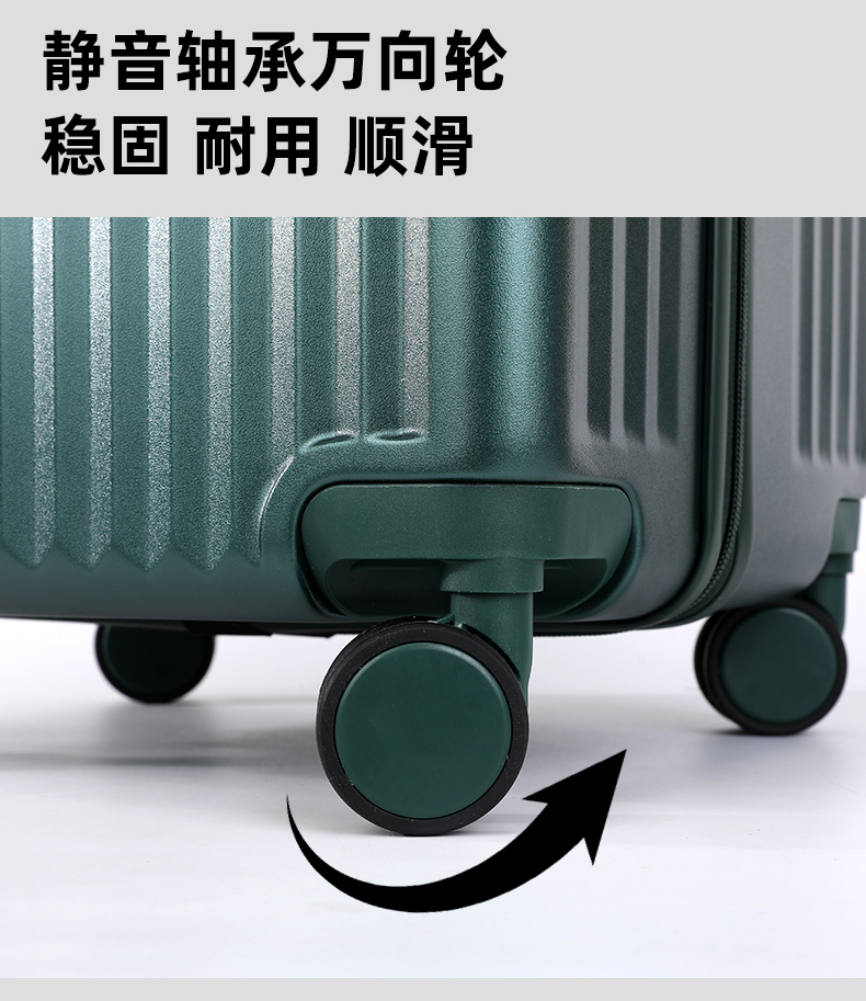 3,轮子采用TPE材质,超级静音,顺滑。360度自由旋转,可以跳华尔兹的行李箱。