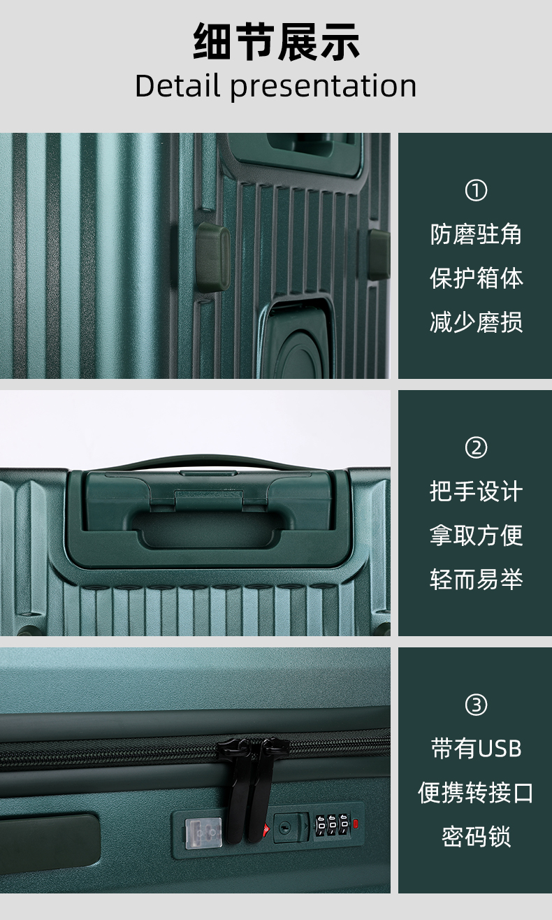 5,手把采用镶嵌下沉式设计,极限缩小箱子外廓面积, 非常高端大气。