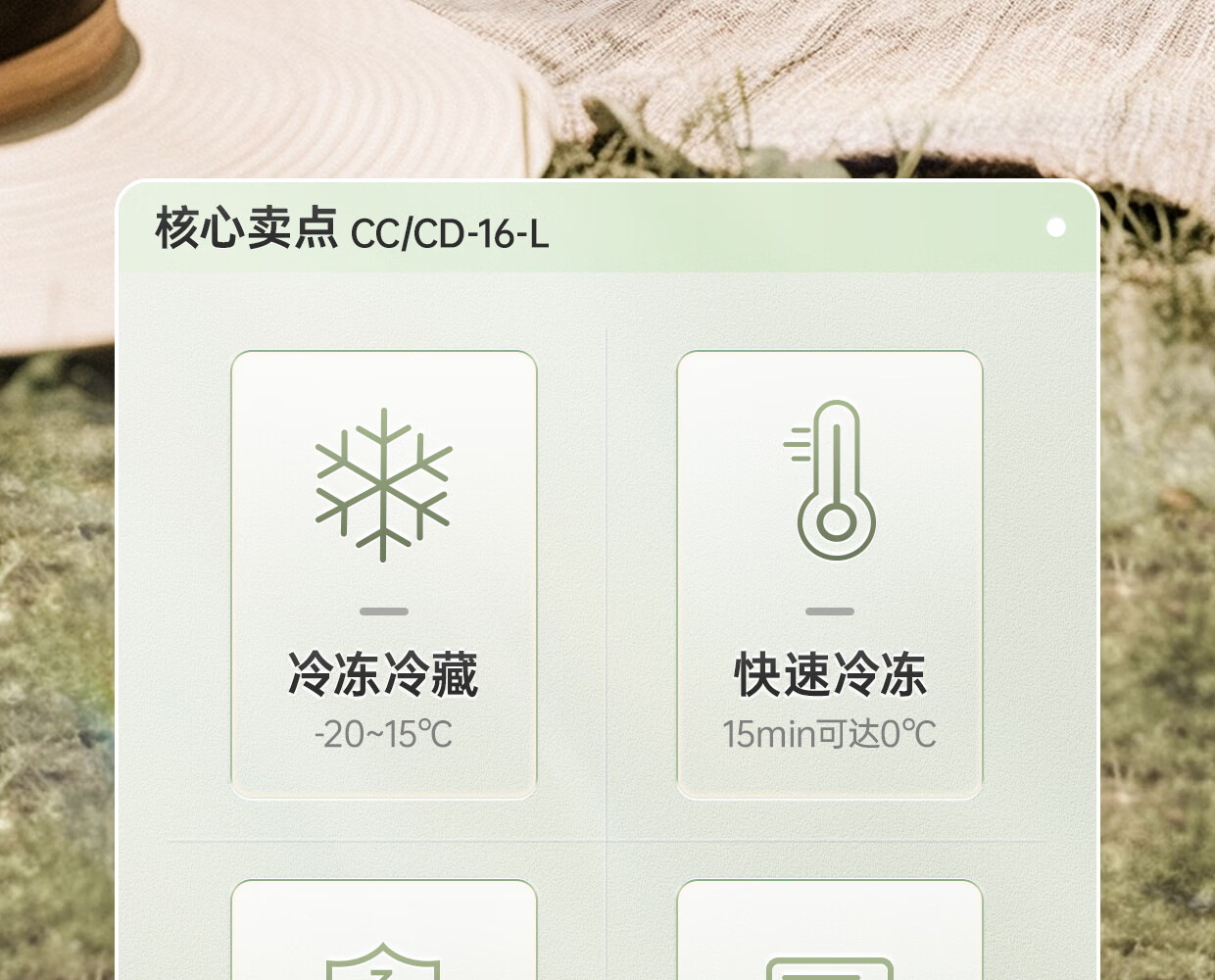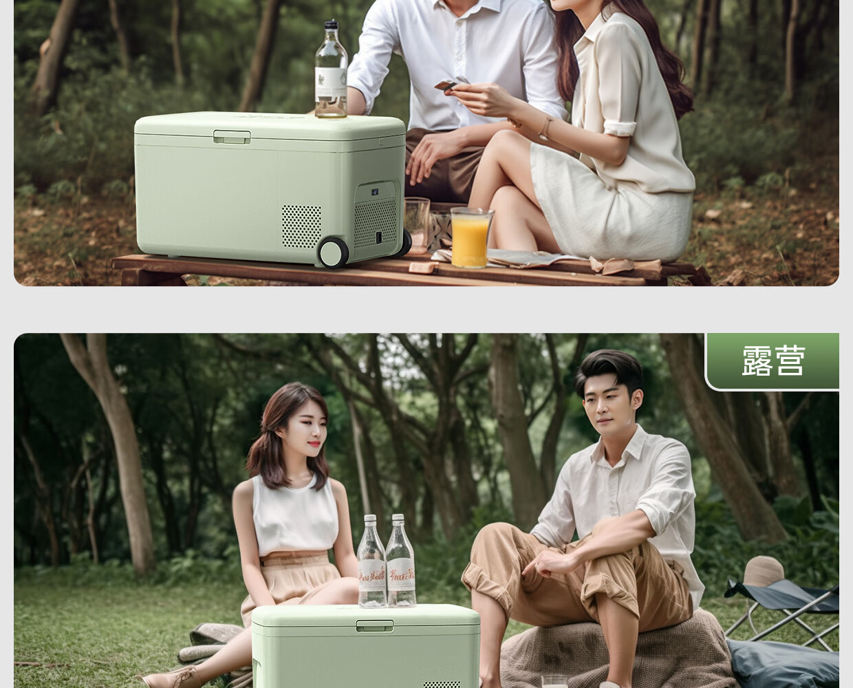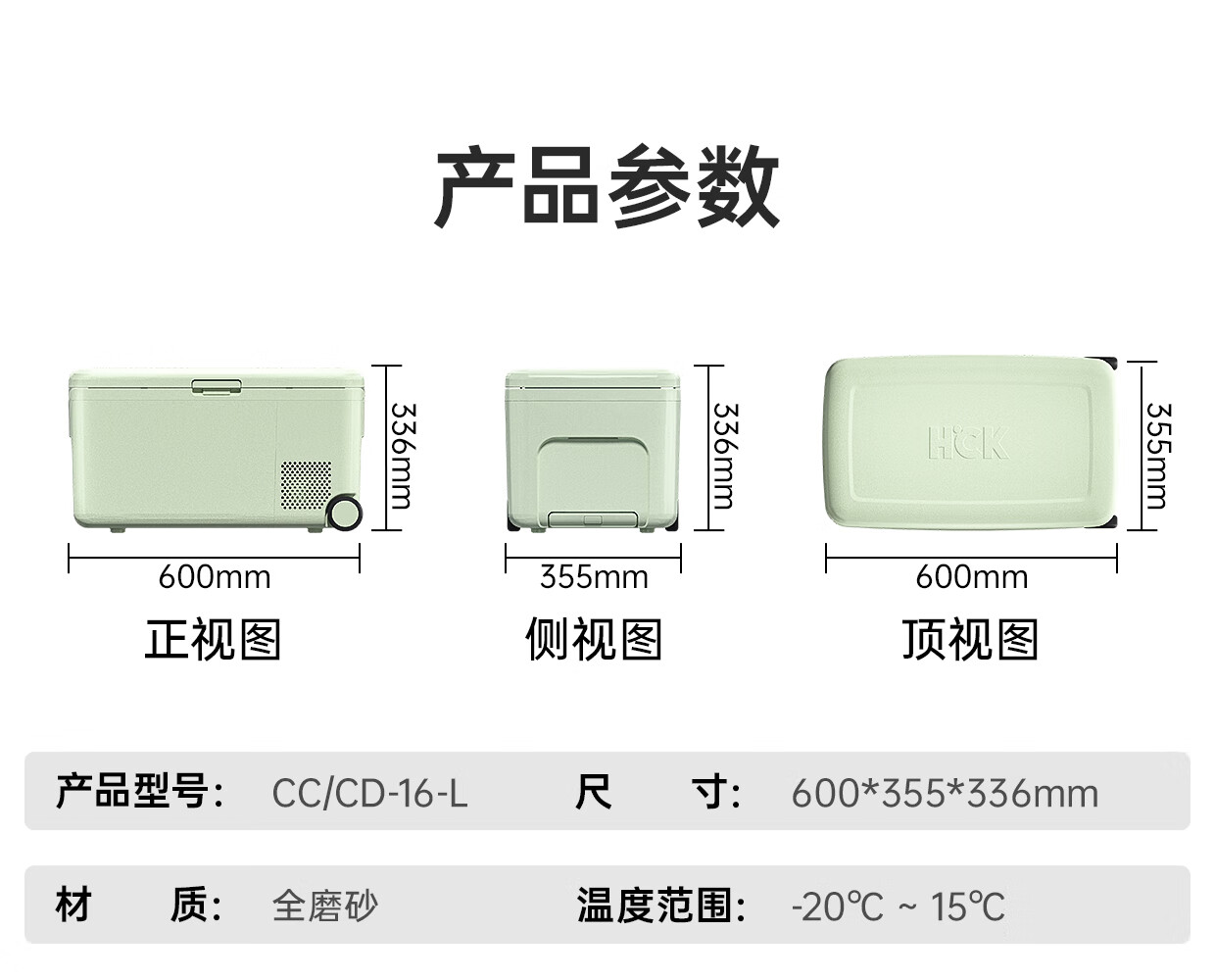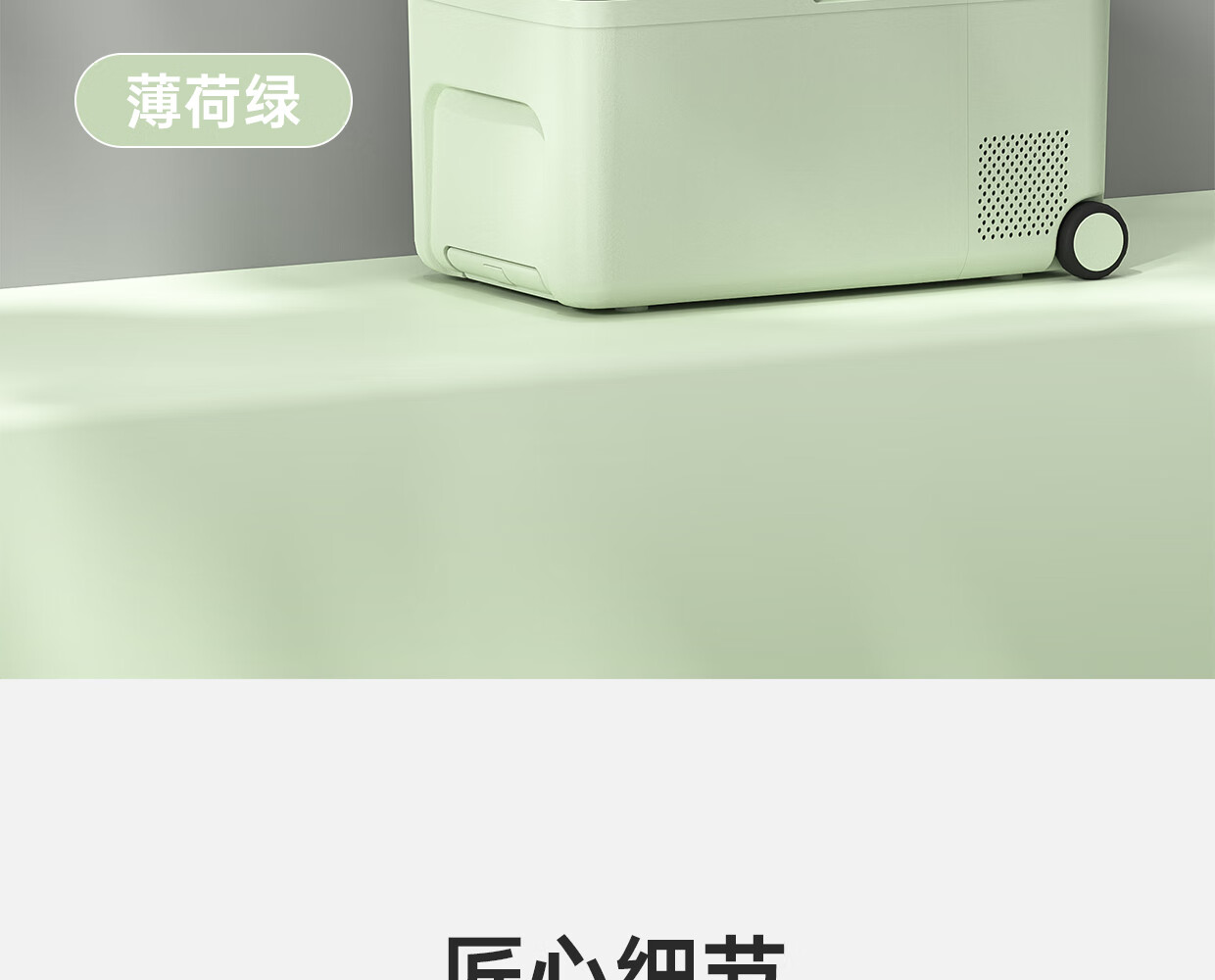 哈士奇复古露营户外车载压缩机制冷冰箱冷冻冷藏拉杆冰箱CC/CD-16-L 16.5L -薄荷绿