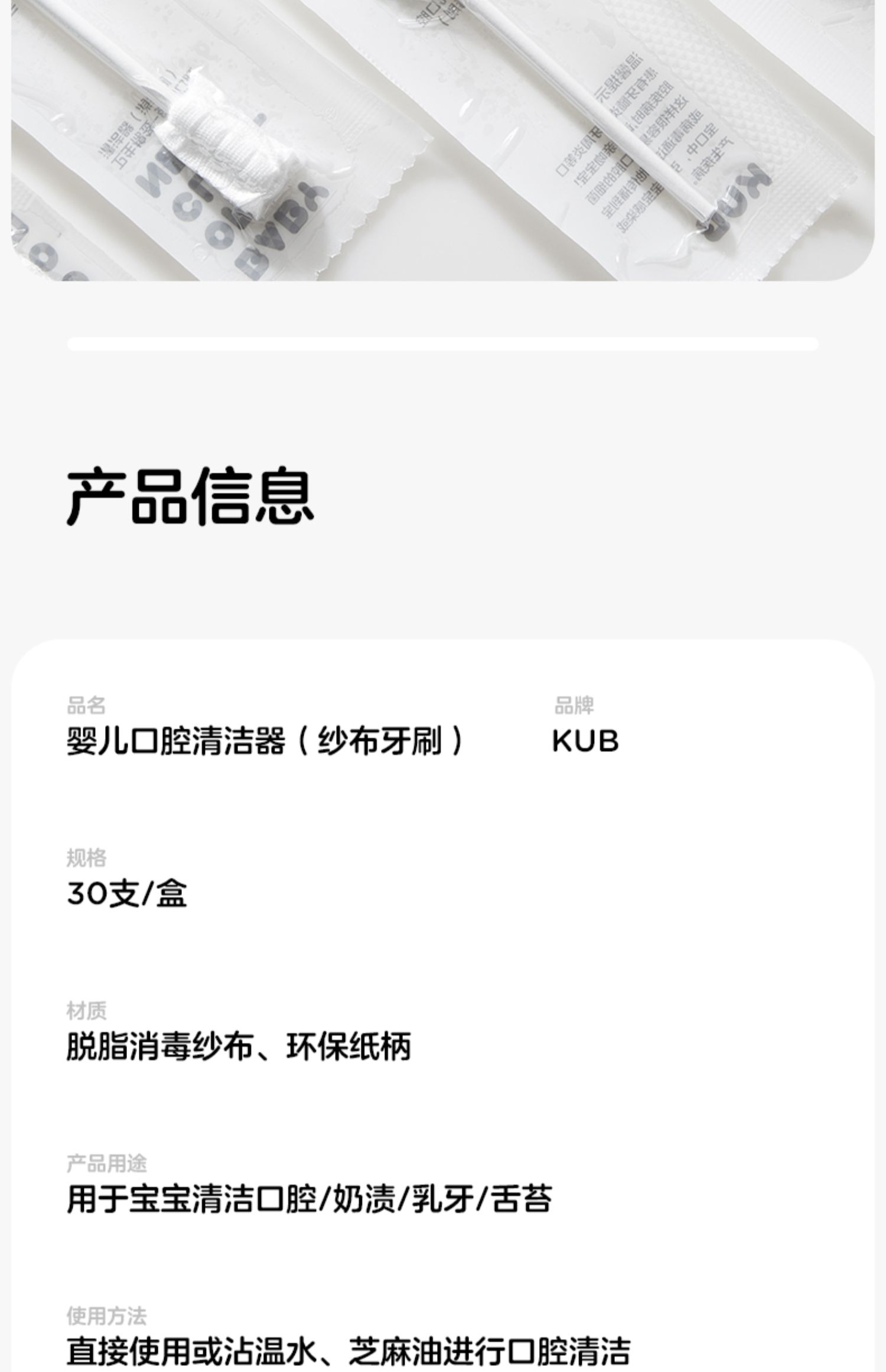 【49选5专区】KUB可优比婴儿牙刷口腔清洁器0一1岁婴幼儿宝宝清洗舌苔纱布棉棒