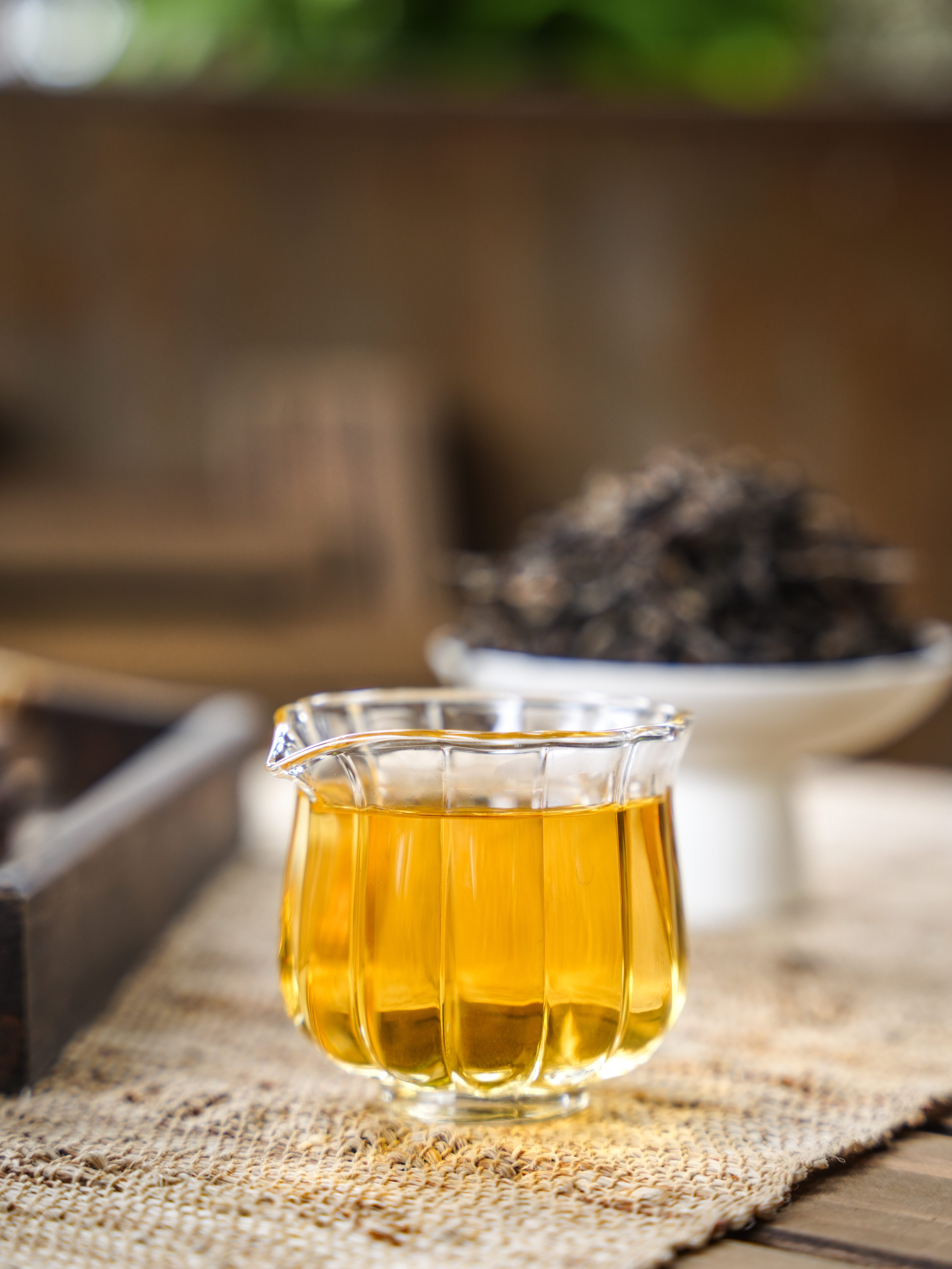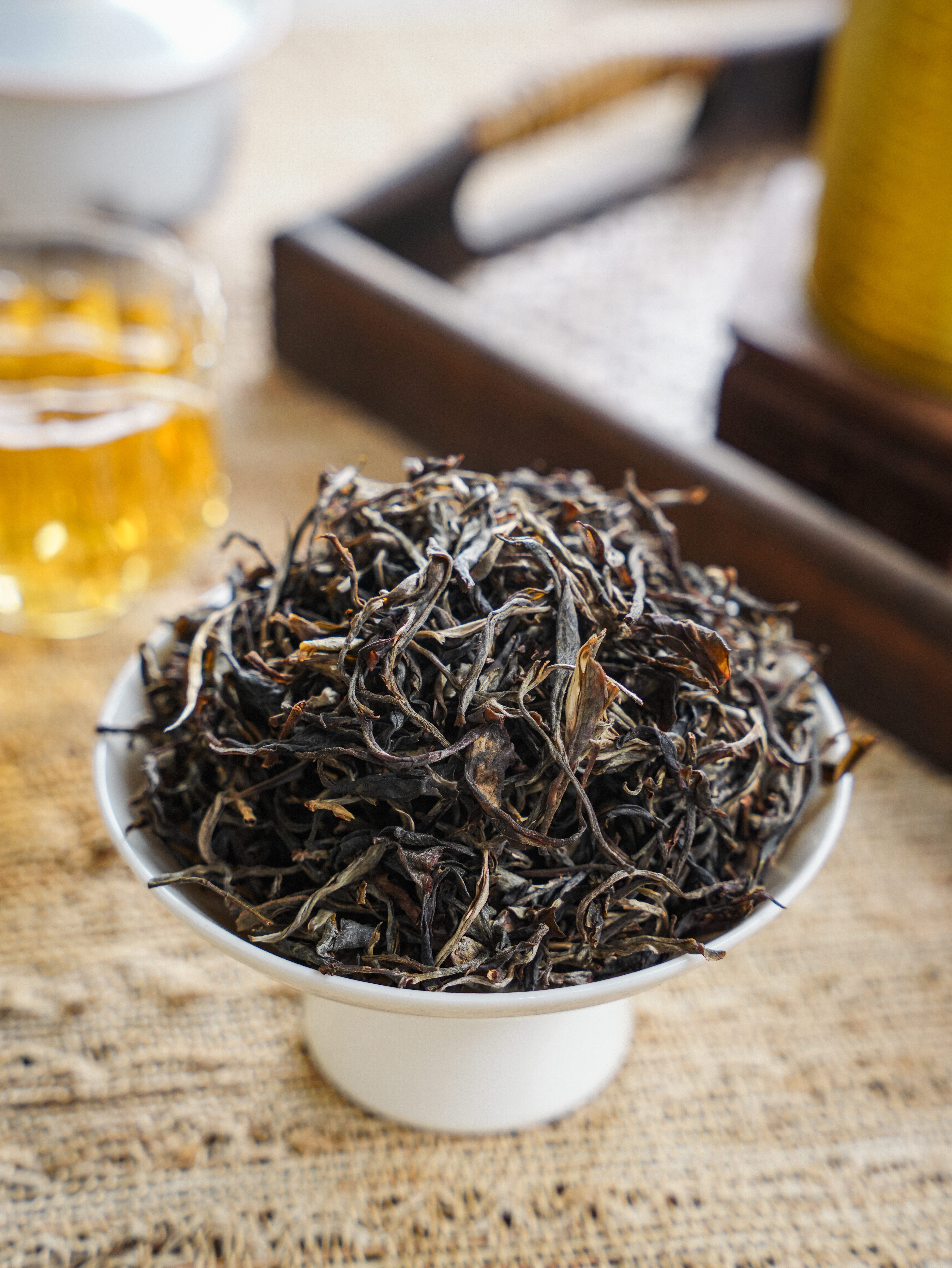 本品凤鸣山单株茶外观条索更加粗壮,色泽略深,茶汤稠厚,入口滋味浓酽饱满,苦重而涩轻,韵味持久。独特的是,在存放得当的情况下,毛茶经过半年左右的时间,会转化出一种花蜜混合着阳光照射在苔鲜上的味道,隽永得令人痴迷,啜一口不忍咽下,就如永德得山水、永德的味道。