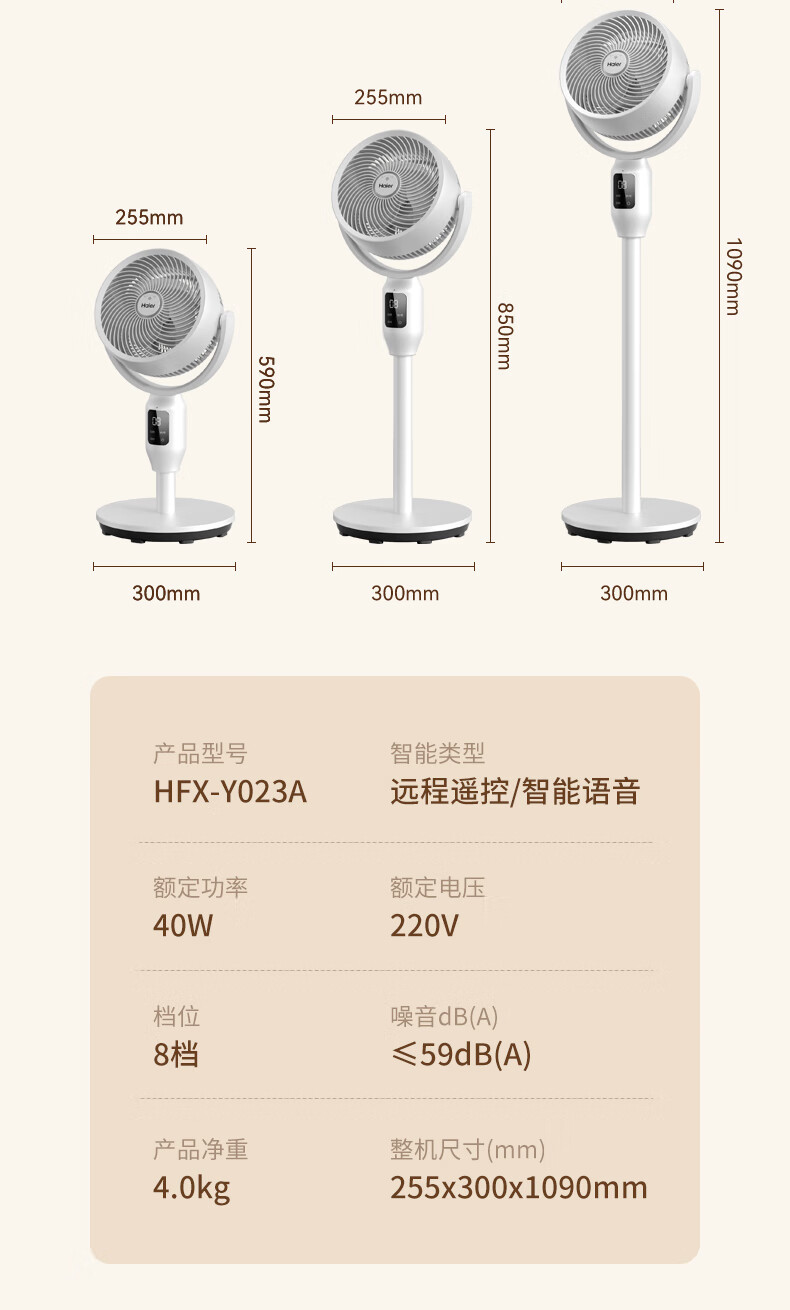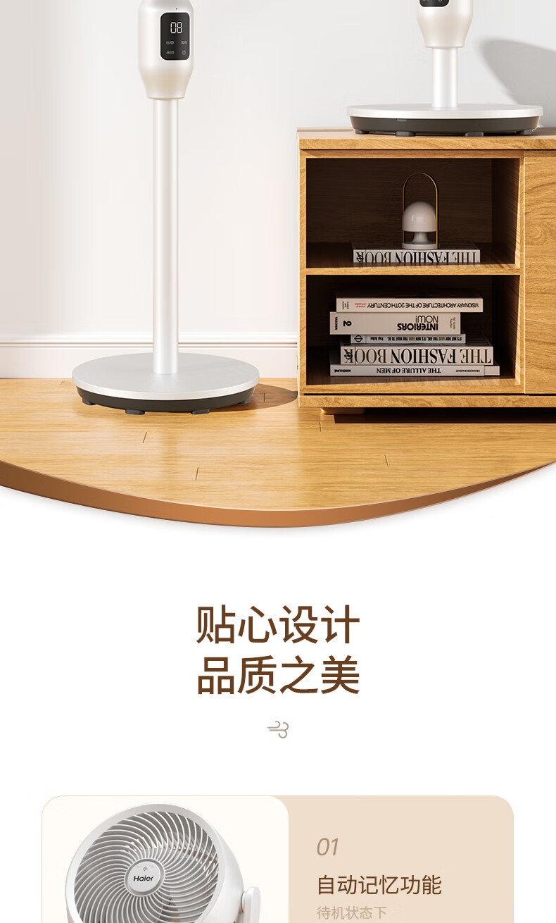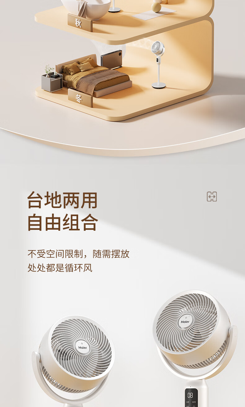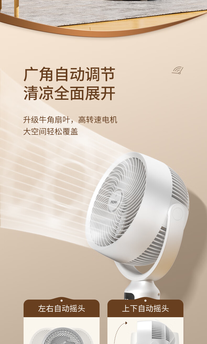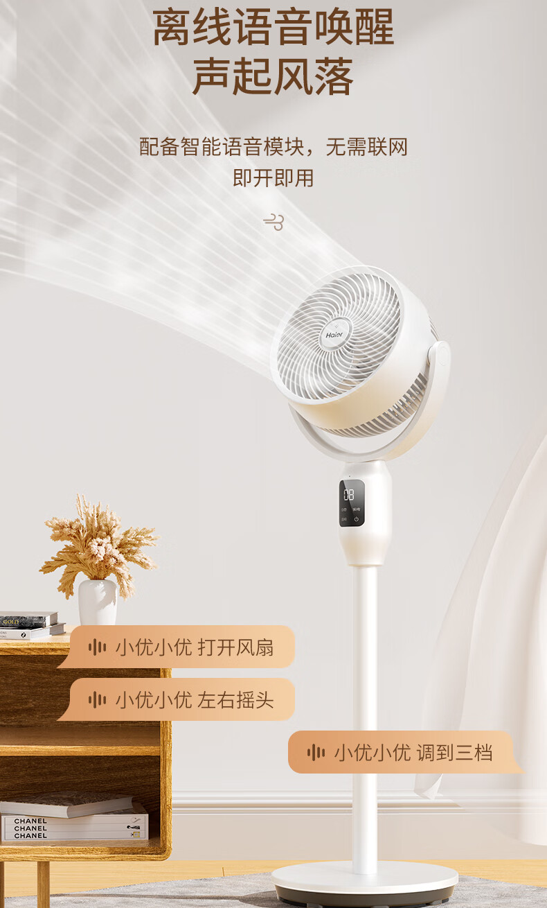 海尔(Haier)空气循环扇家用落地智能语音大风力轻音电风扇台立两用香薰盒远程遥控办公室电扇 【智能语音】白色遥控款 HFX-Y023A