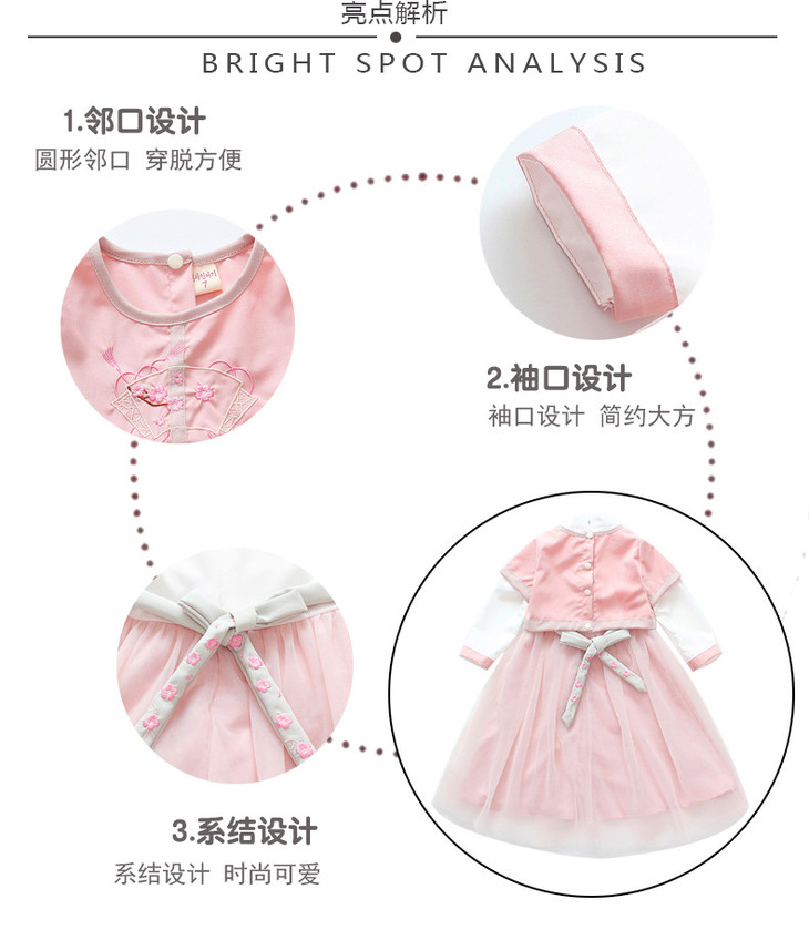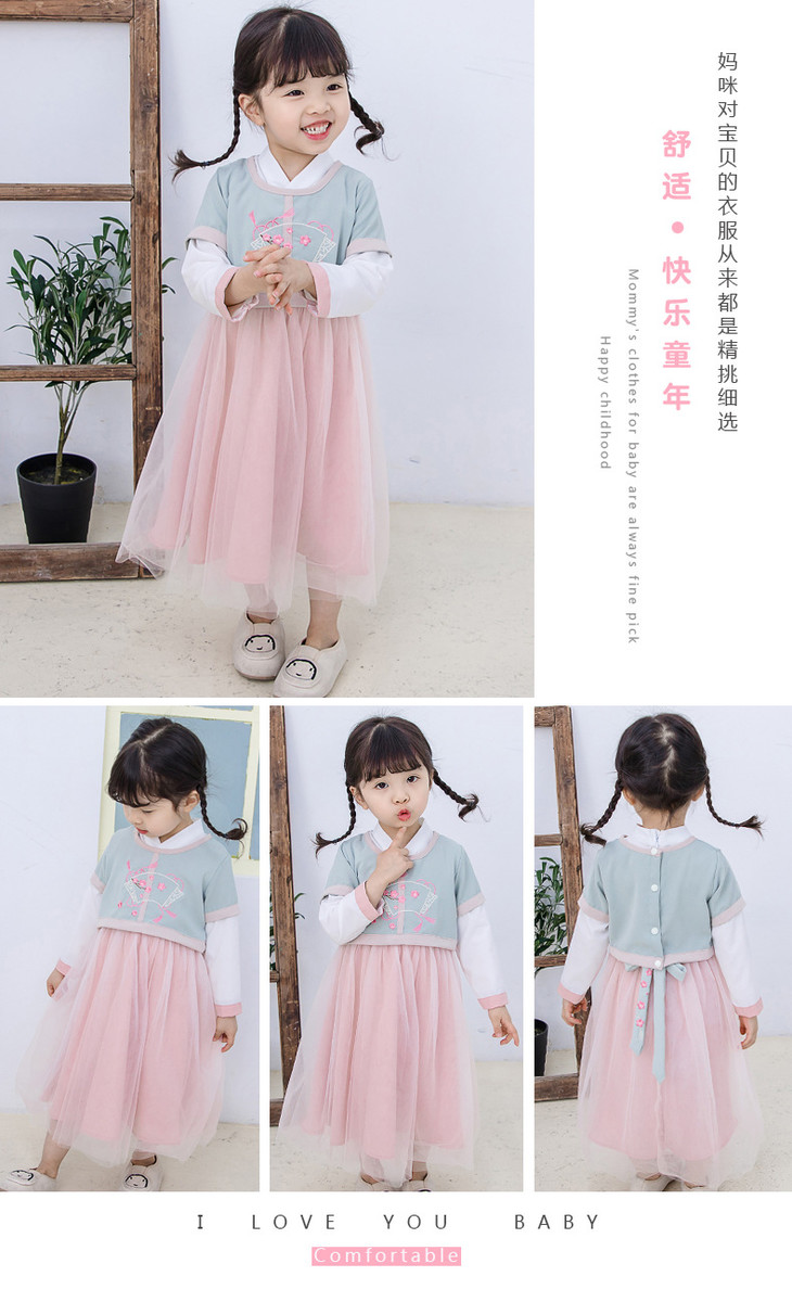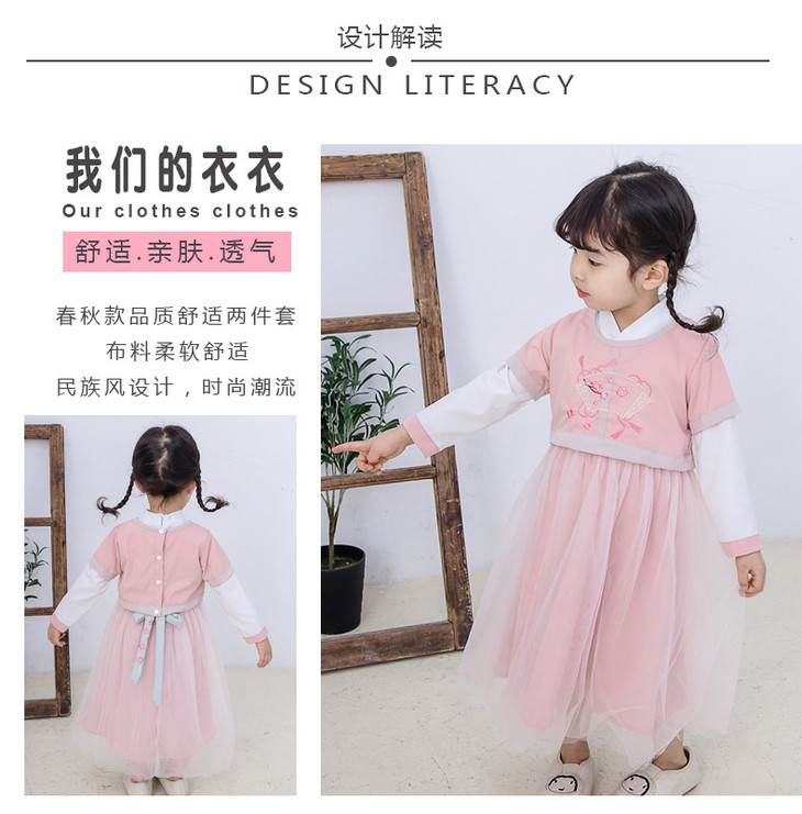 【童装】春季新款童装 女童民族风绣花汉服襦裙两件套中小童复古套装