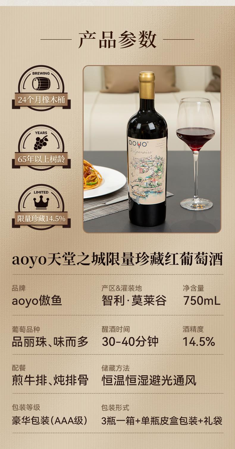 傲鱼智利原装原瓶进口红酒天堂之城红葡萄酒整箱礼盒装