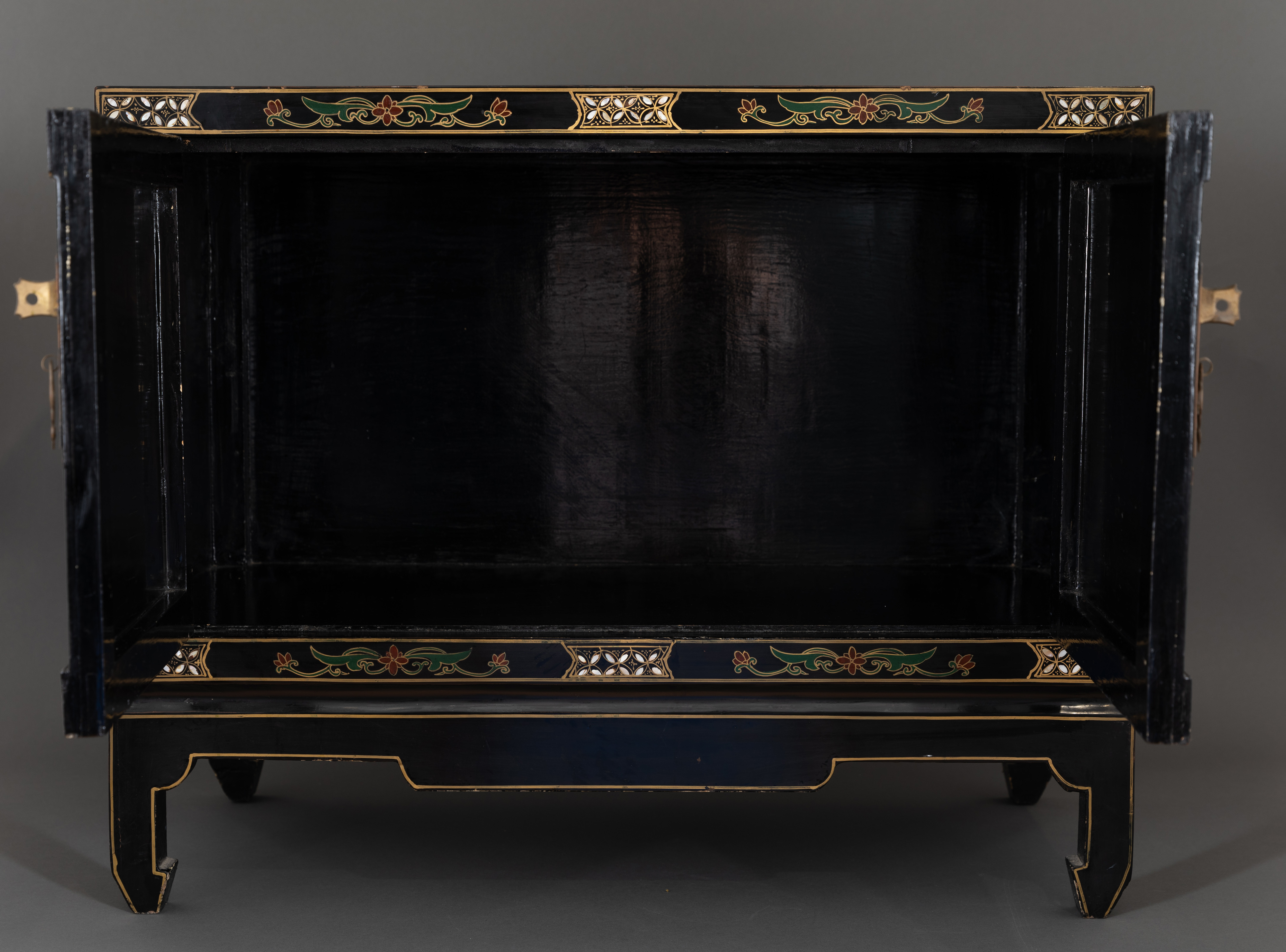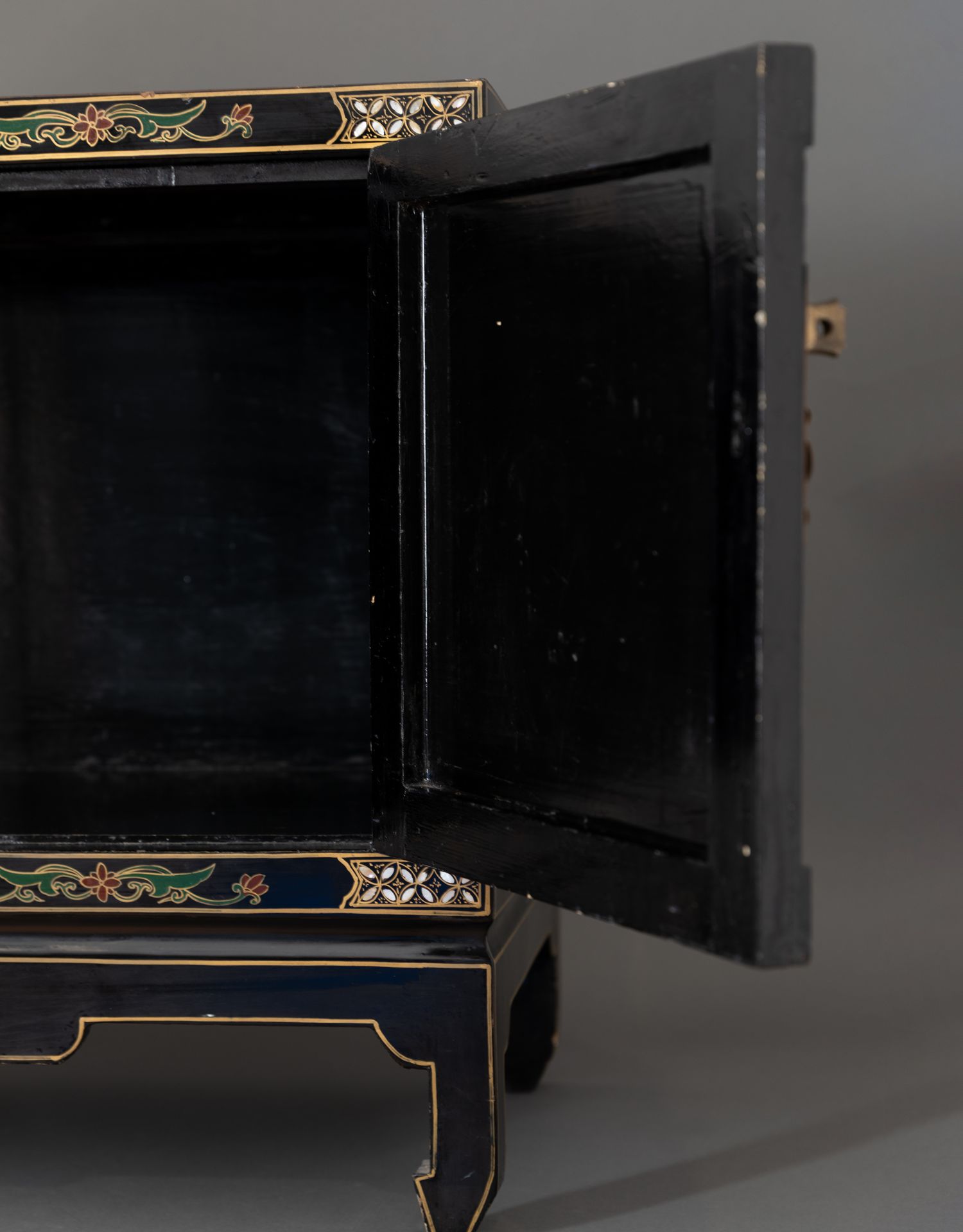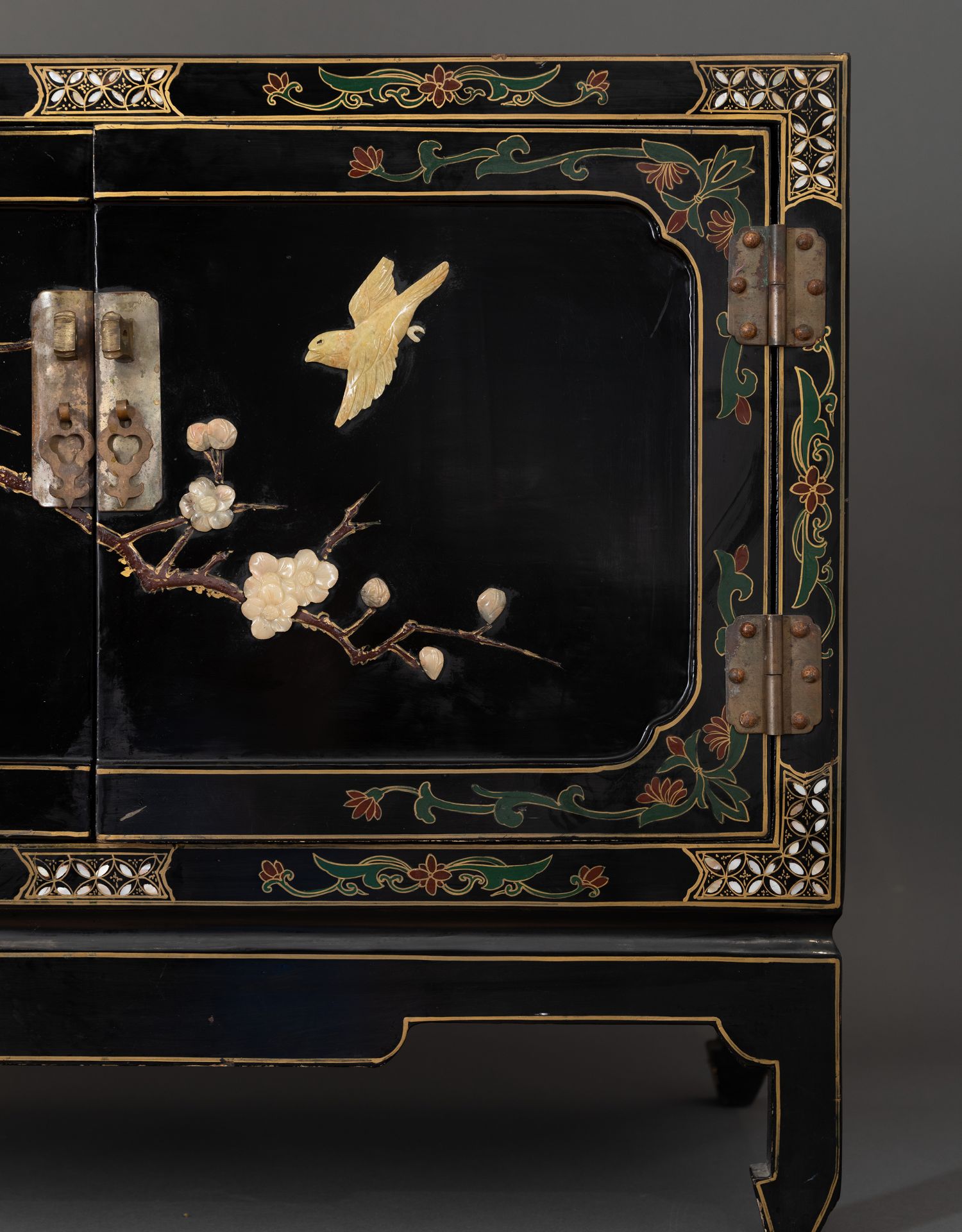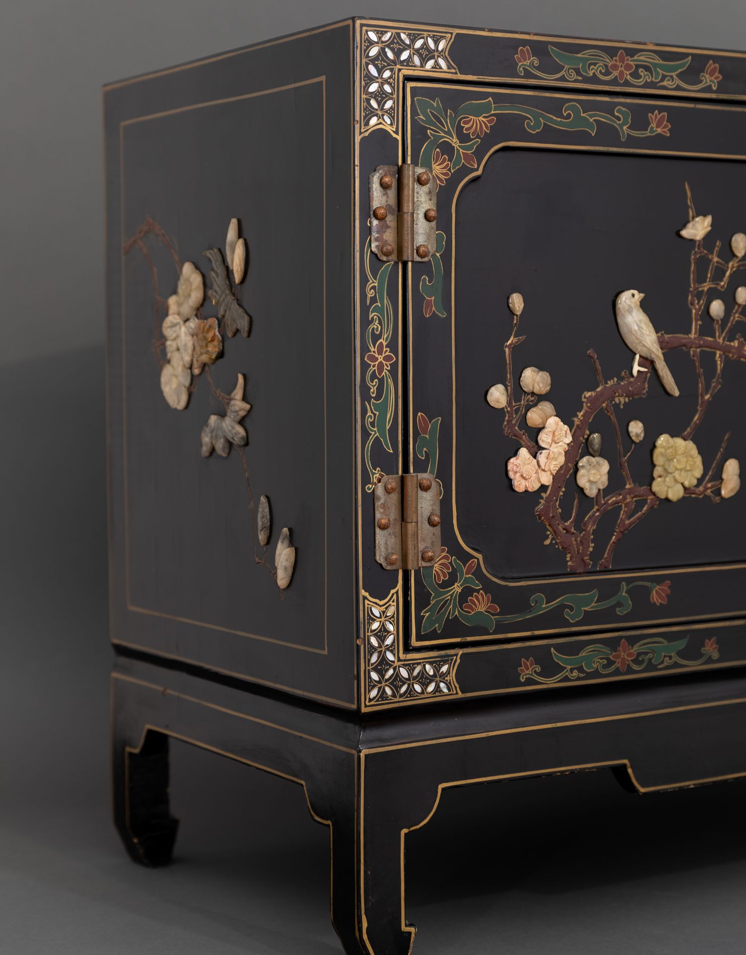 独角鹿西洋古董家具中国木制黑色漆面硬石镶嵌花鸟边柜柜子立柜