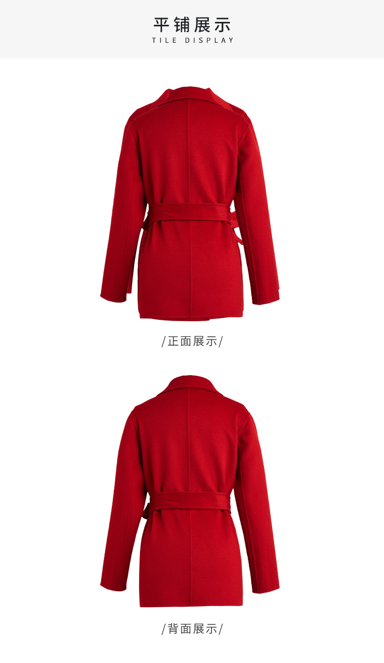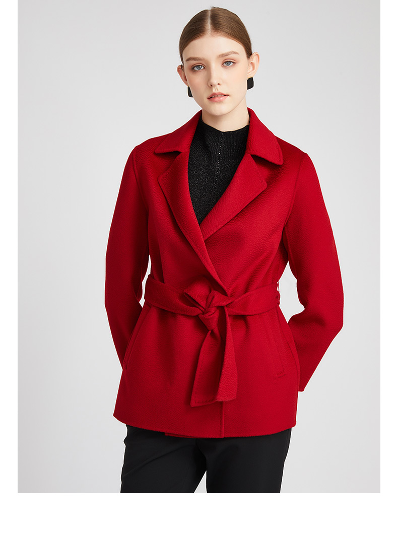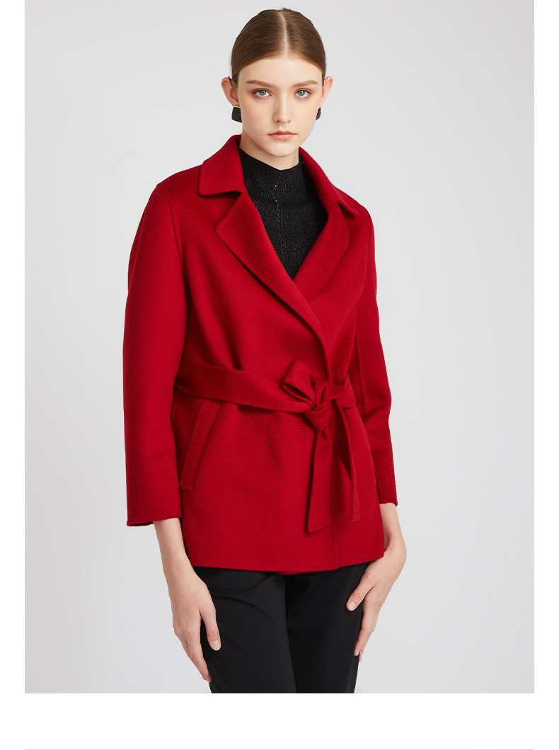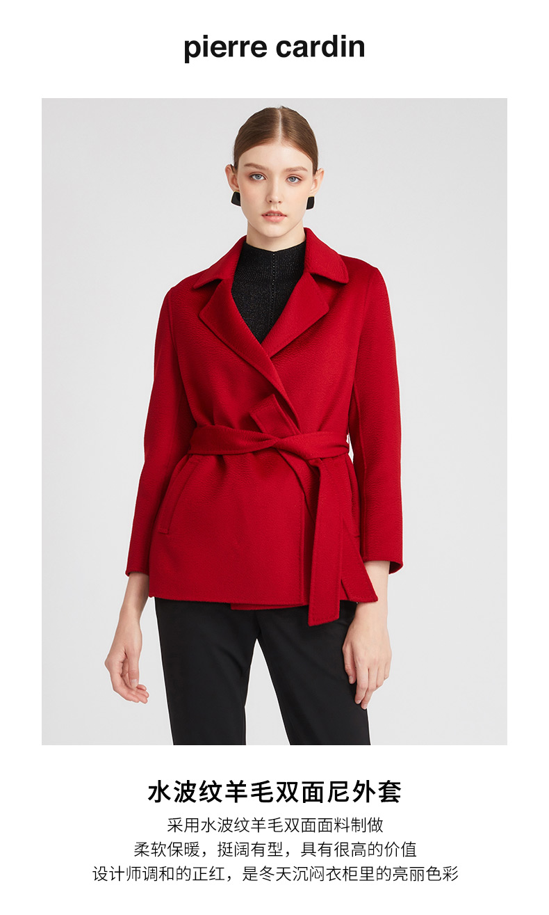 皮尔卡丹女装高级感气质系带收腰通勤纯羊毛毛呢大衣P2422C2936R0