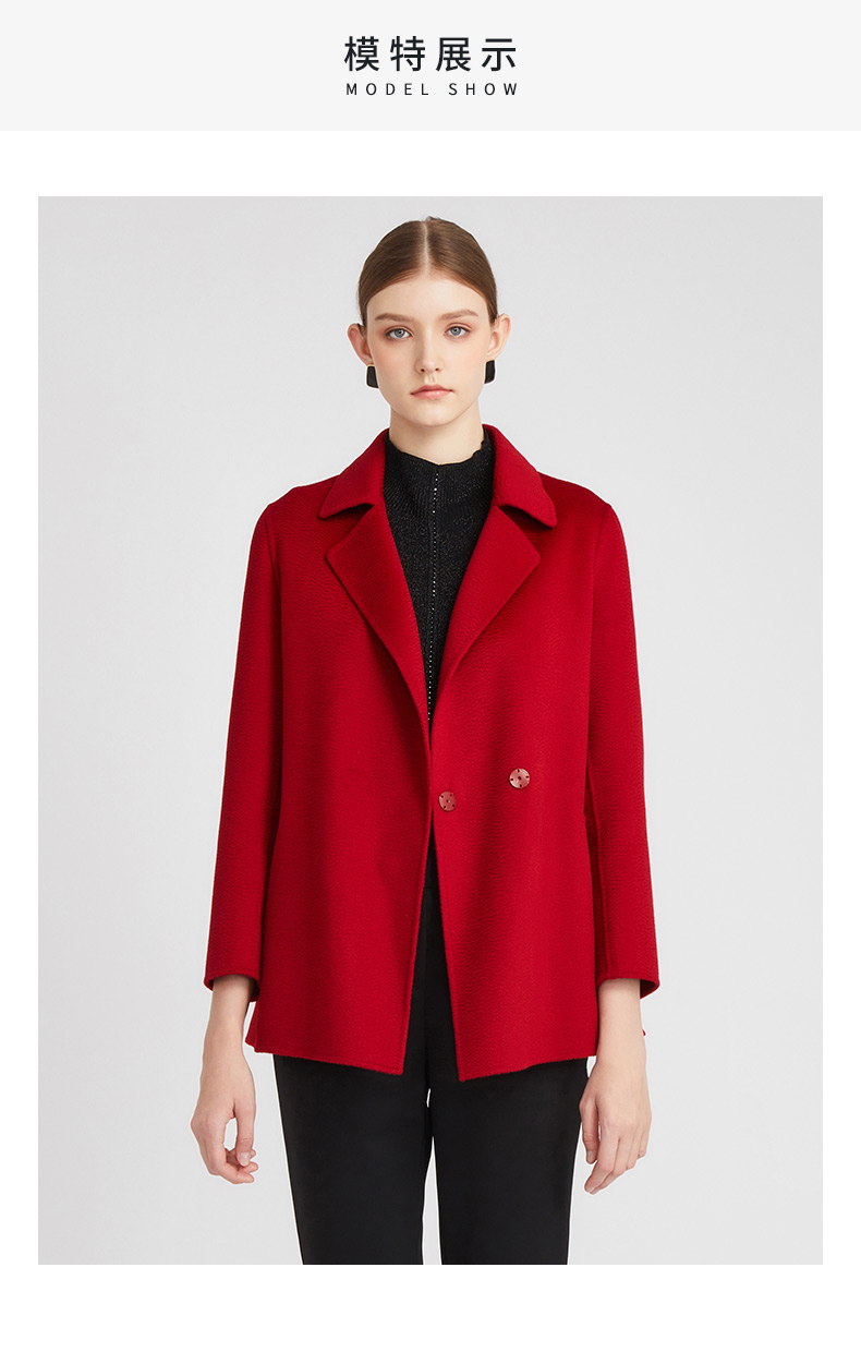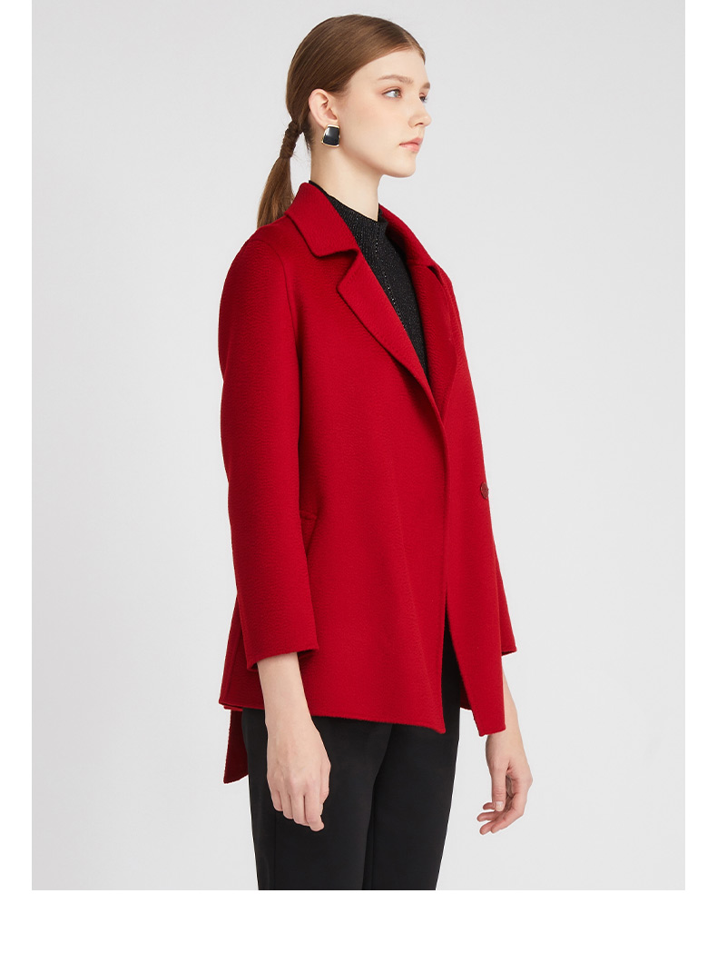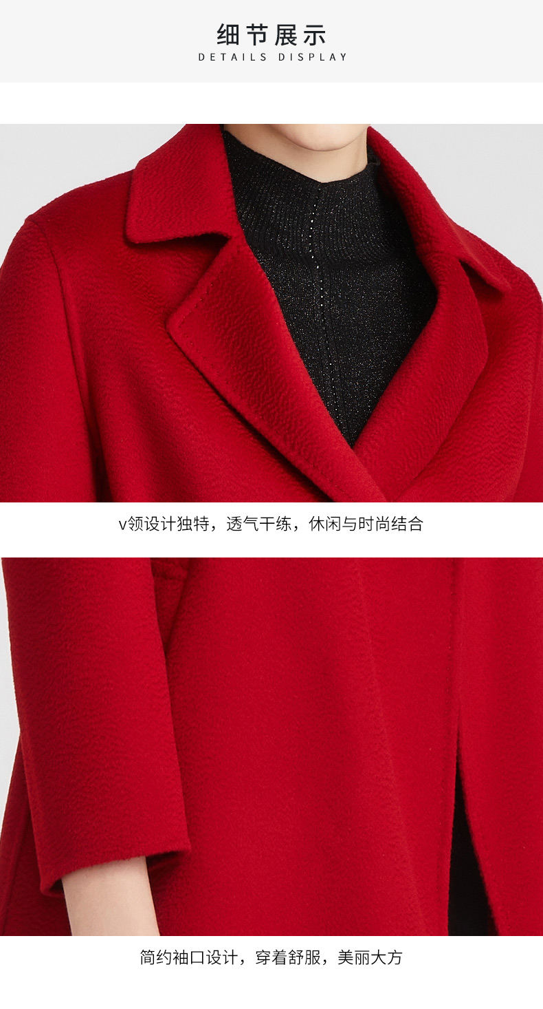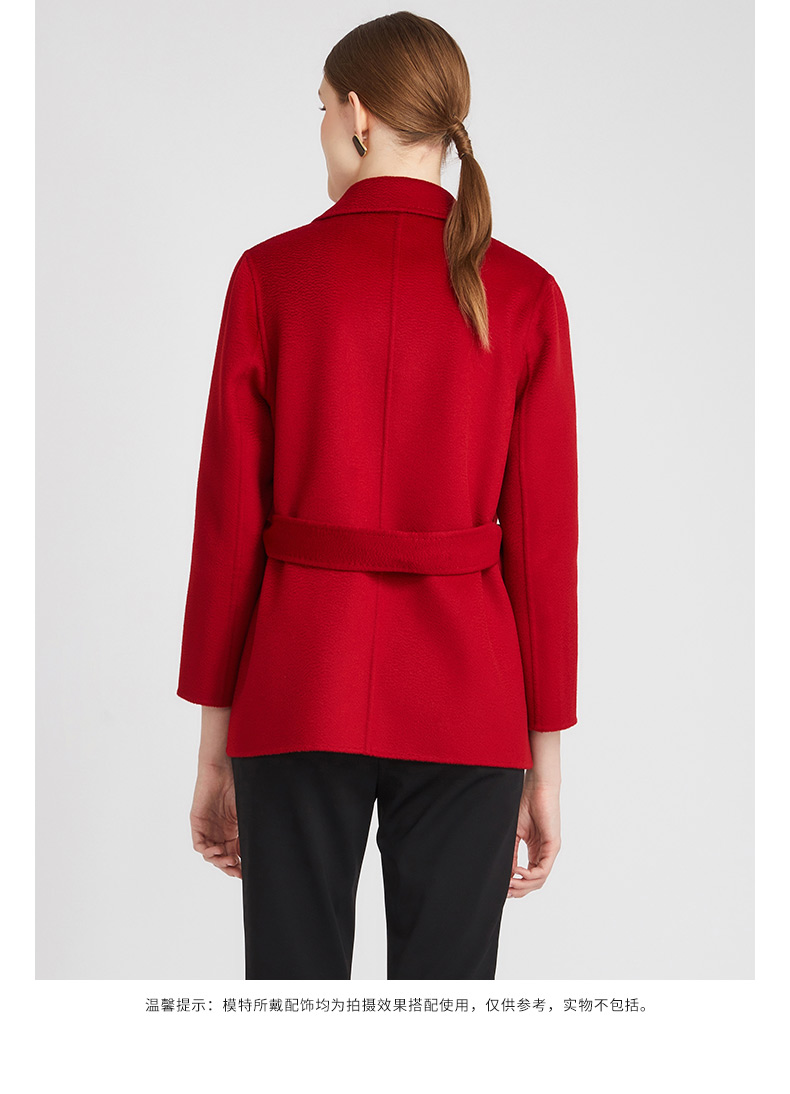皮尔卡丹女装高级感气质系带收腰通勤纯羊毛毛呢大衣P2422C2936R0