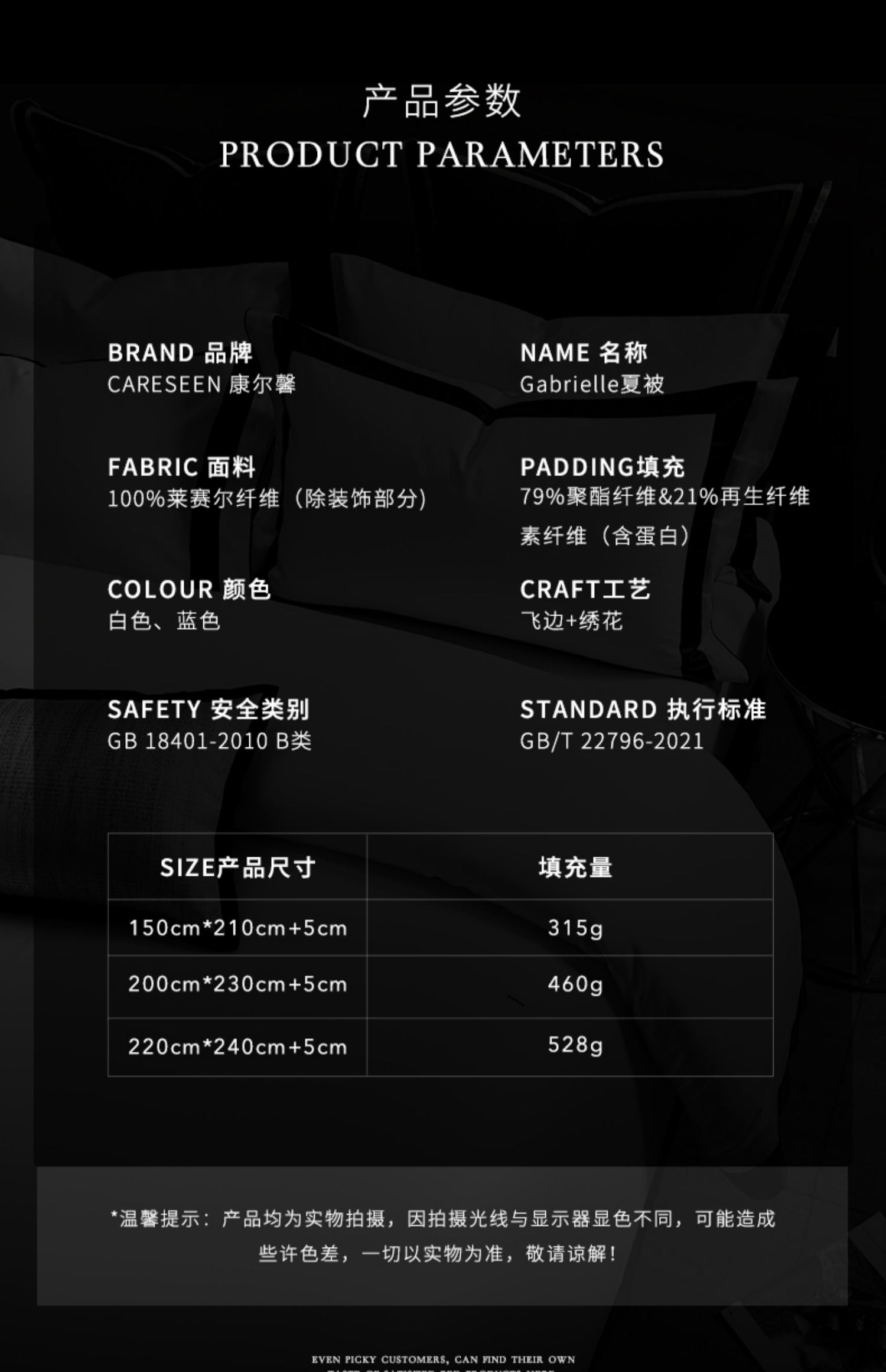 康尔馨新品小香风夏凉被进口天丝夏被被芯双人被子可机洗空调被