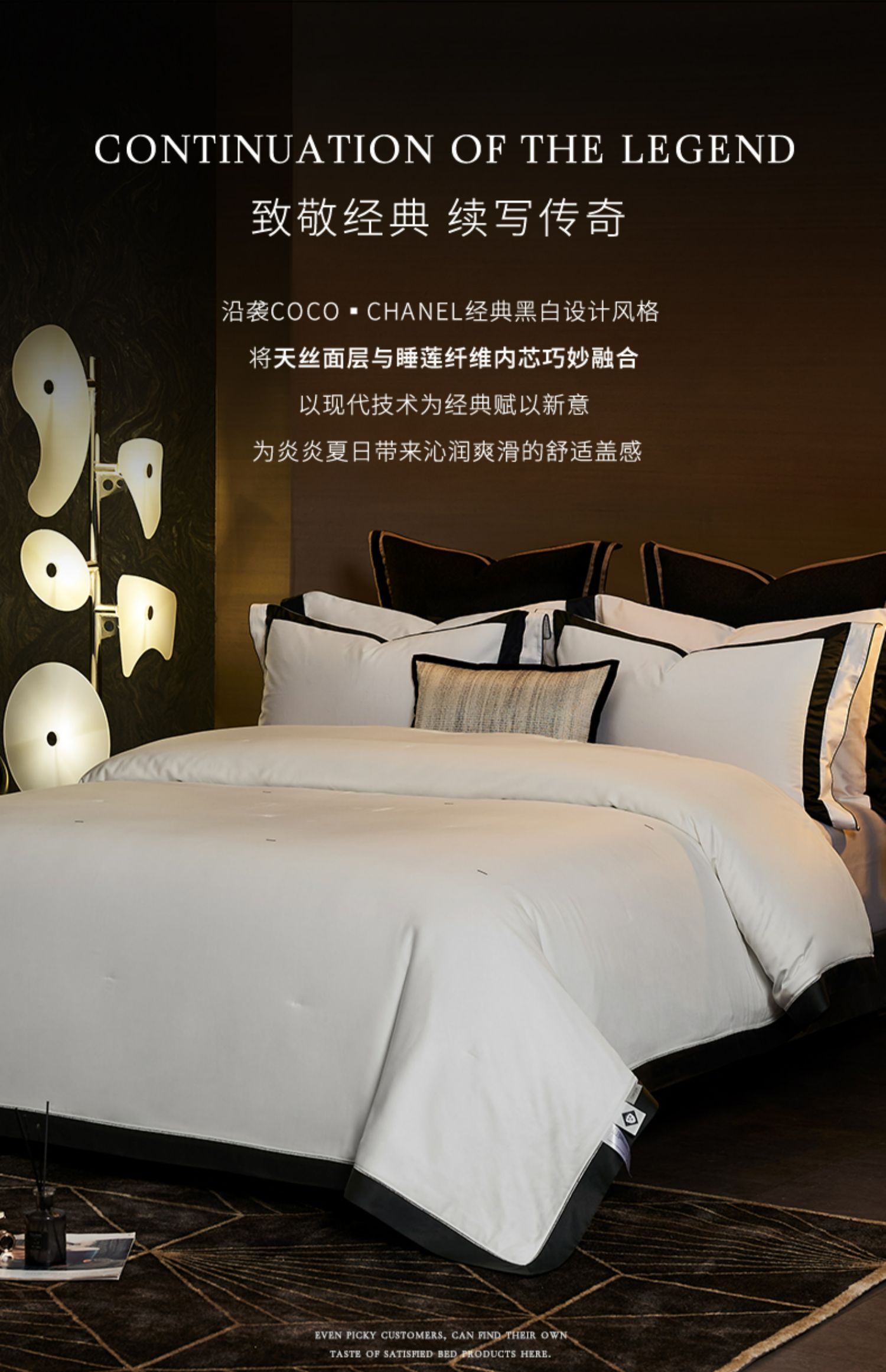 - 源自五星级酒店的奢华家纺品牌,康乃馨首次提出打造“酒店+家纺”的全新概念,将更为严格的五星级酒店纺织品品质标准与家纺相结合,完美诠释“酒店品质家纺”的舒适感受与奢华品味。