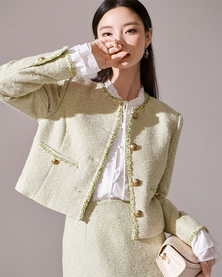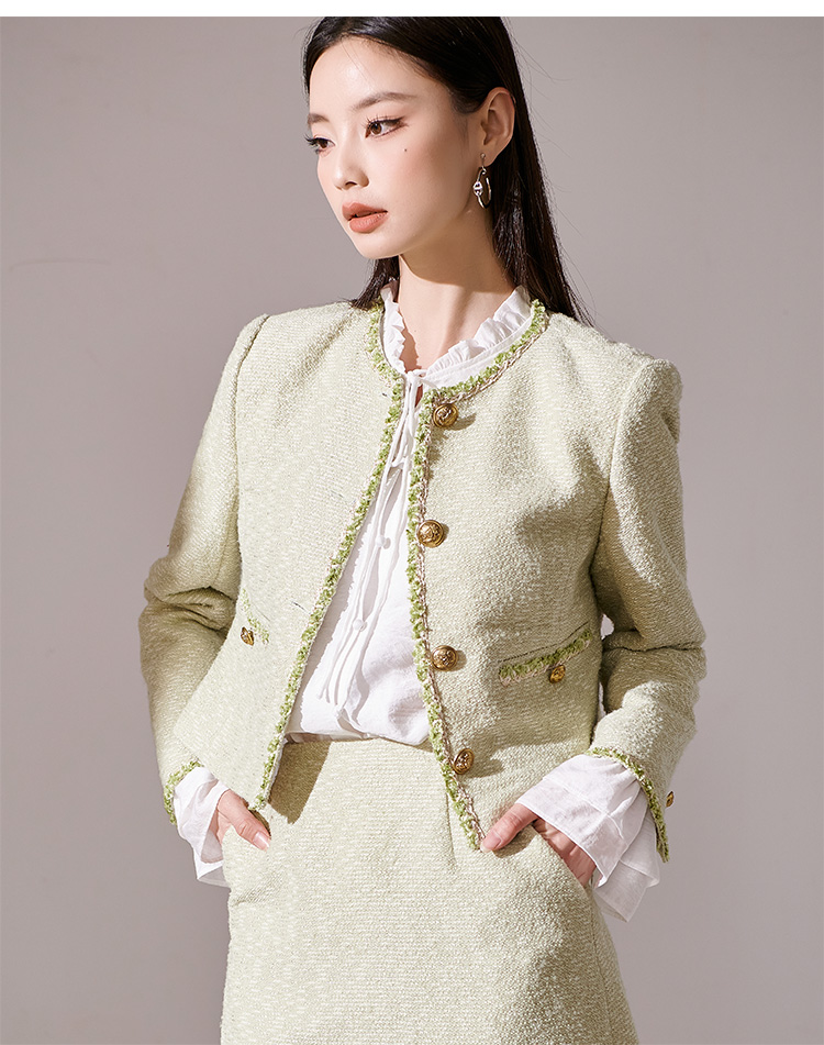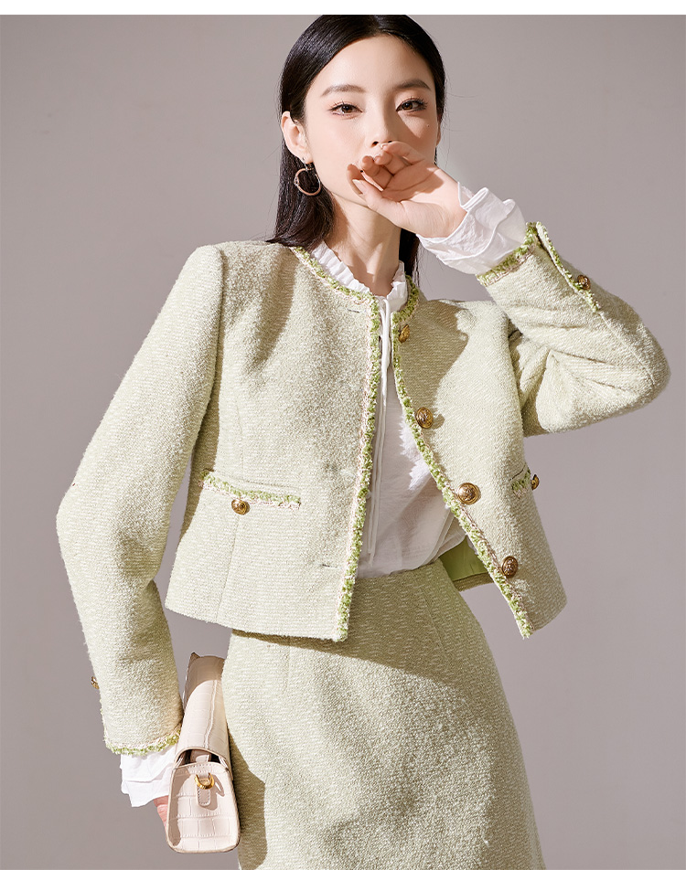 剩S/M/L/XL 【芳外】2025秋冬新款羊毛小香风外套时尚减龄上衣女8T23CW1064