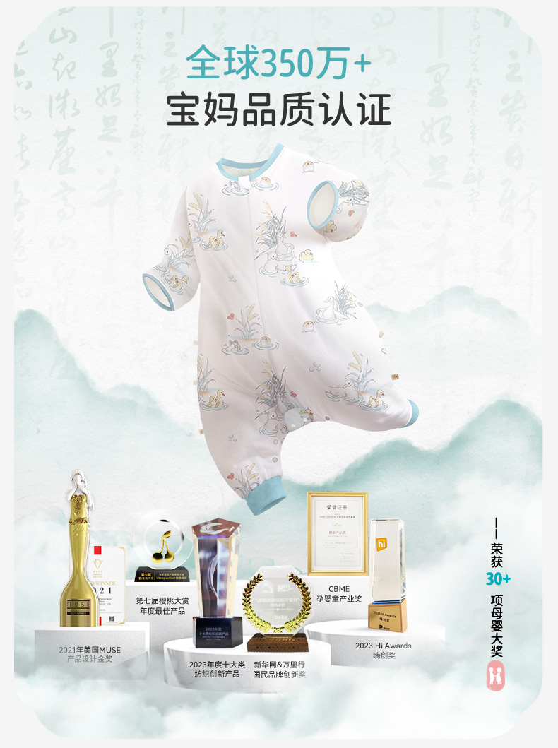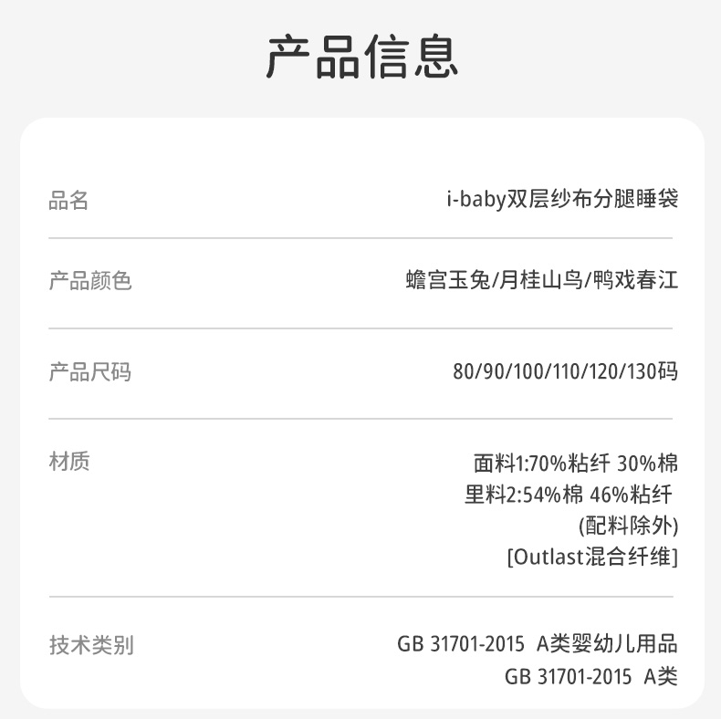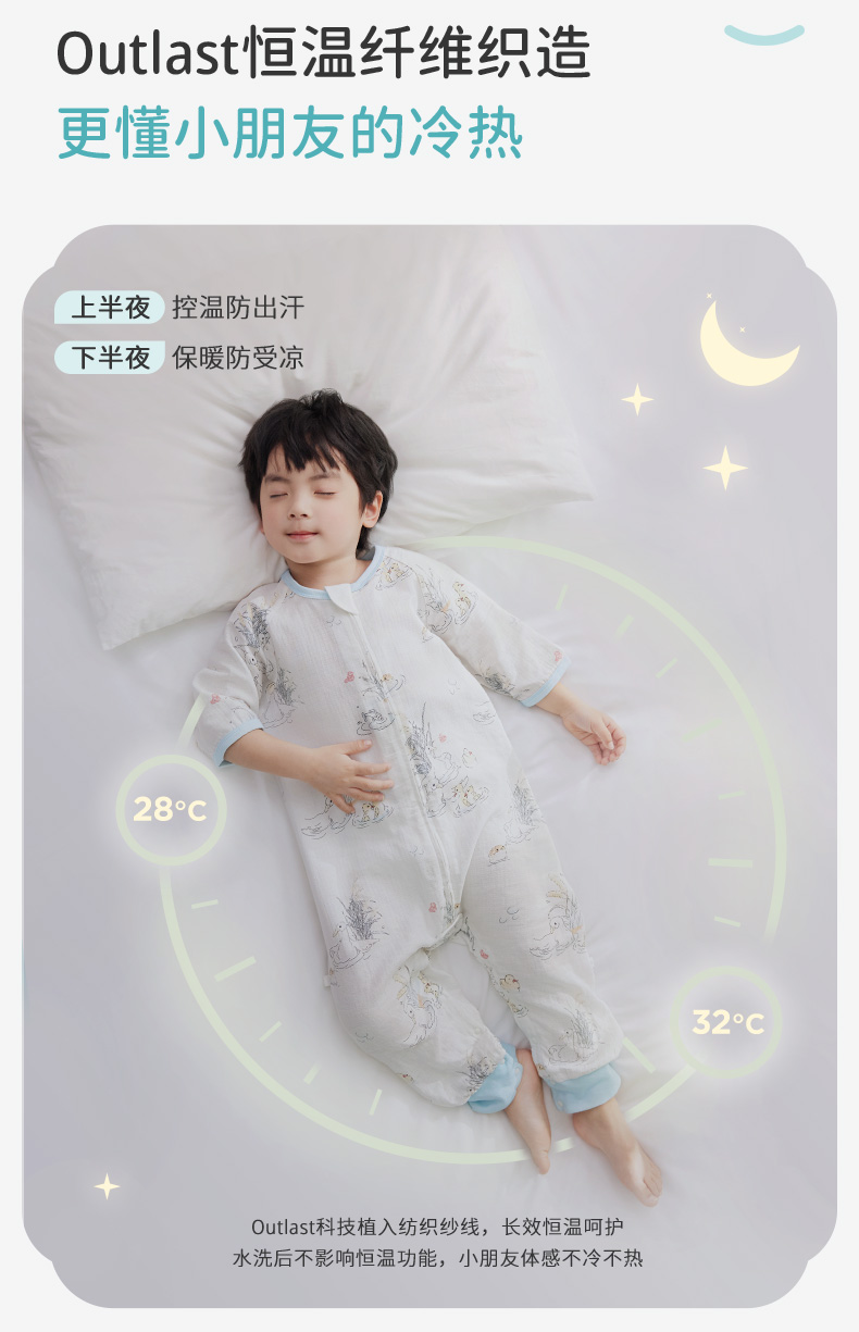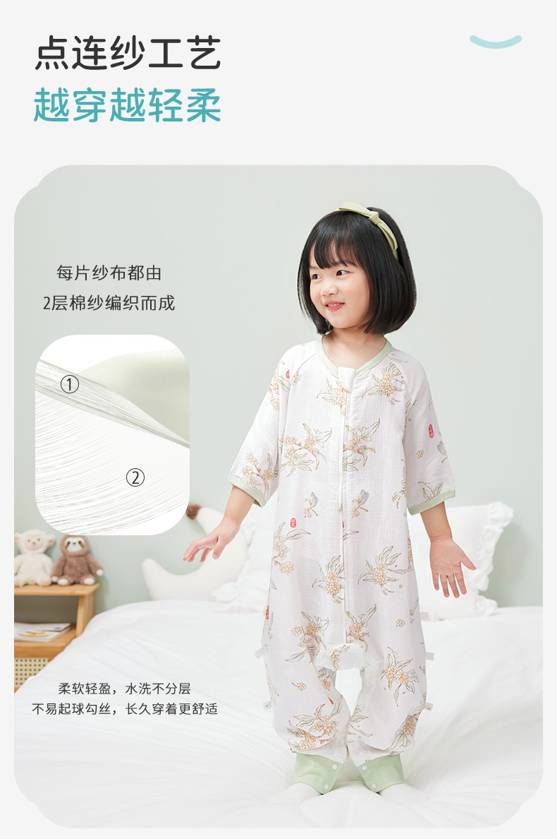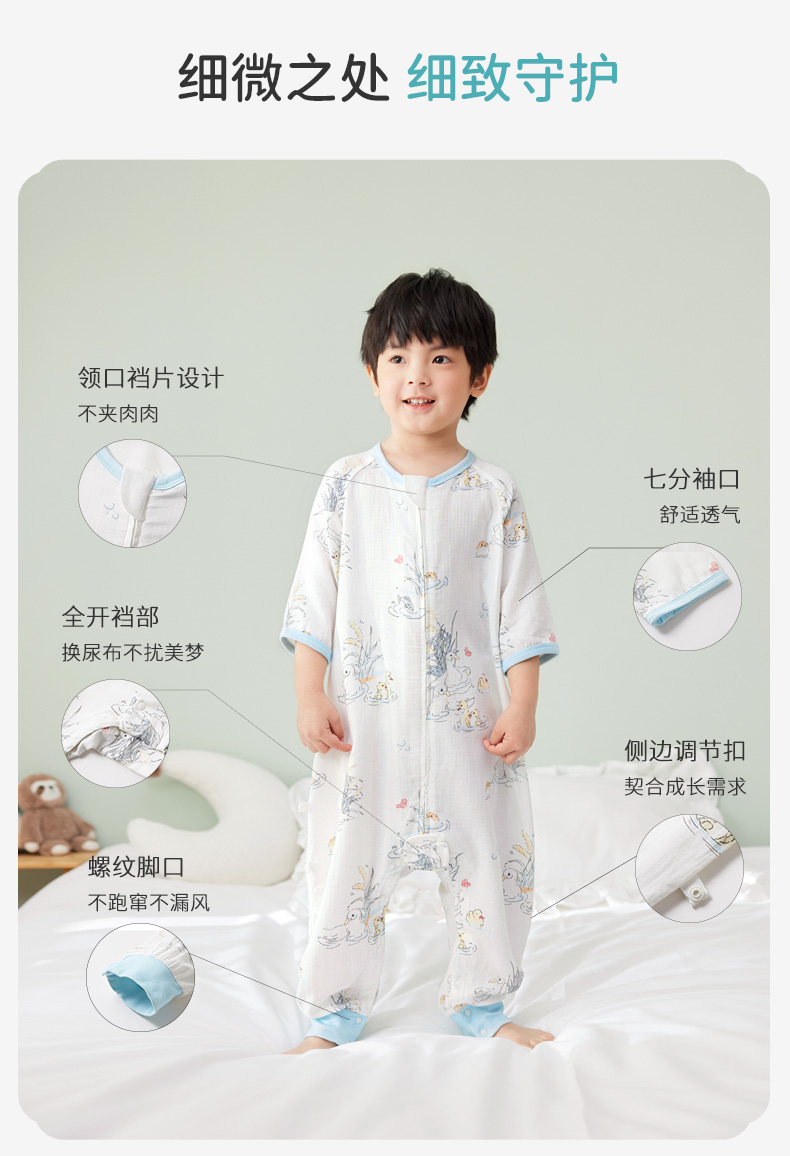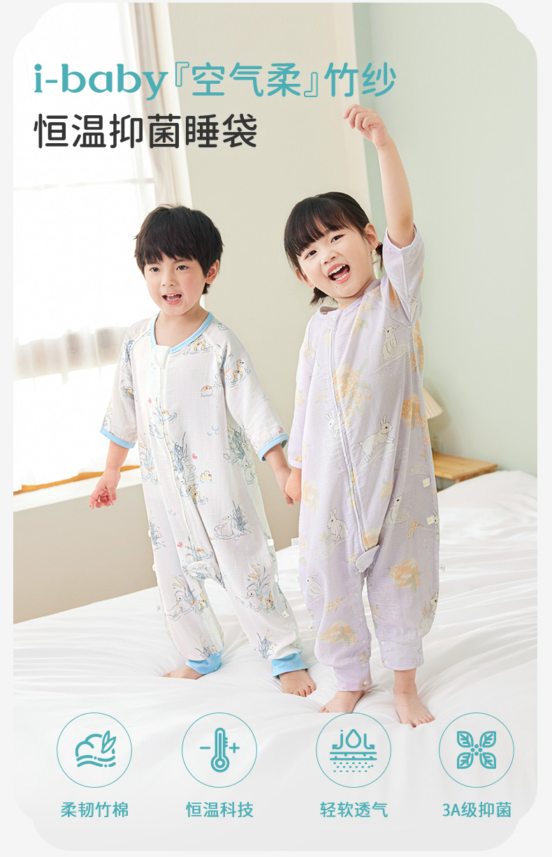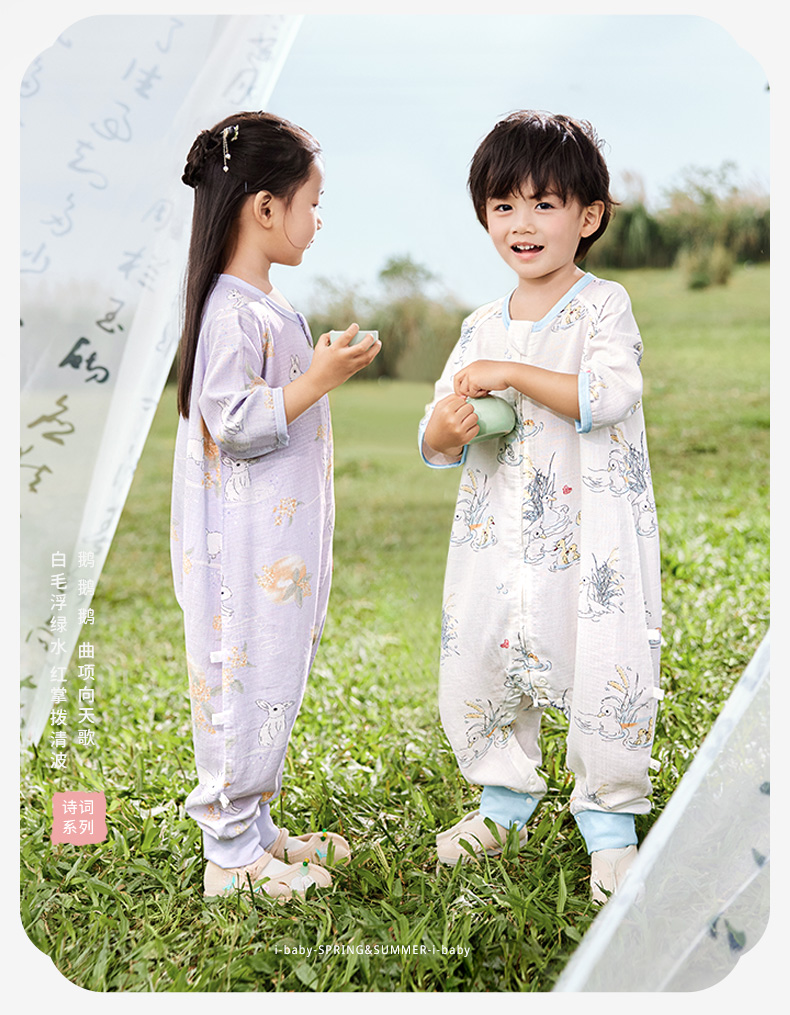 i-baby/英伦宝贝诗画长安系列春夏季2层纱布恒温分腿睡袋宝宝防踢被春夏睡衣儿童分腿睡袋