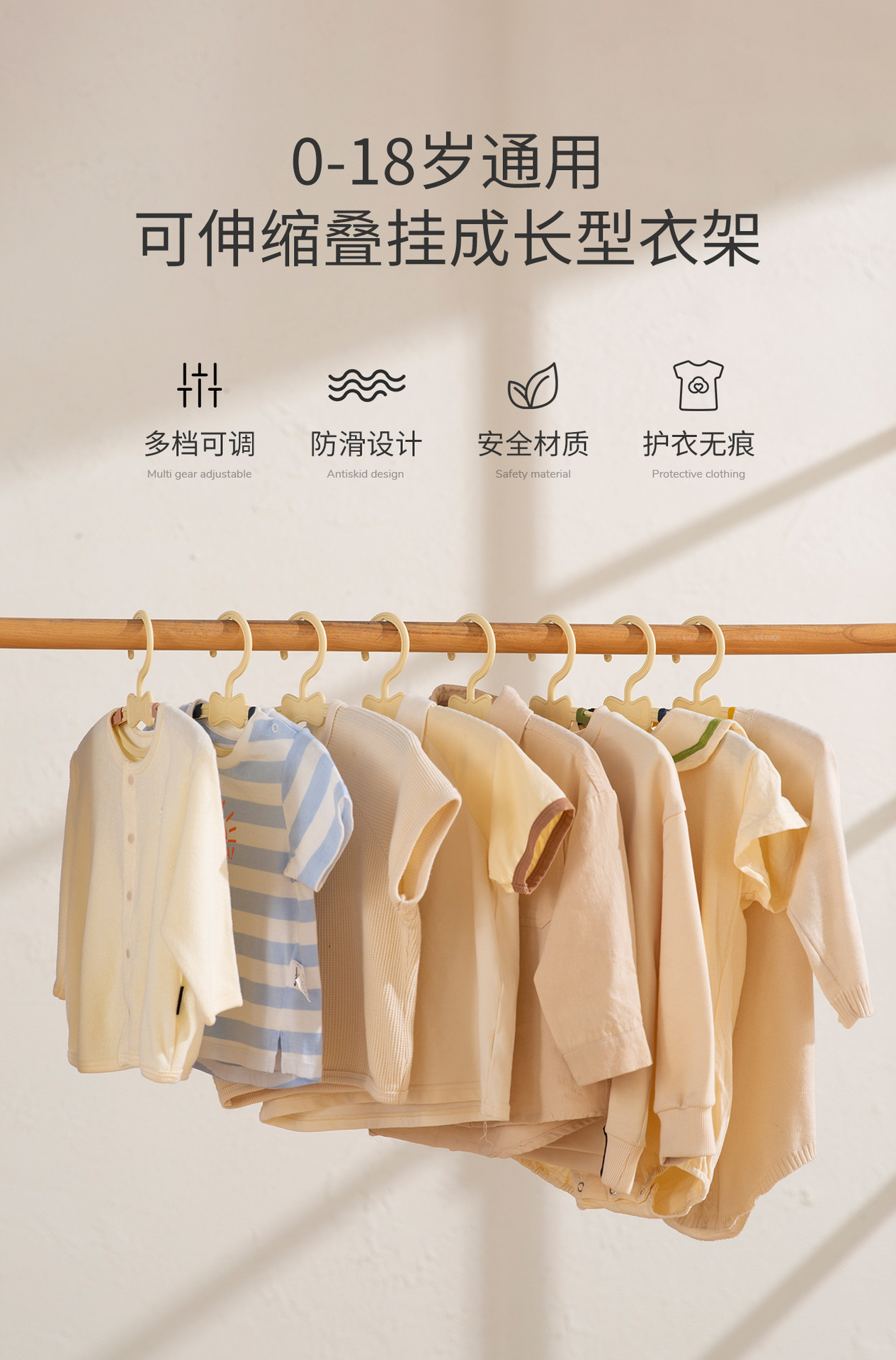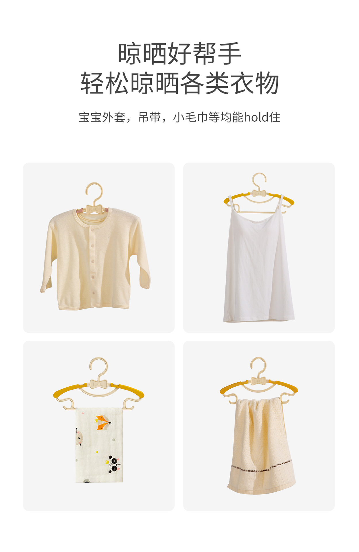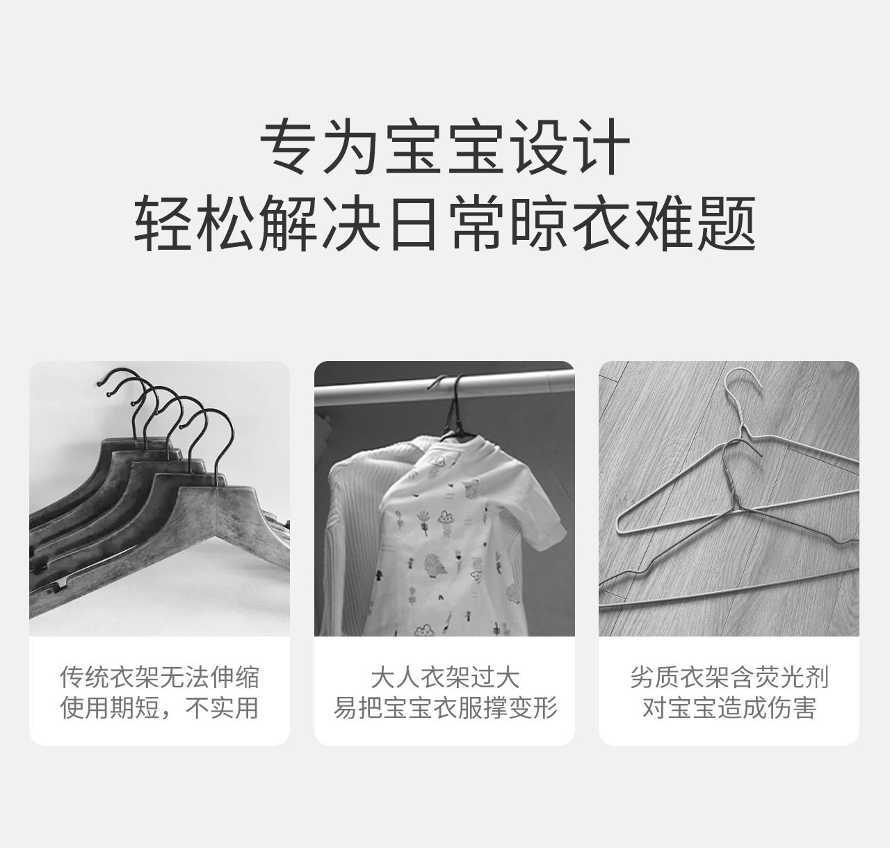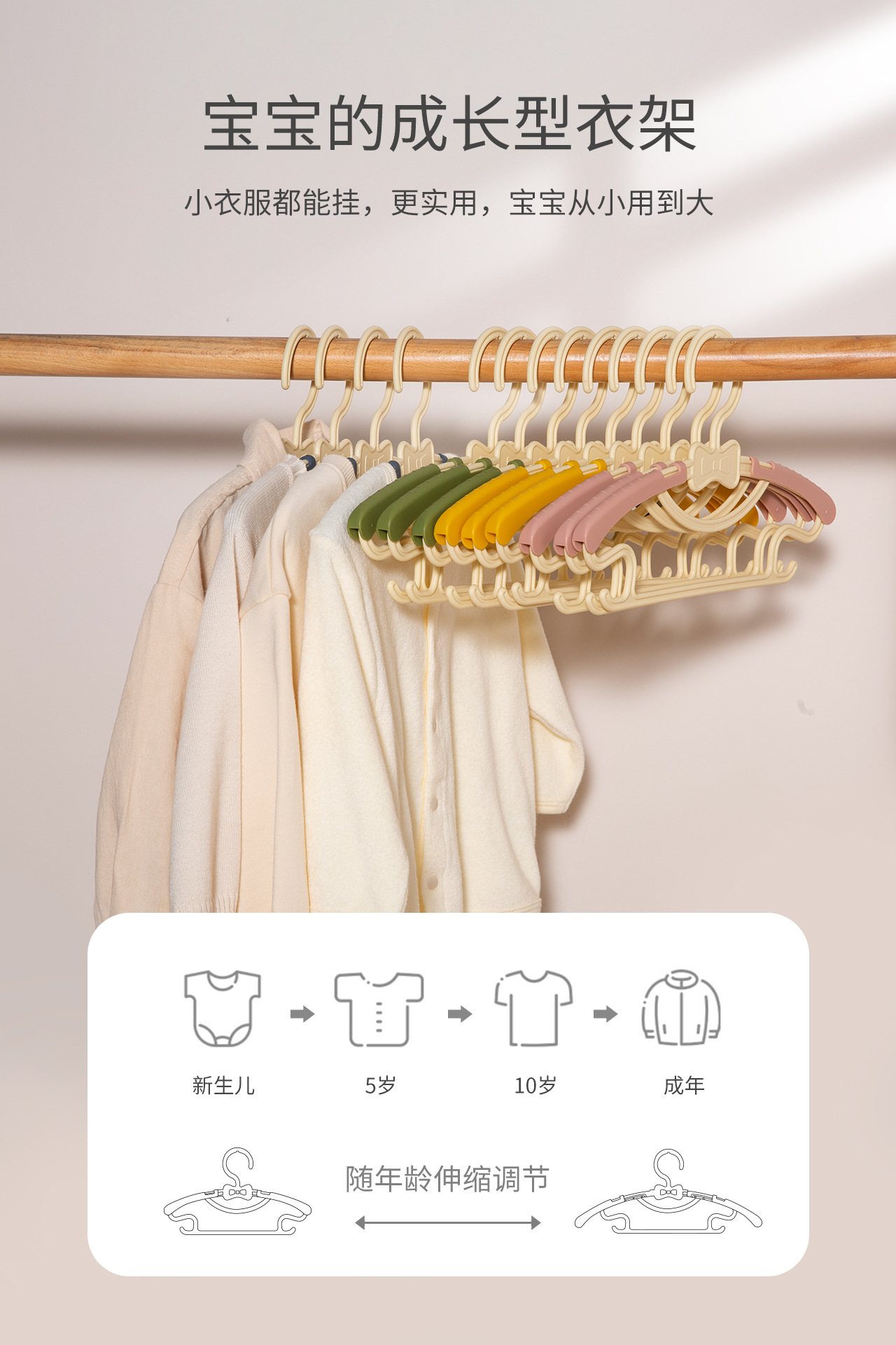 【秒杀价¥15.9/10个】婴儿晒架宝宝小孩家用衣挂钩衣撑晾伸缩衣服架收纳架10个