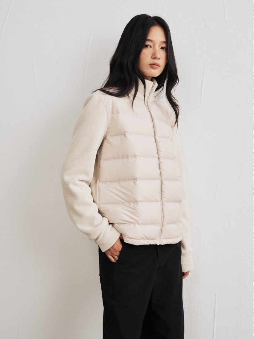 【多妈团购 小轻绒外套9780】匈牙利白鸭绒填充,绒子含量90%,吸湿透气,轻盈保暖,前片羽绒,袖子后背摇粒绒,上身不臃肿-连横