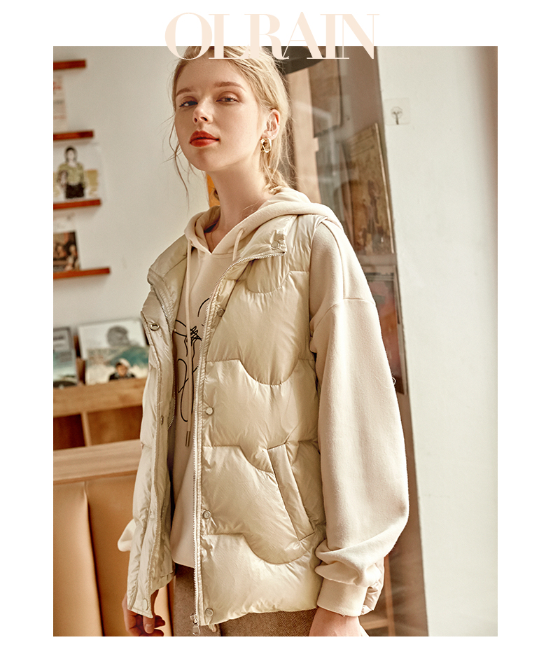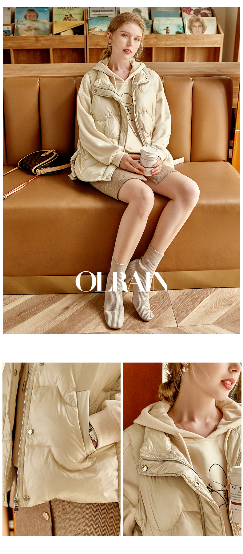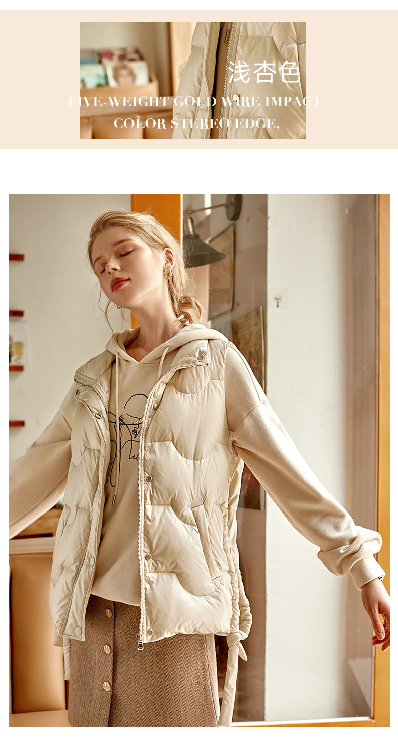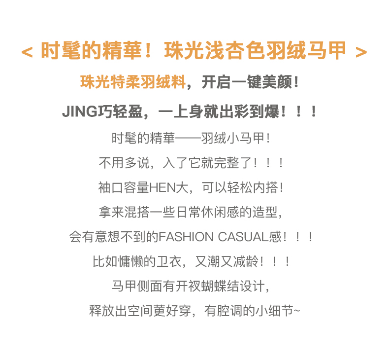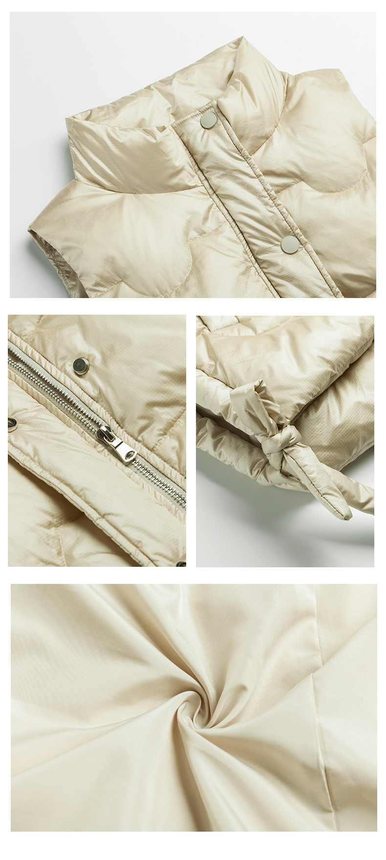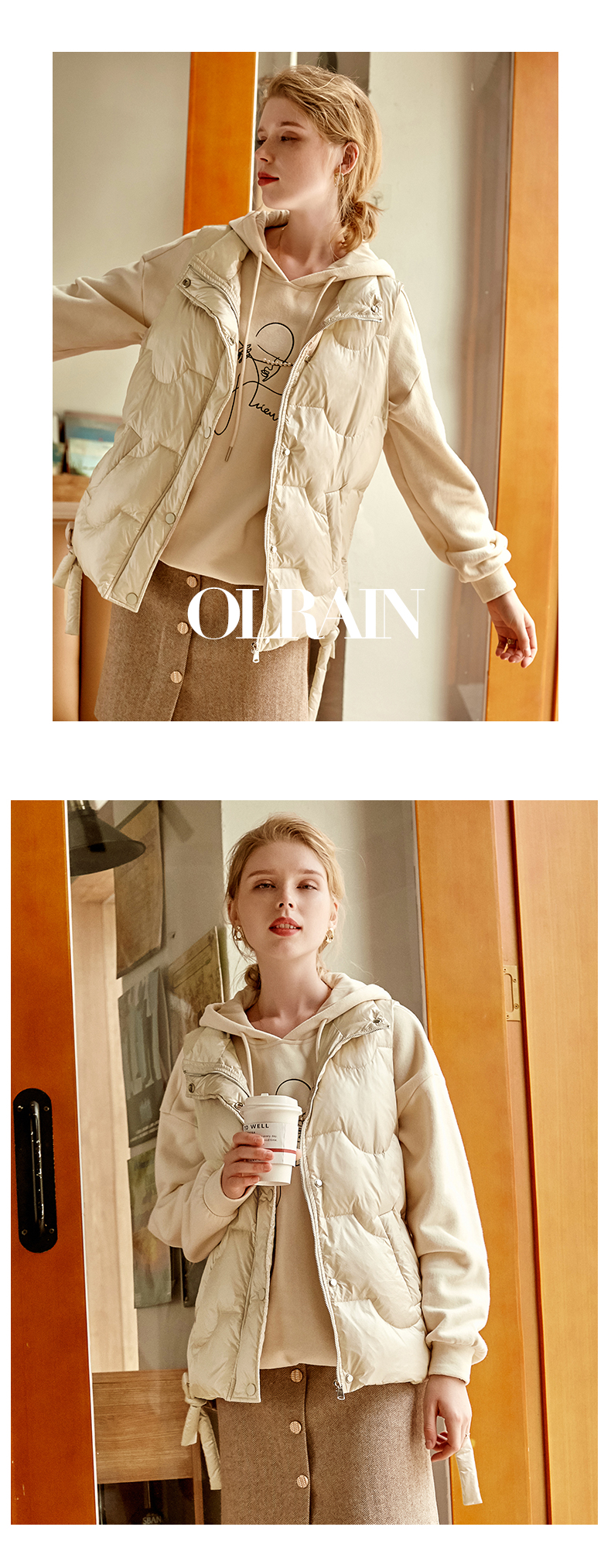 欧芮儿亮面米杏色羽绒马甲外套女2022春装新款女士无袖背心