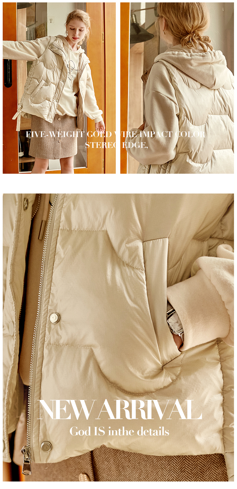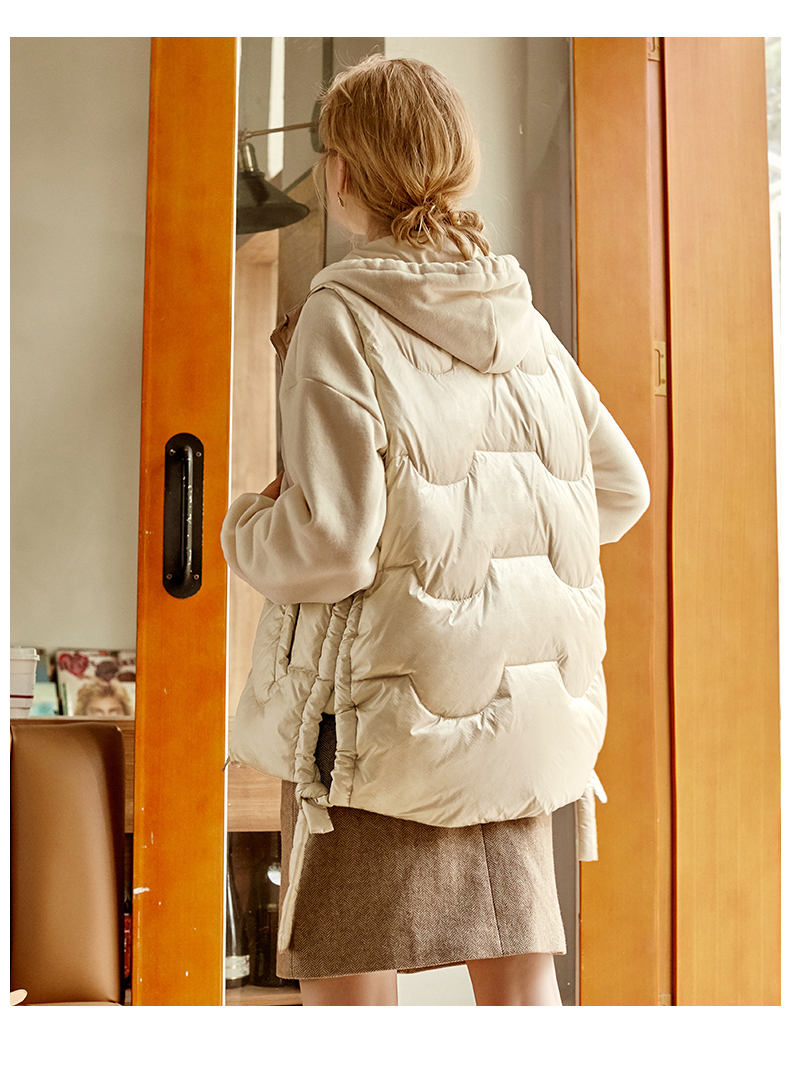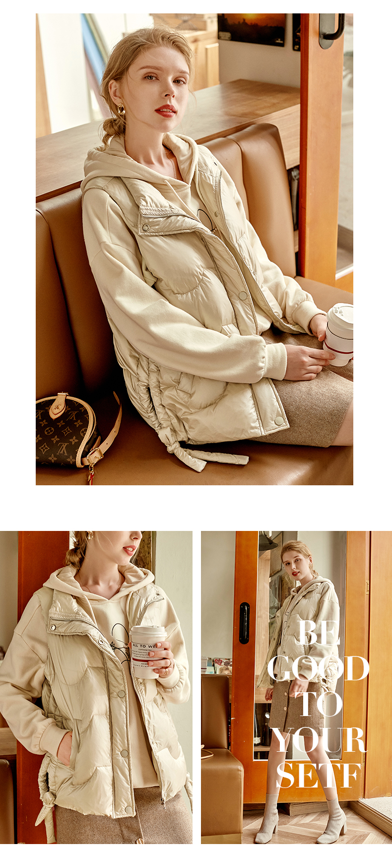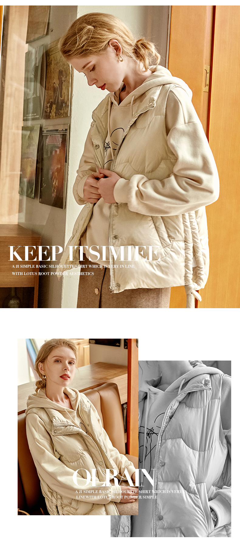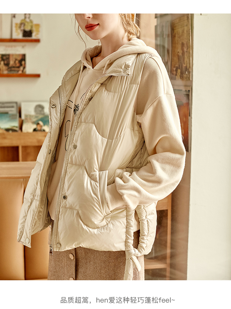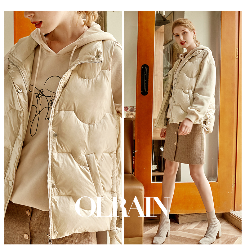 欧芮儿亮面米杏色羽绒马甲外套女2022春装新款女士无袖背心