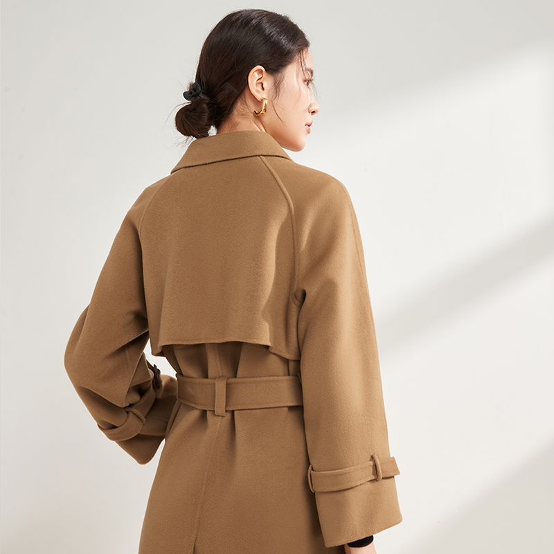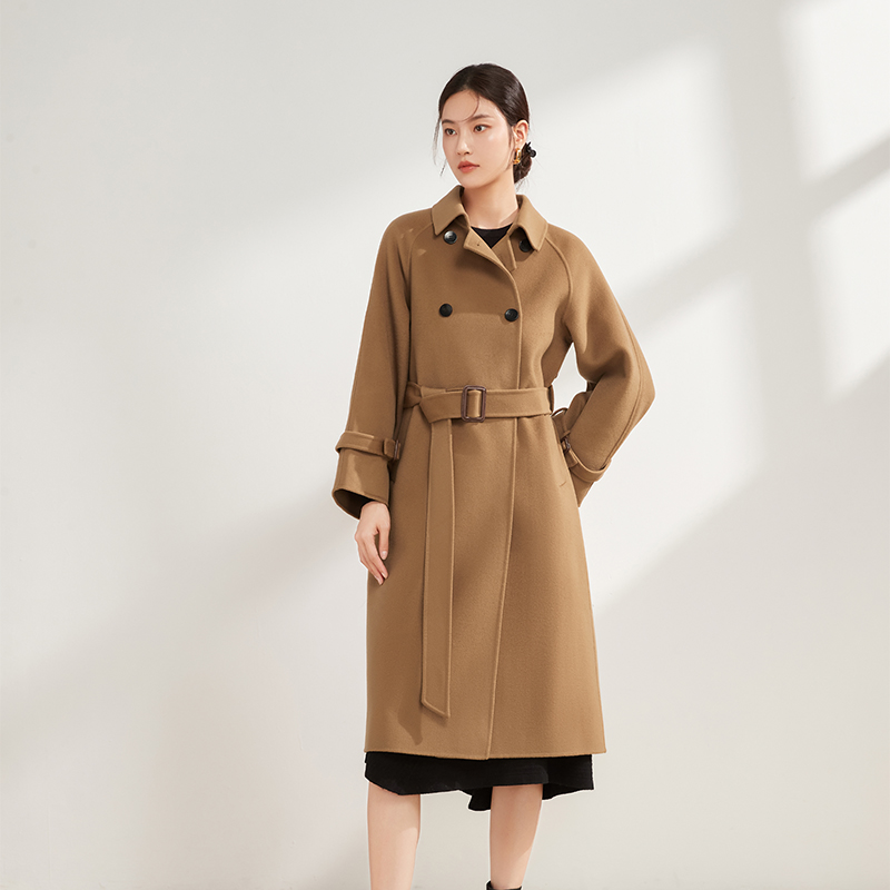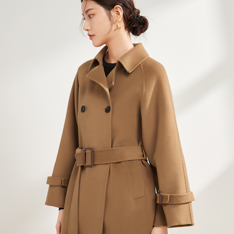 【中长款双排扣羊毛大衣】22年秋冬新品女士双面呢长袖大衣翻领腰带呢子气质优雅中长款毛呢大衣