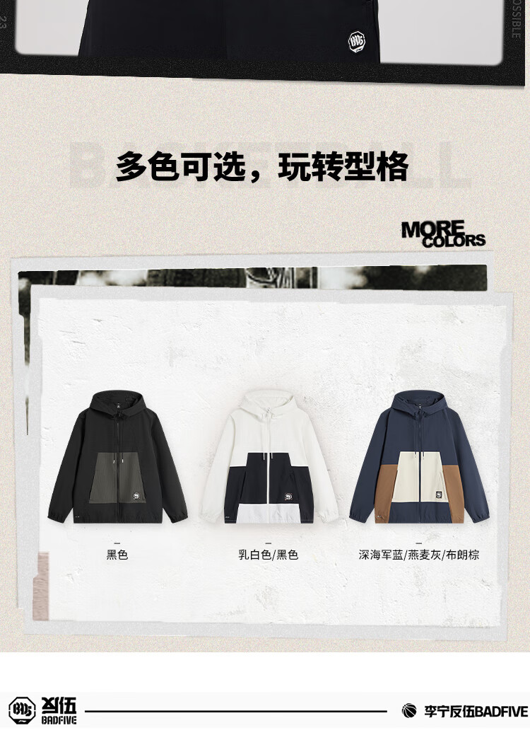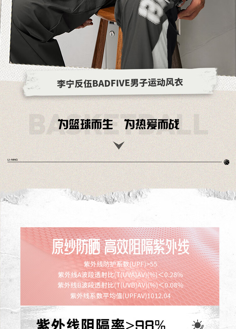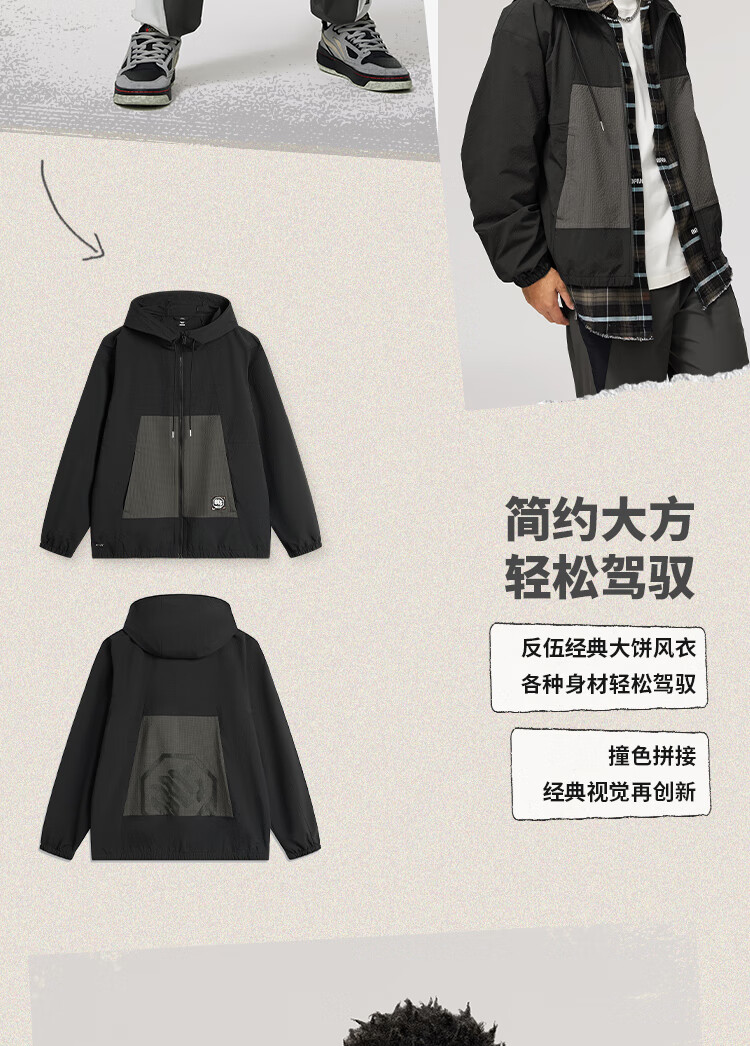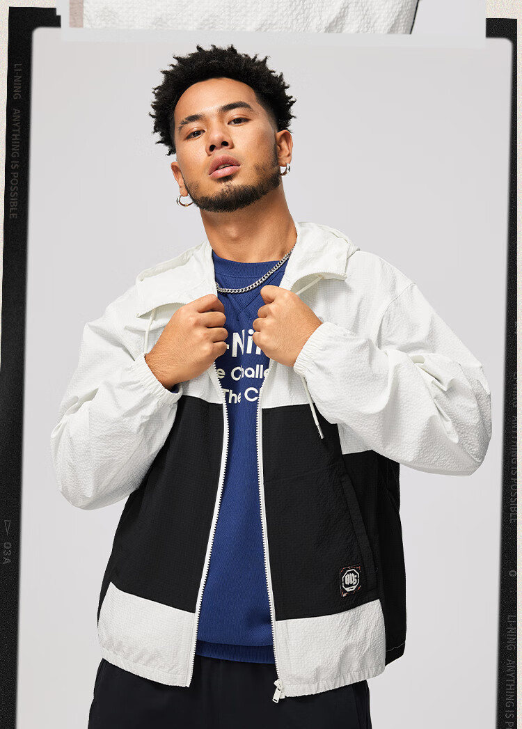 李宁反伍BADFIVE防晒抗菌运动风衣男子24秋季新款宽松撞色外套AFDU211