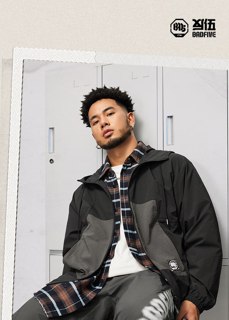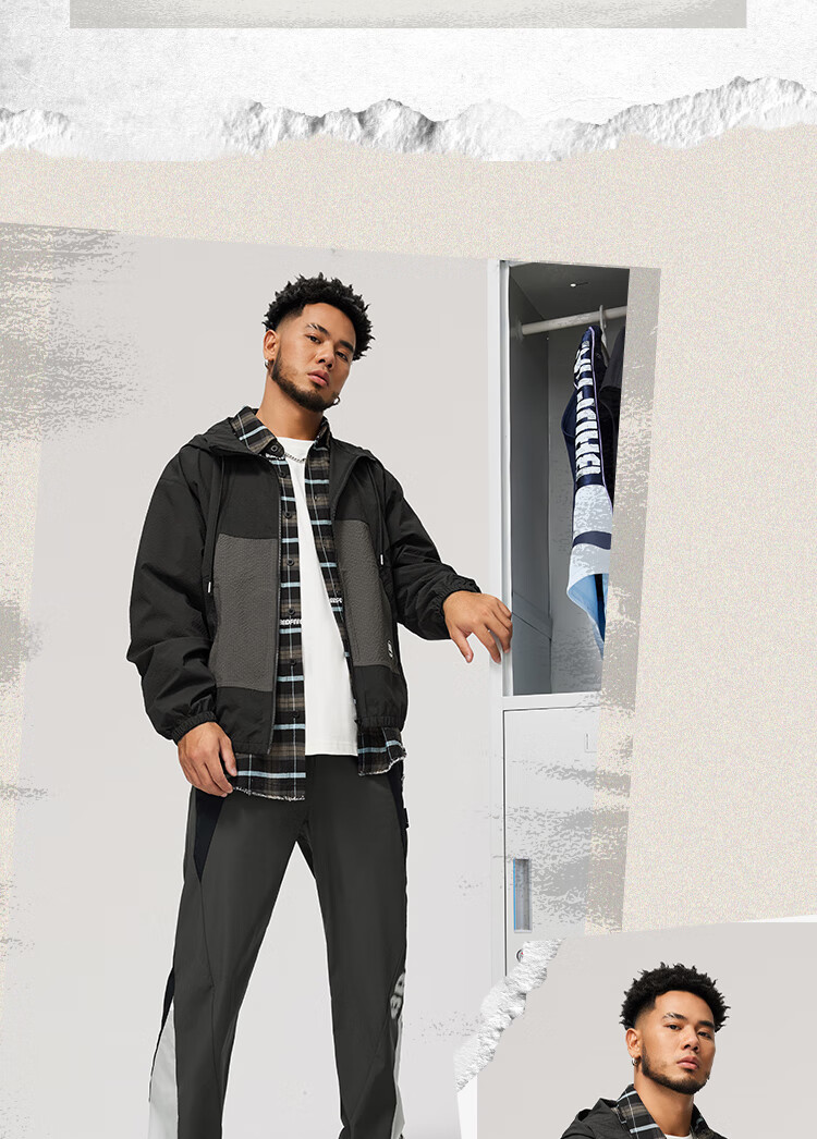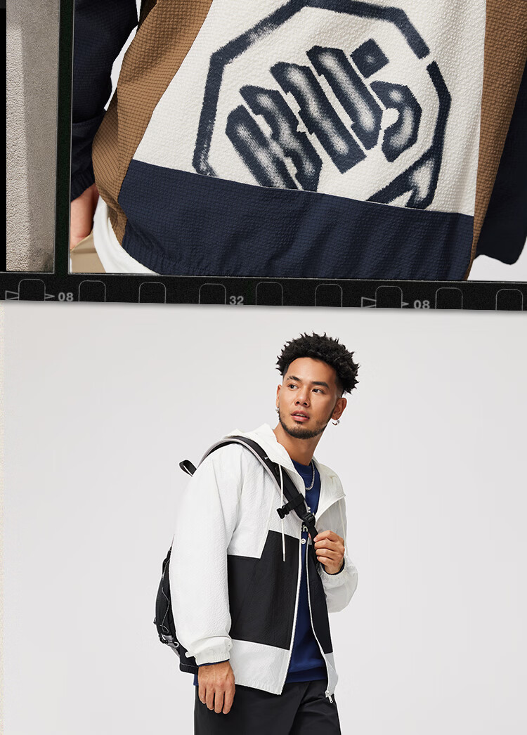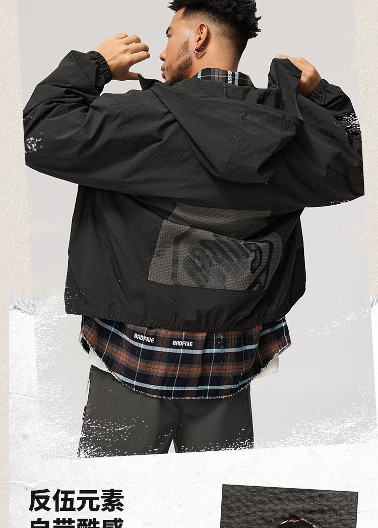 李宁反伍BADFIVE防晒抗菌运动风衣男子24秋季新款宽松撞色外套AFDU211