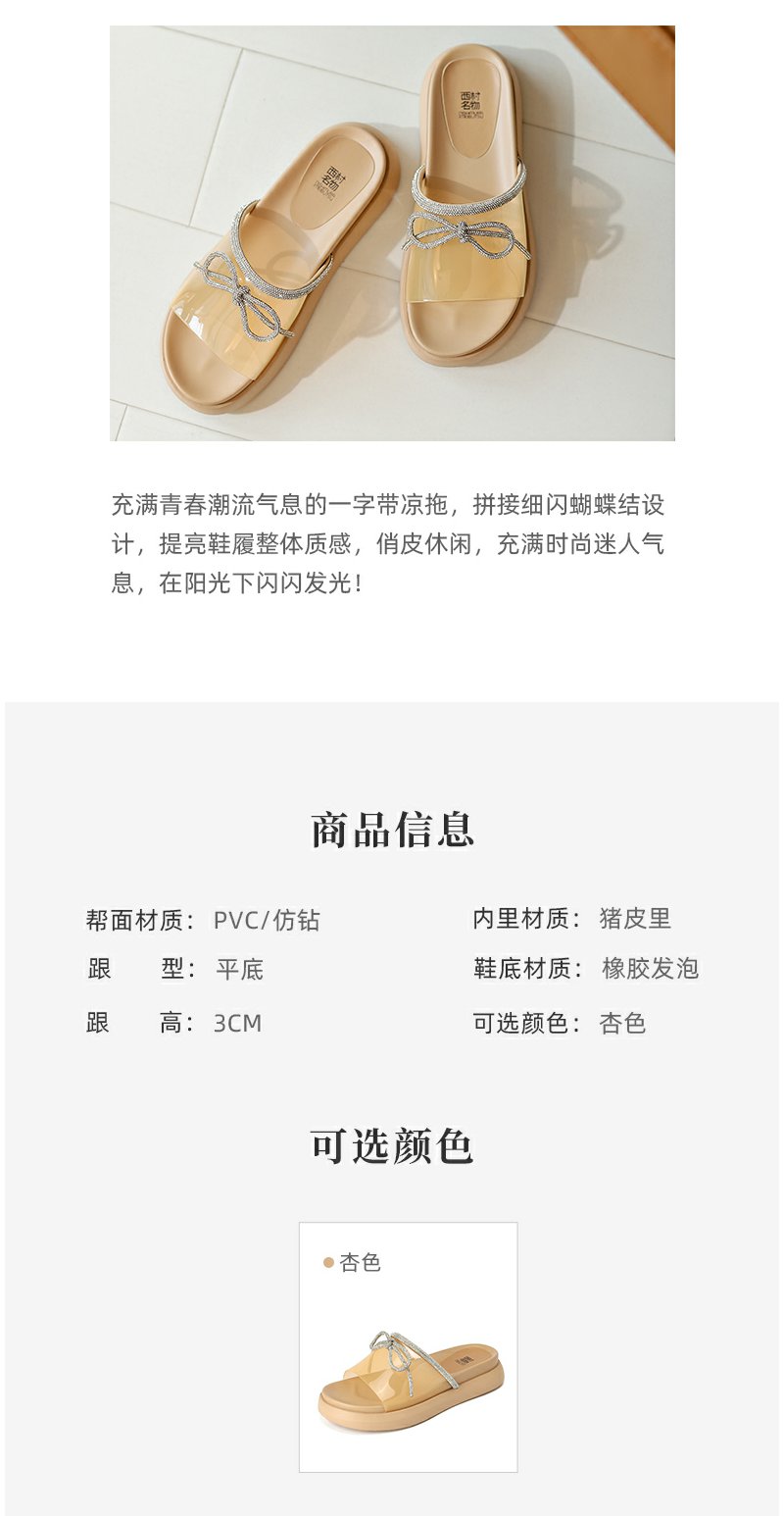 西村名物水钻蝴蝶结凉拖女2022夏新商场同款仙女风厚底拖鞋T22BJ24991
