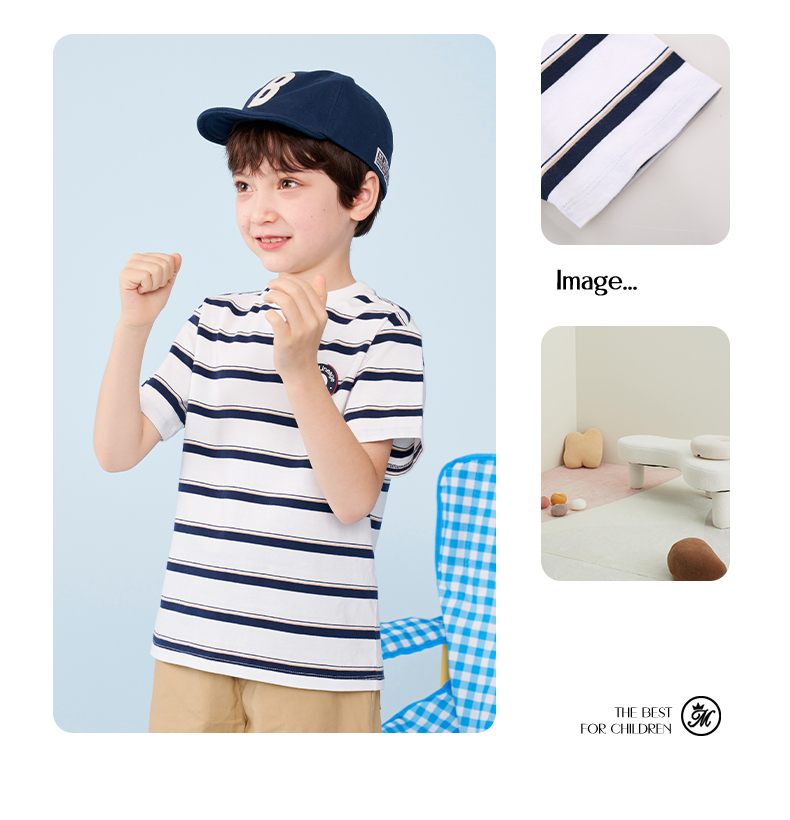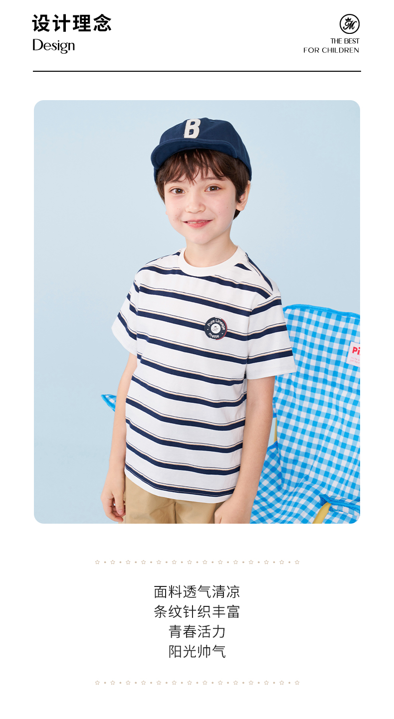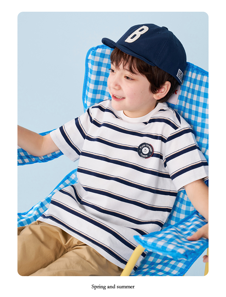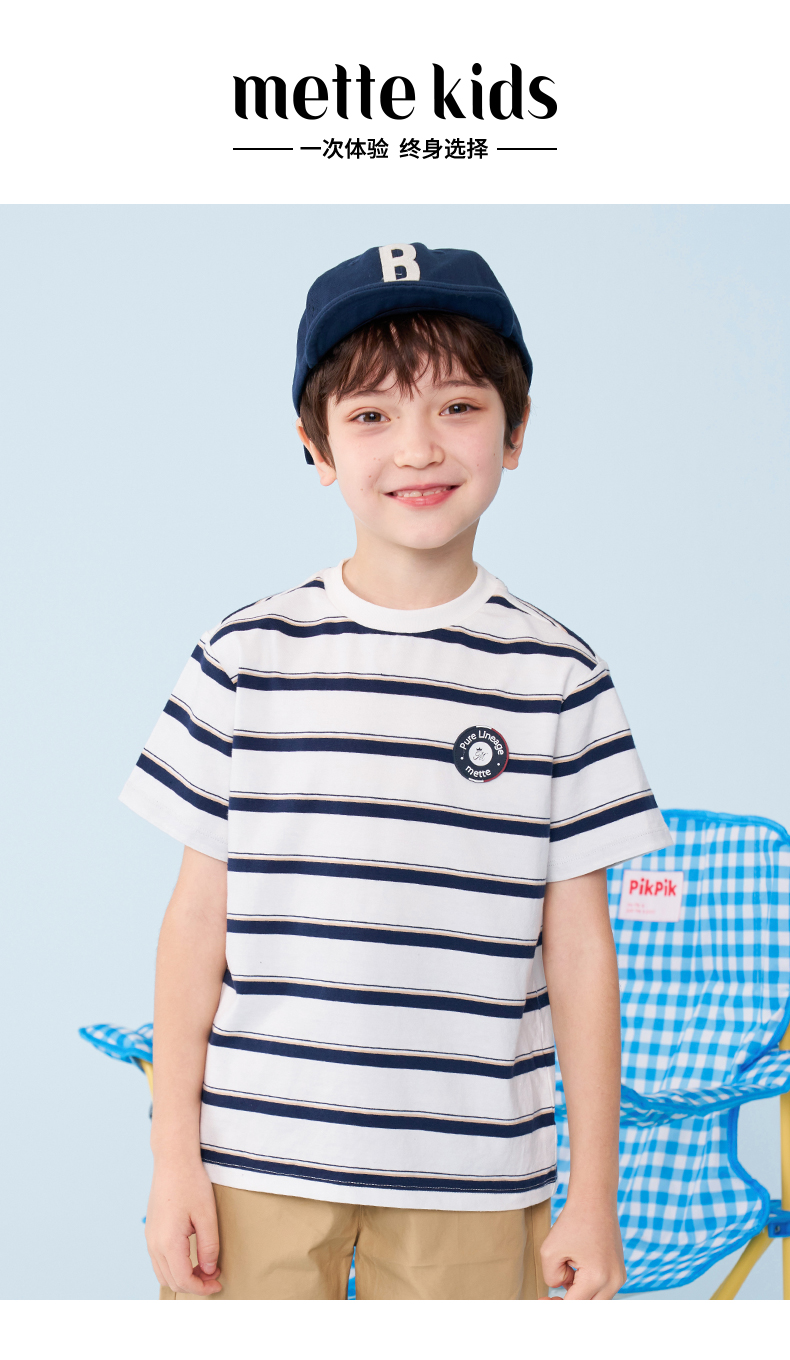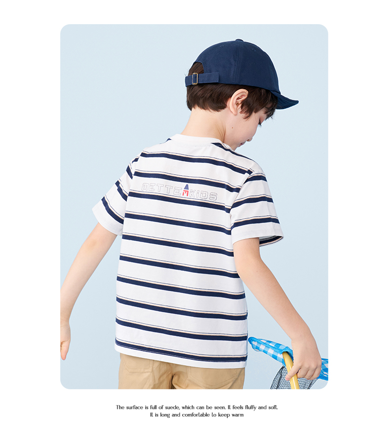 mettekids男童短袖t恤夏季儿童休闲条纹童装上衣中大童洋气打底衫