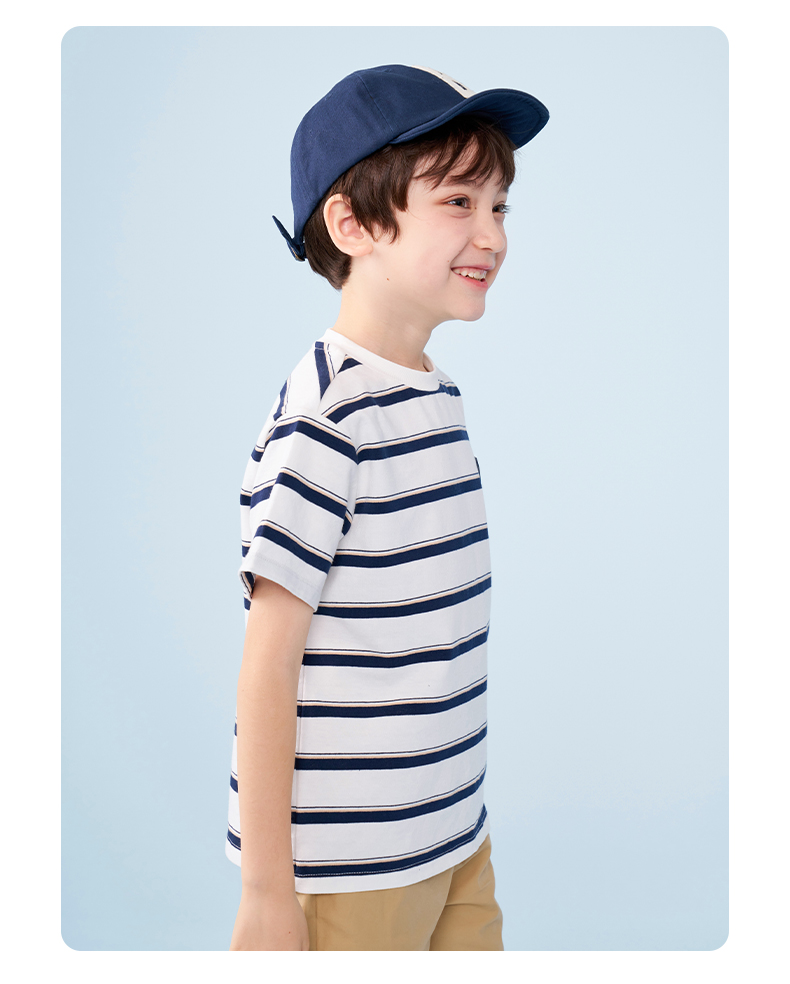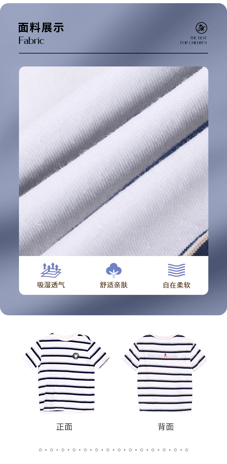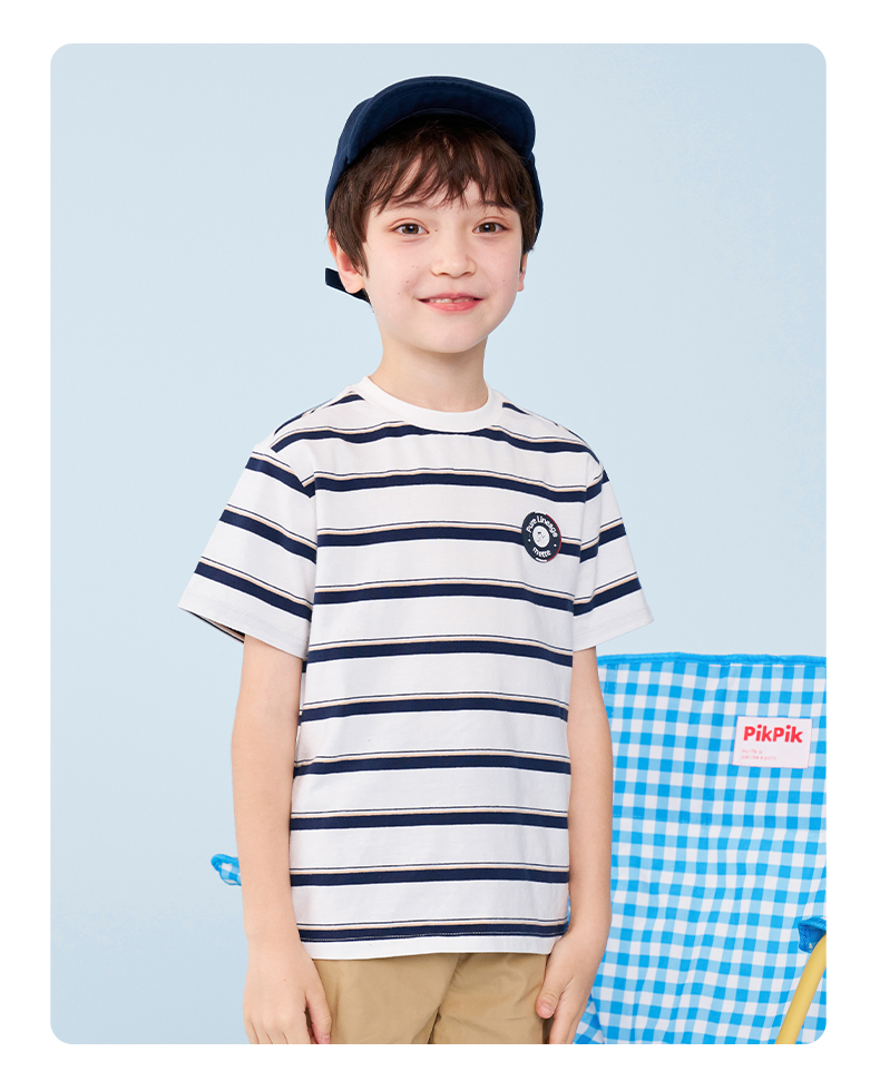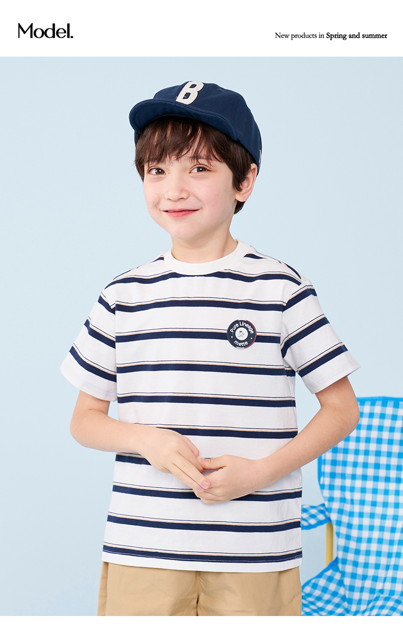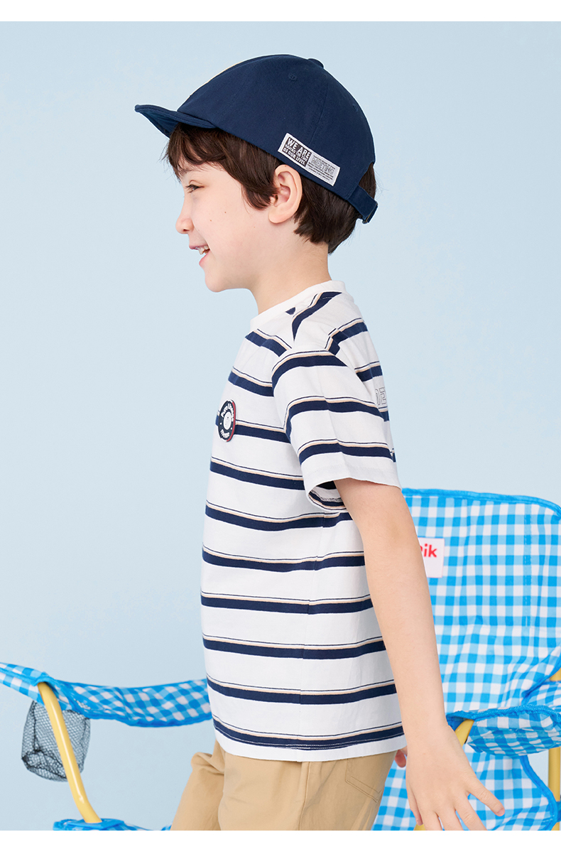 mettekids男童短袖t恤夏季儿童休闲条纹童装上衣中大童洋气打底衫