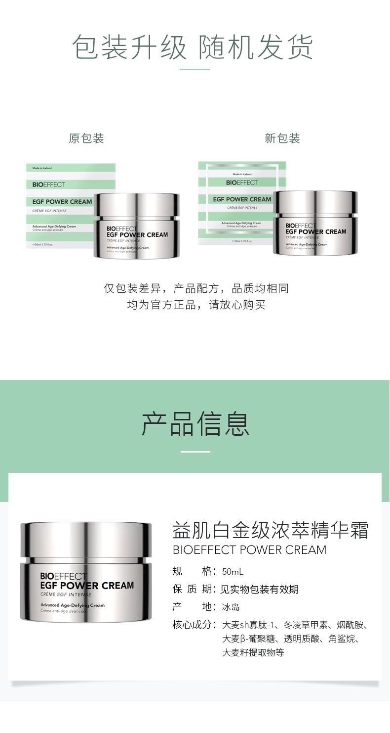 保税直发 BIOEFFECT 蓓欧菲 益肌白金级浓萃精华霜 50mL