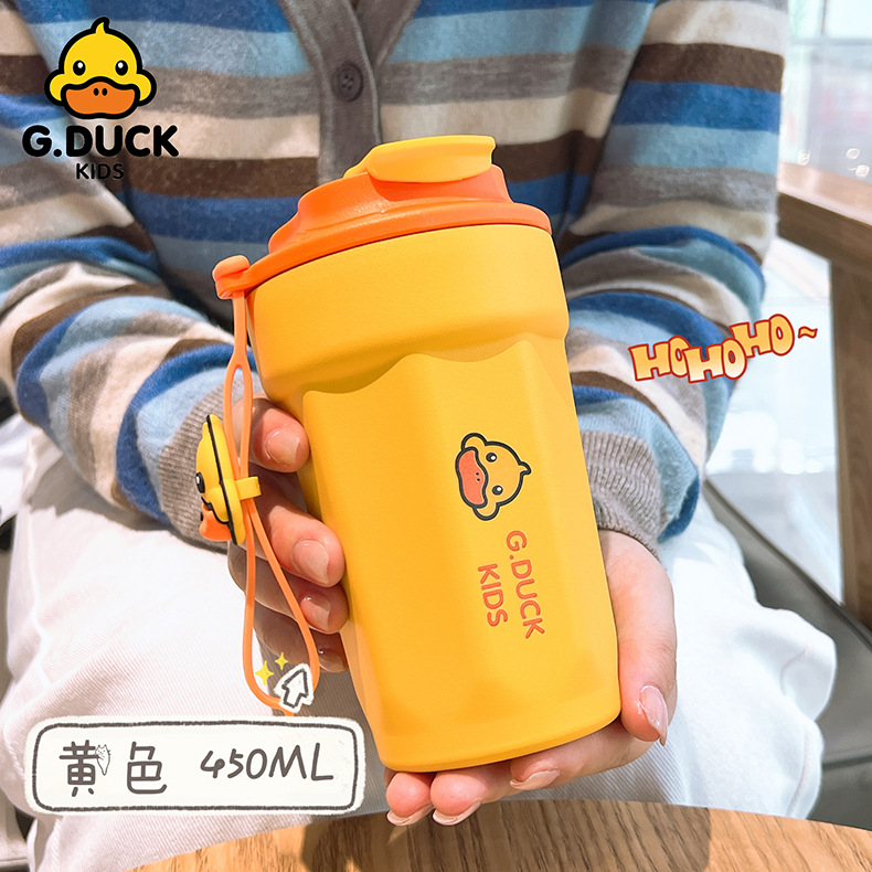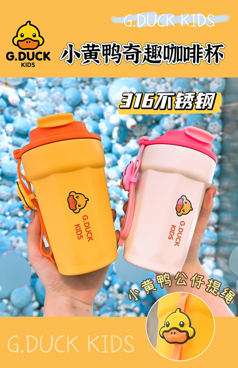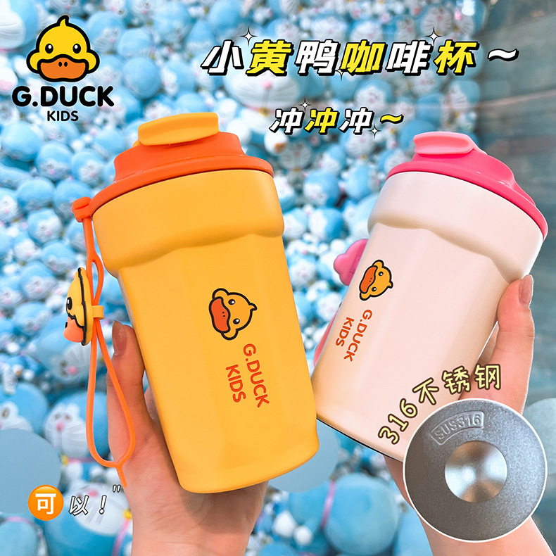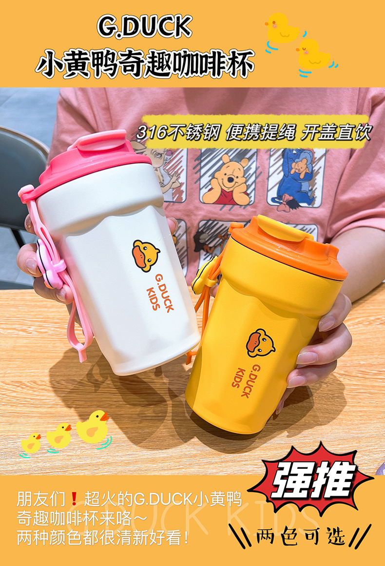 小黄鸭儿童水杯咖啡杯316不锈钢保温杯450ml