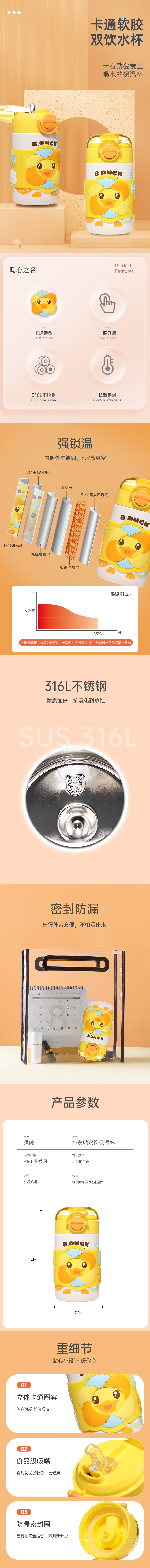 B.DUCK双饮保温水壶320ML FU-21-195