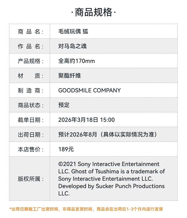 【GSC预售定金】毛绒玩偶 狐 对马岛之魂 手办模玩周边