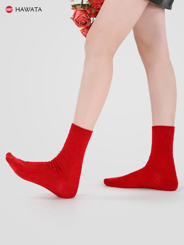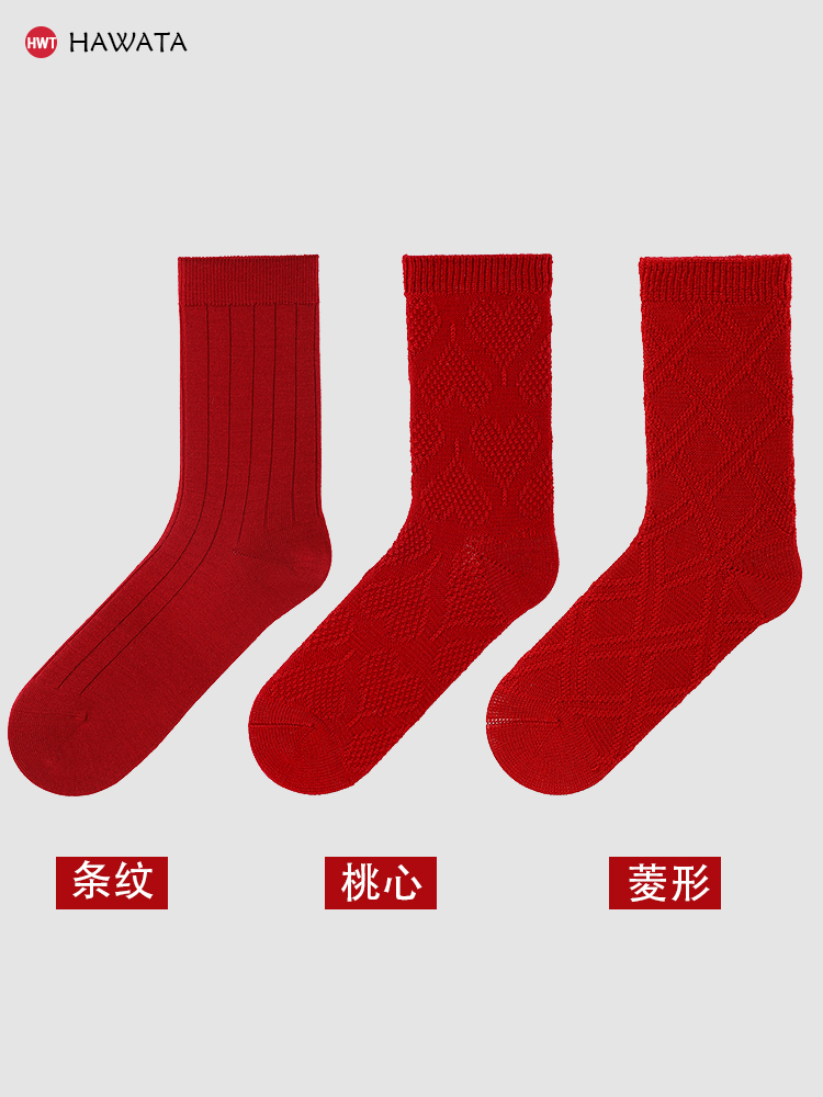 哈瓦塔新年喜庆保暖小红袜运动圆头袜(无止滑点)H160137