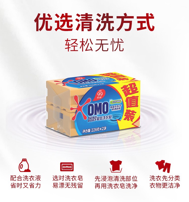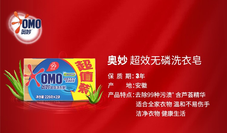 【百】奥妙肥皂洗衣皂大块206g*2块