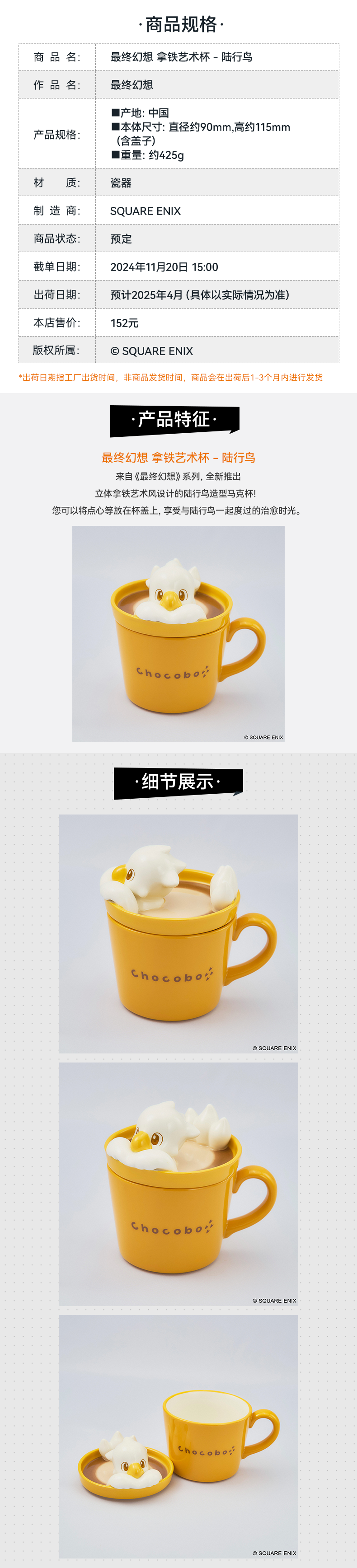 【GSC现货】最终幻想 拿铁艺术杯 - 陆行鸟