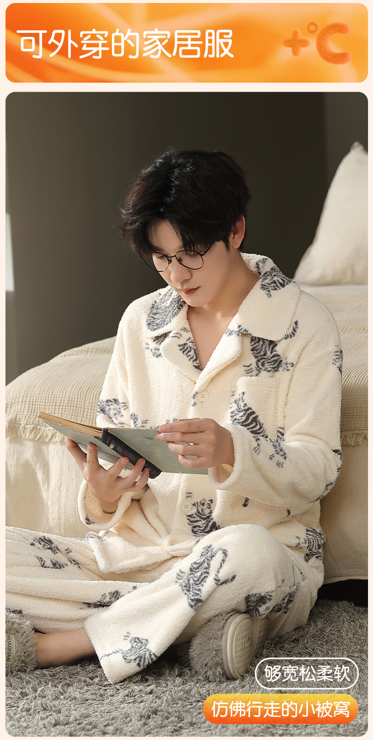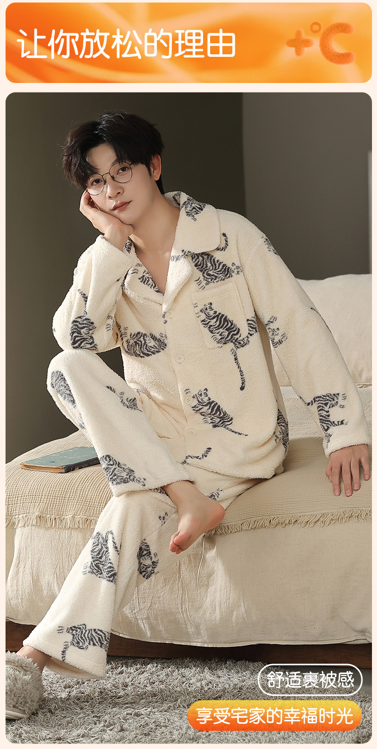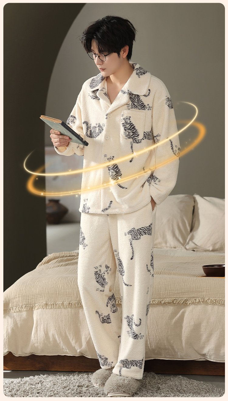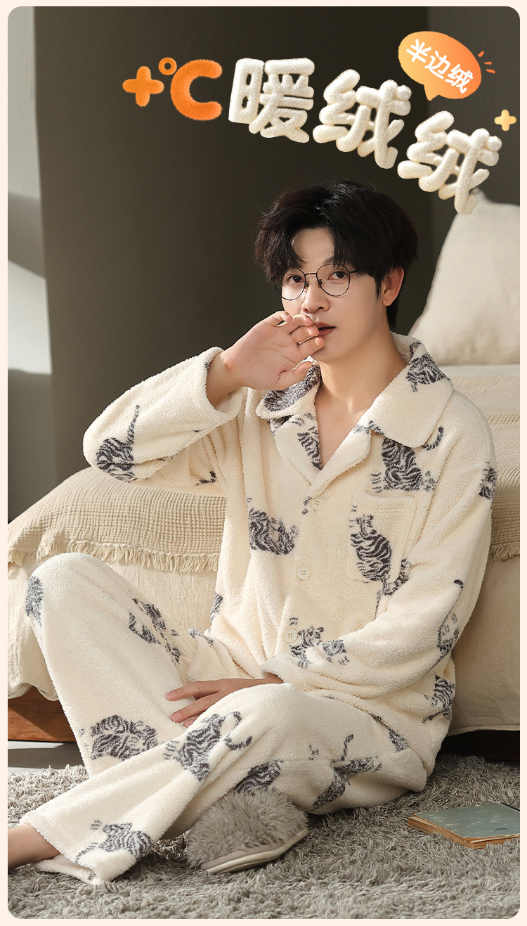 【L-3XL】【猫人】男士冬款半边绒家居服套装