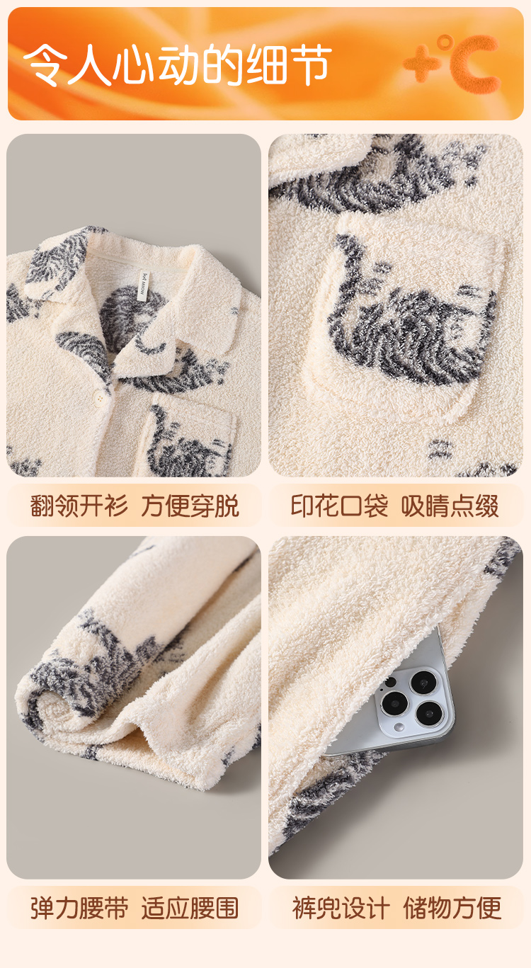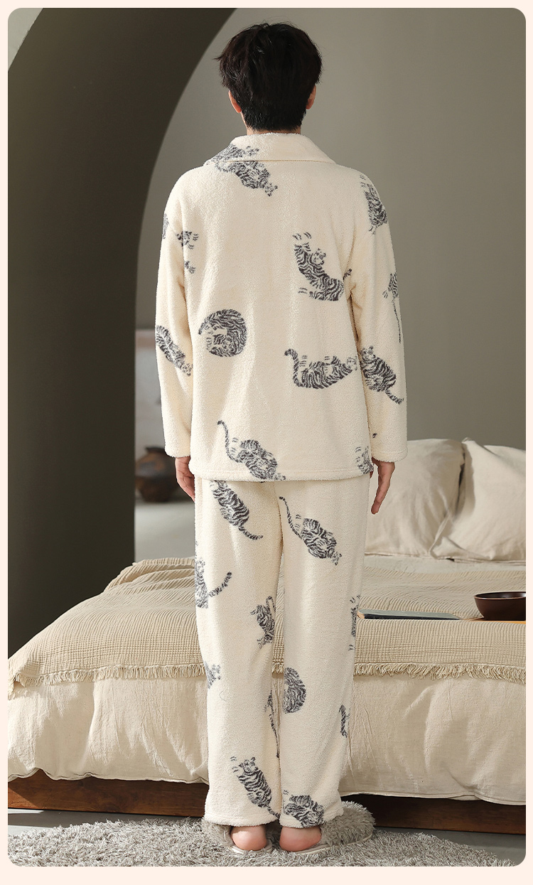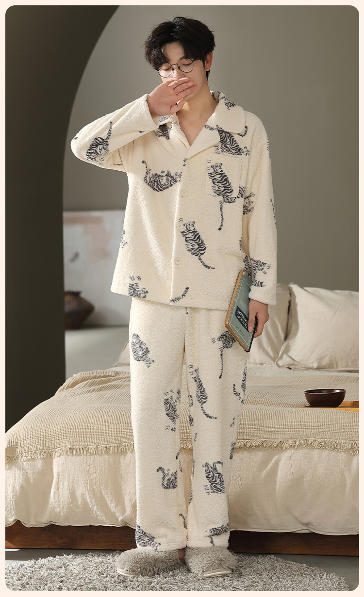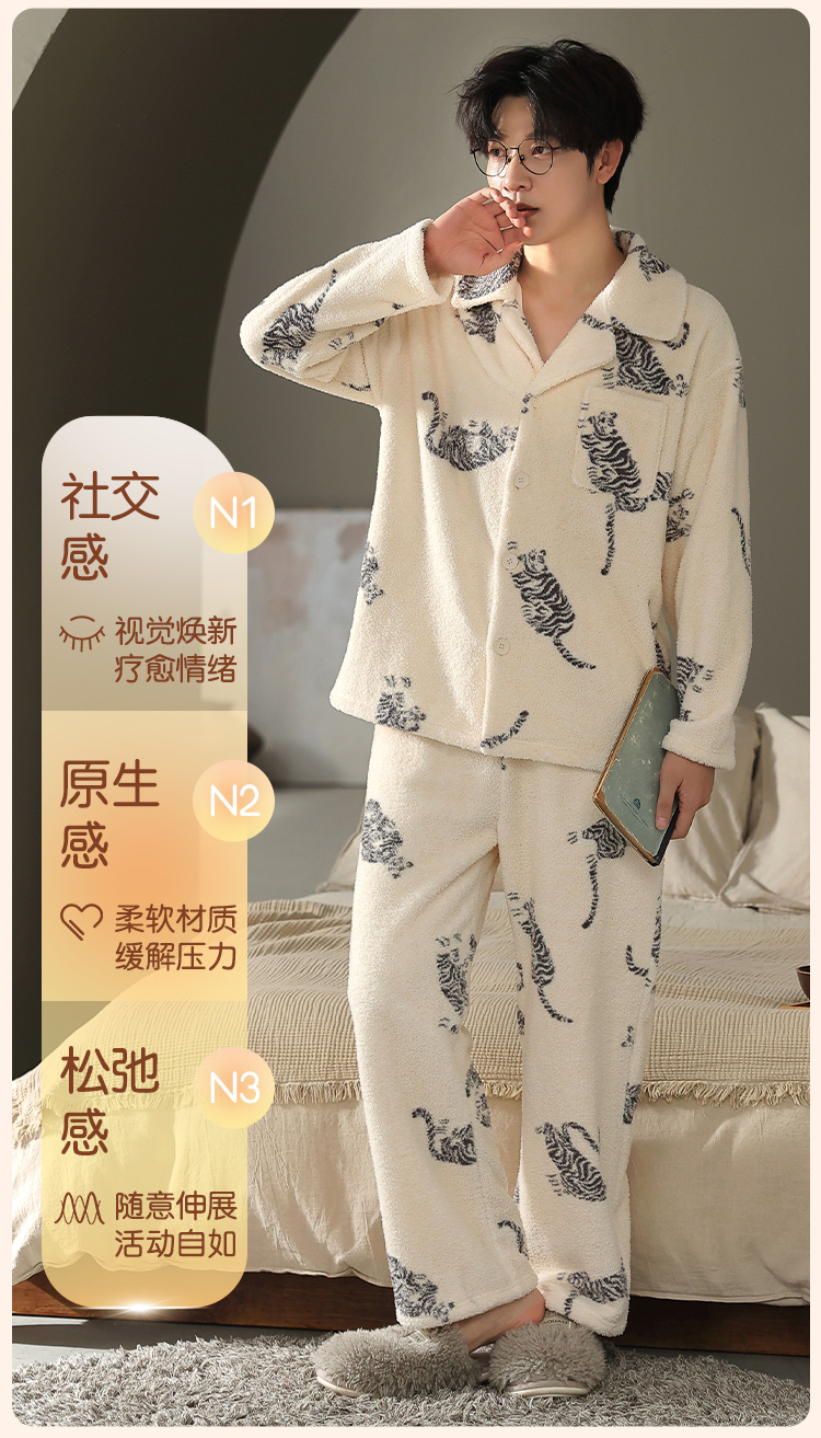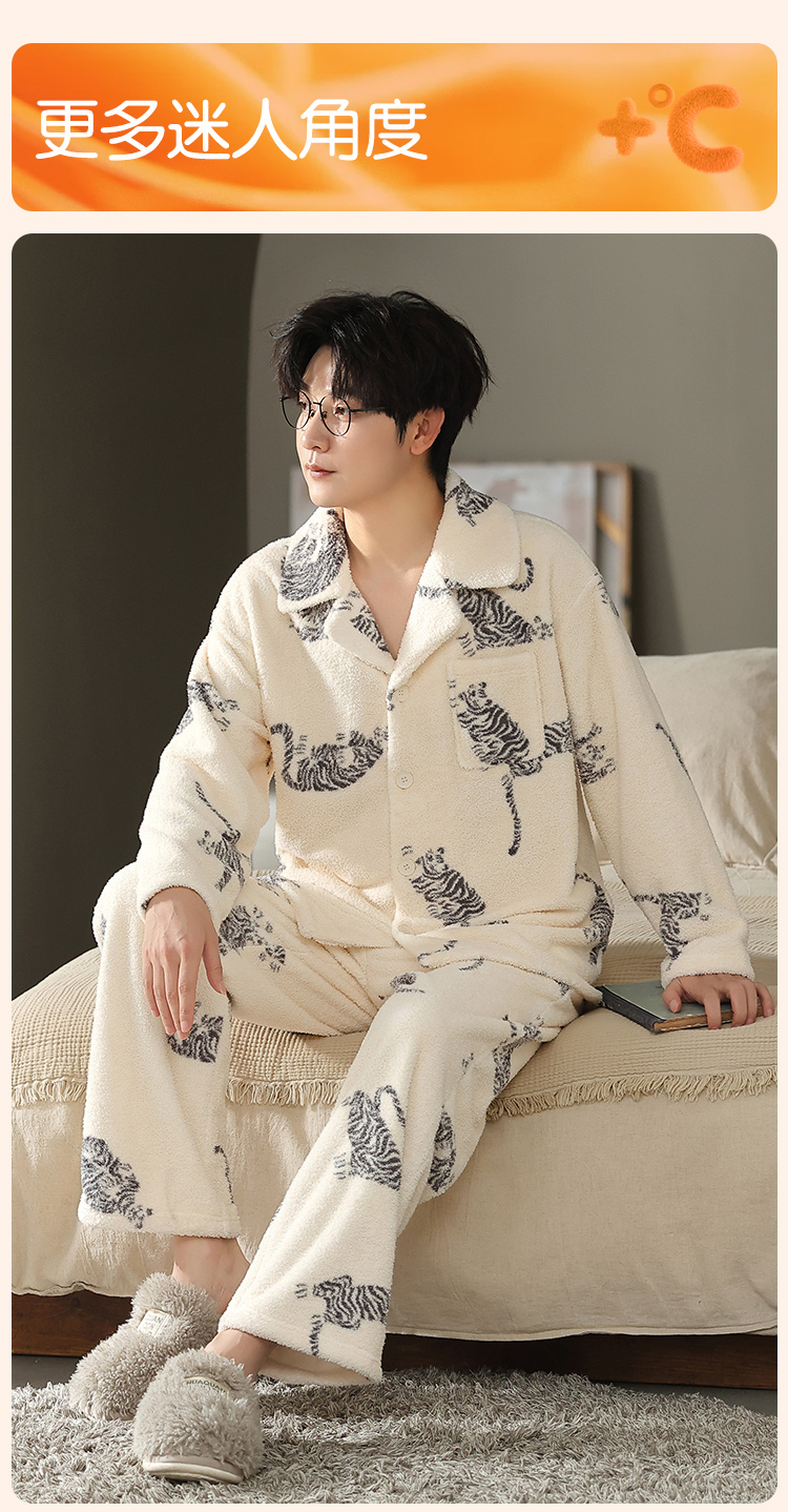 【L-3XL】【猫人】男士冬款半边绒家居服套装
