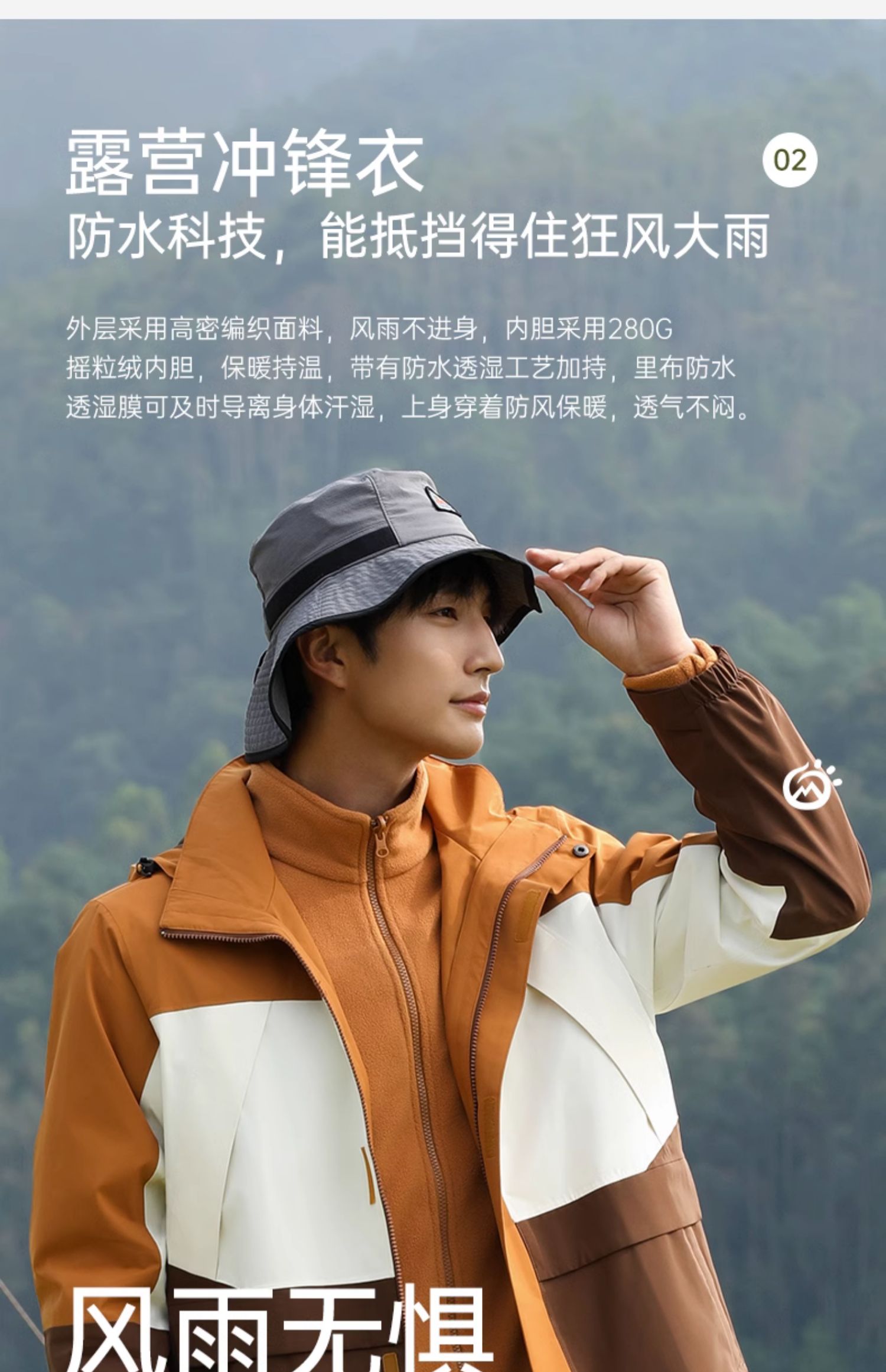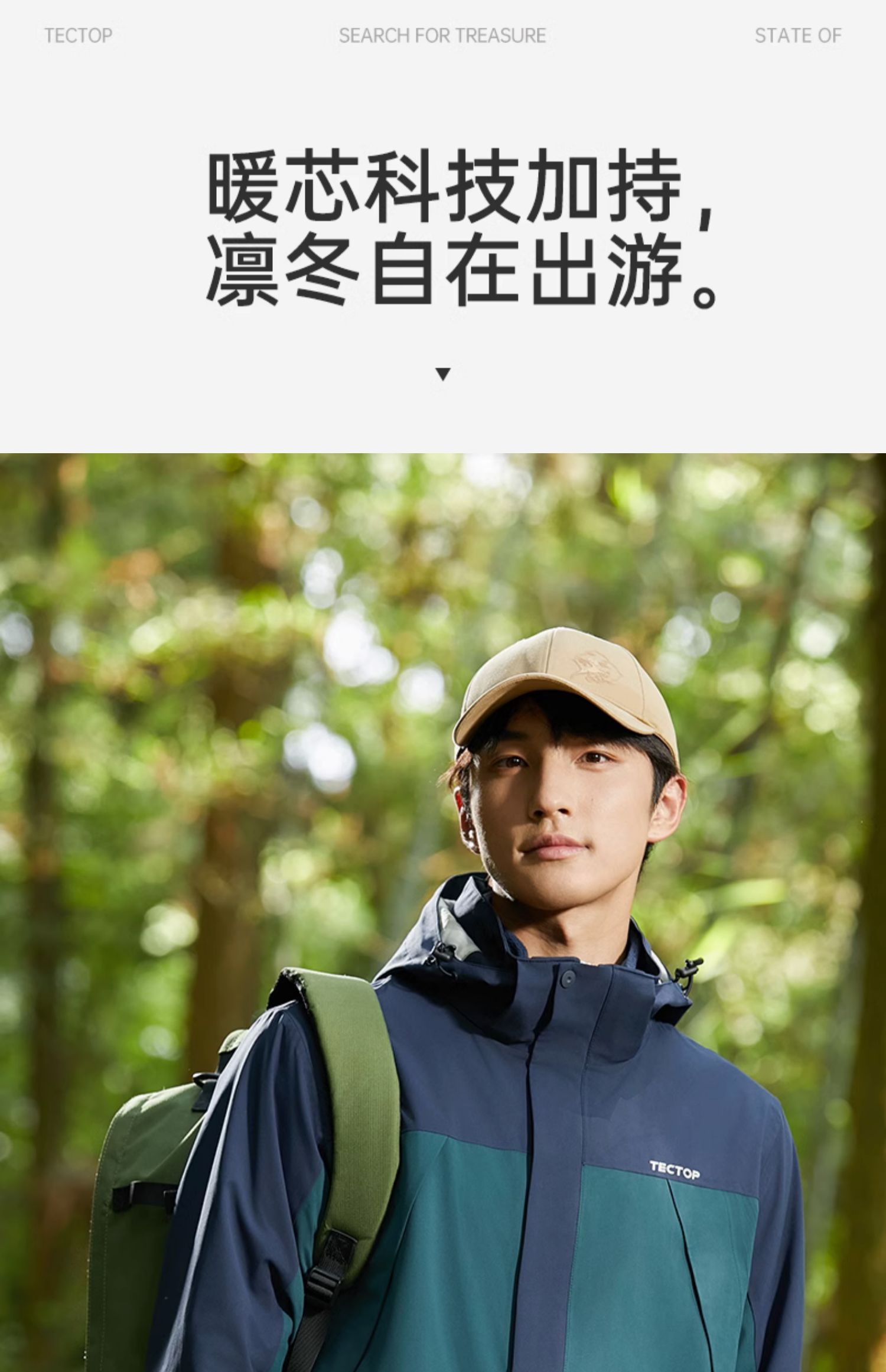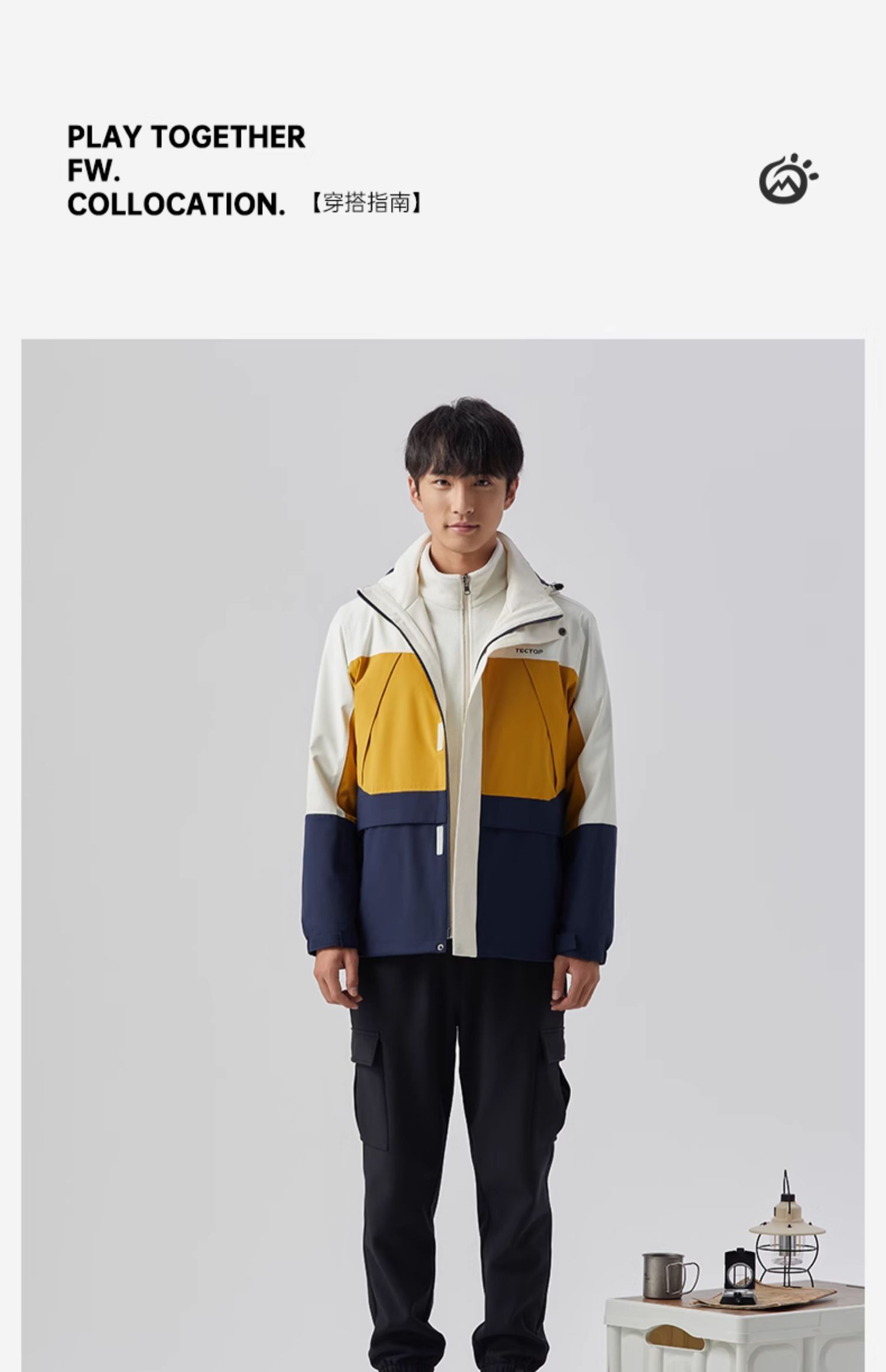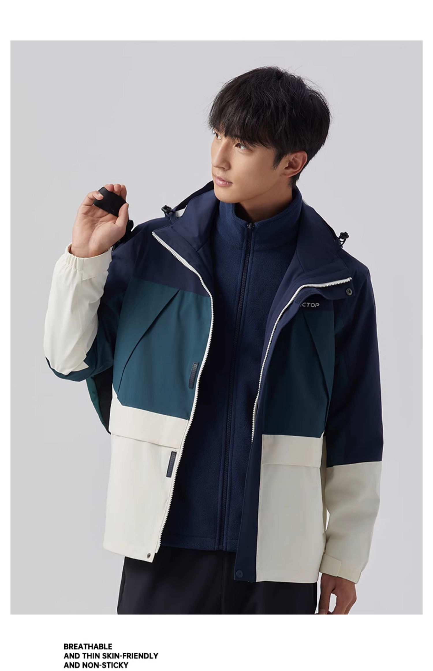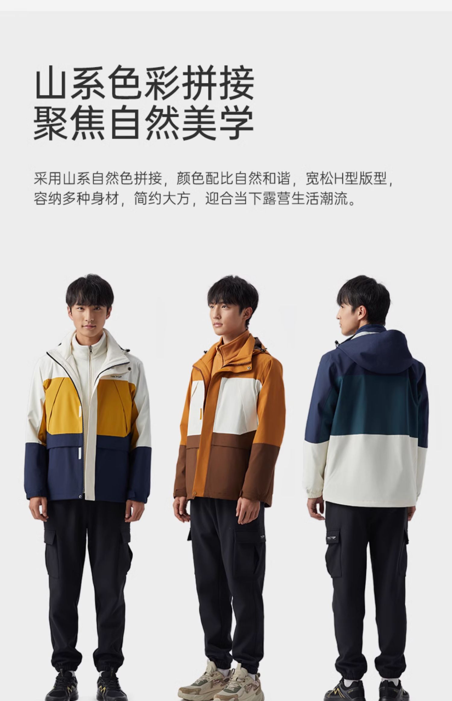 探拓户外山系冲锋衣男士三合一可拆卸新款旅行外套加绒加厚登山服