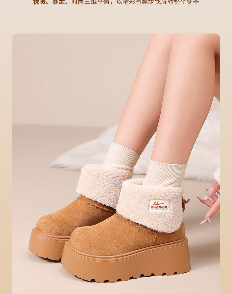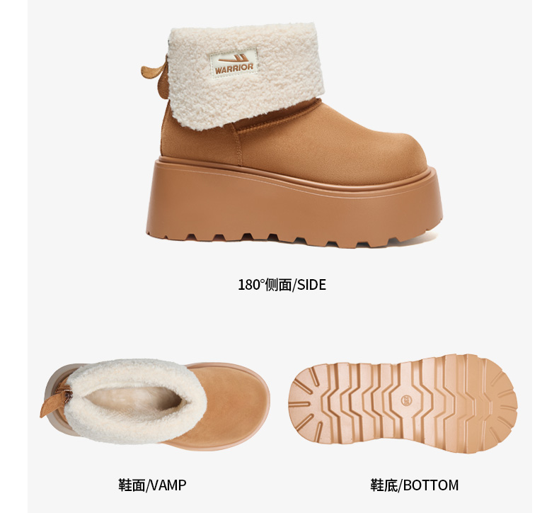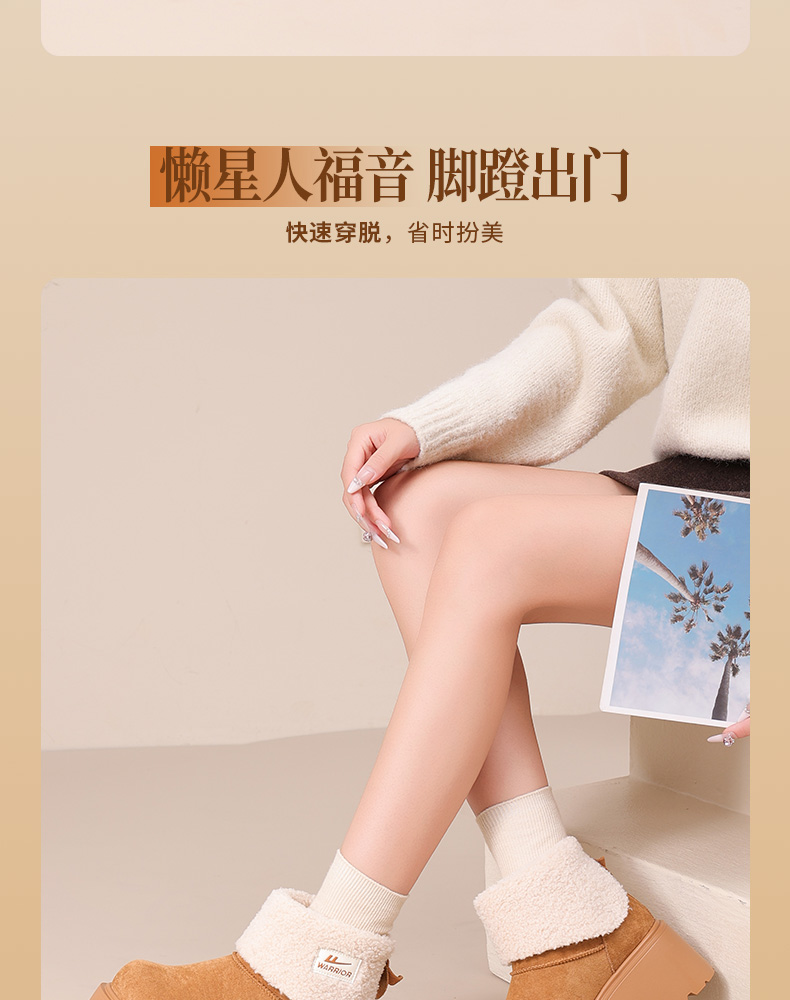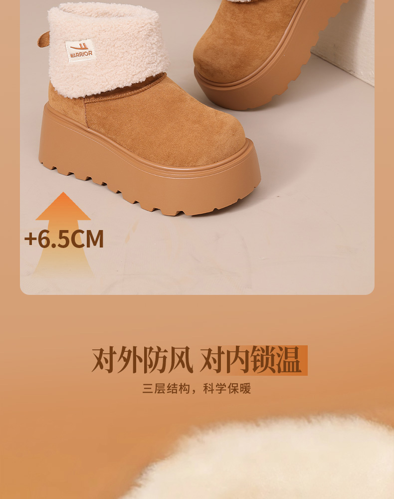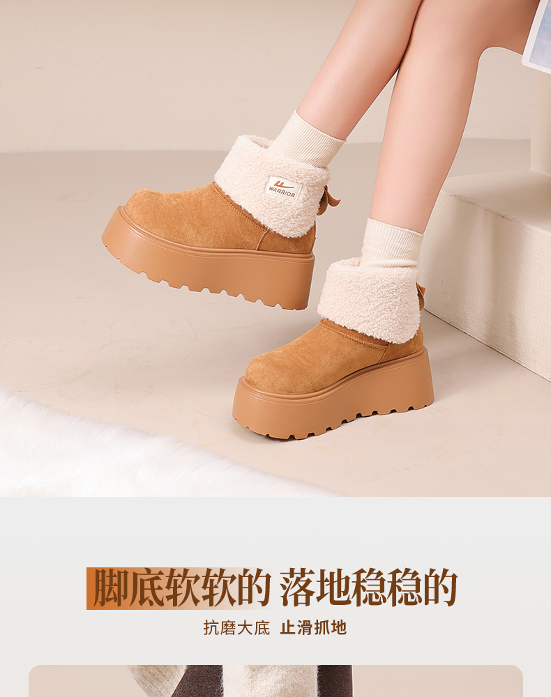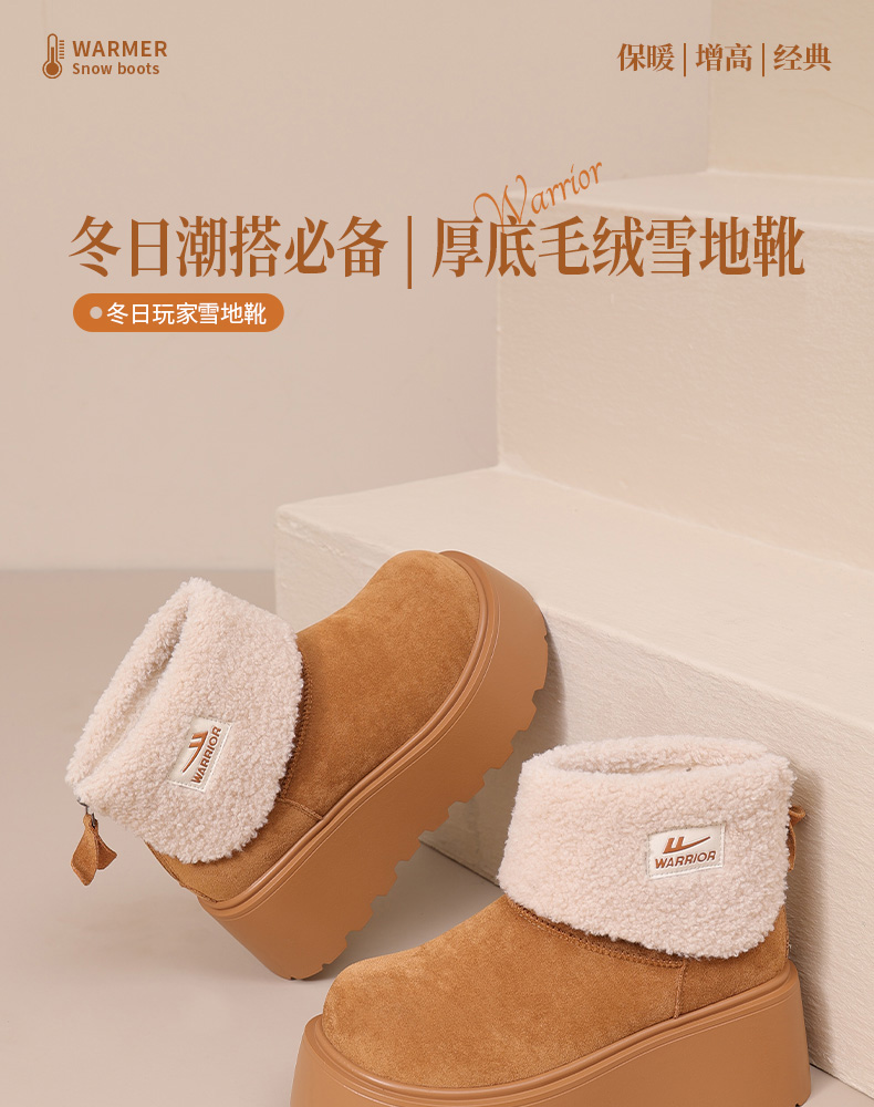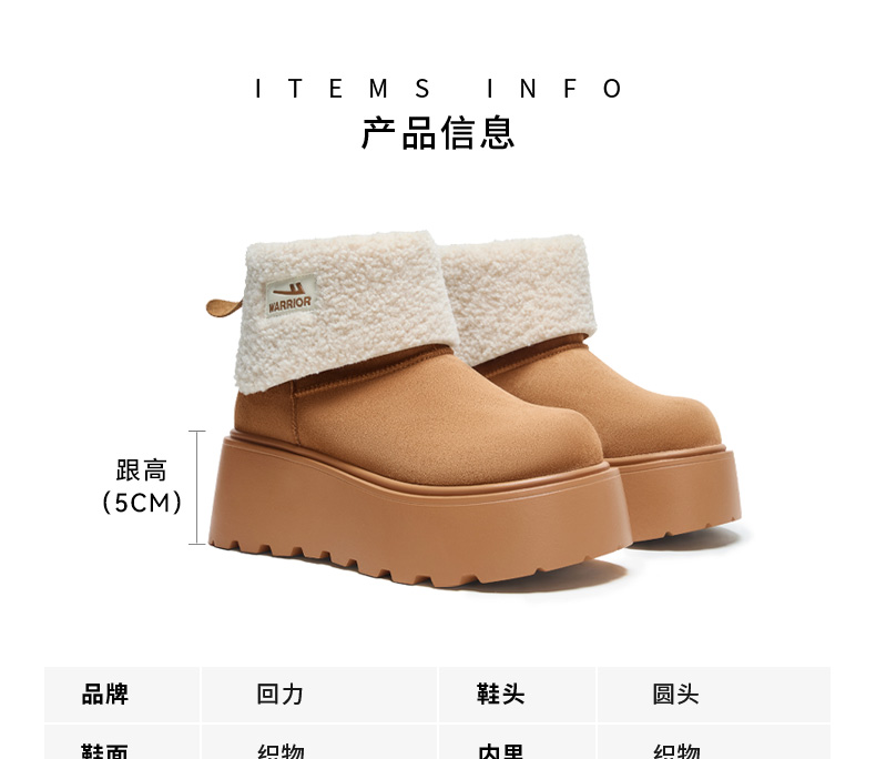 回力雪地靴女款2025冬季新款加绒短靴小个子厚底女鞋加厚保暖棉鞋
