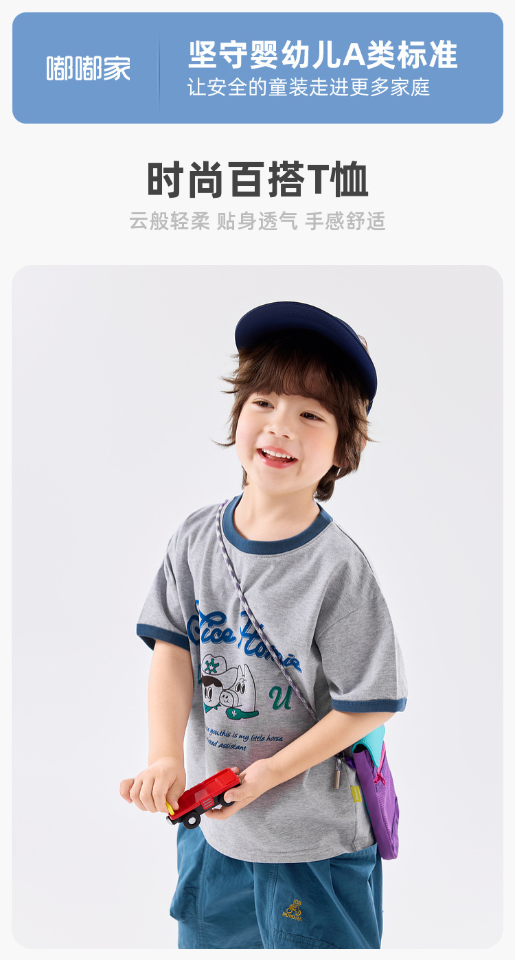 【7A抑菌】嘟嘟家男童短袖T恤夏季新款女童体恤夏装儿童上衣童装