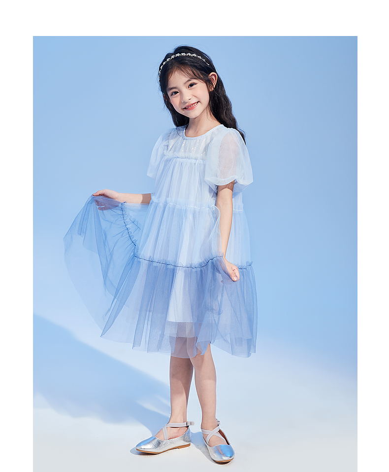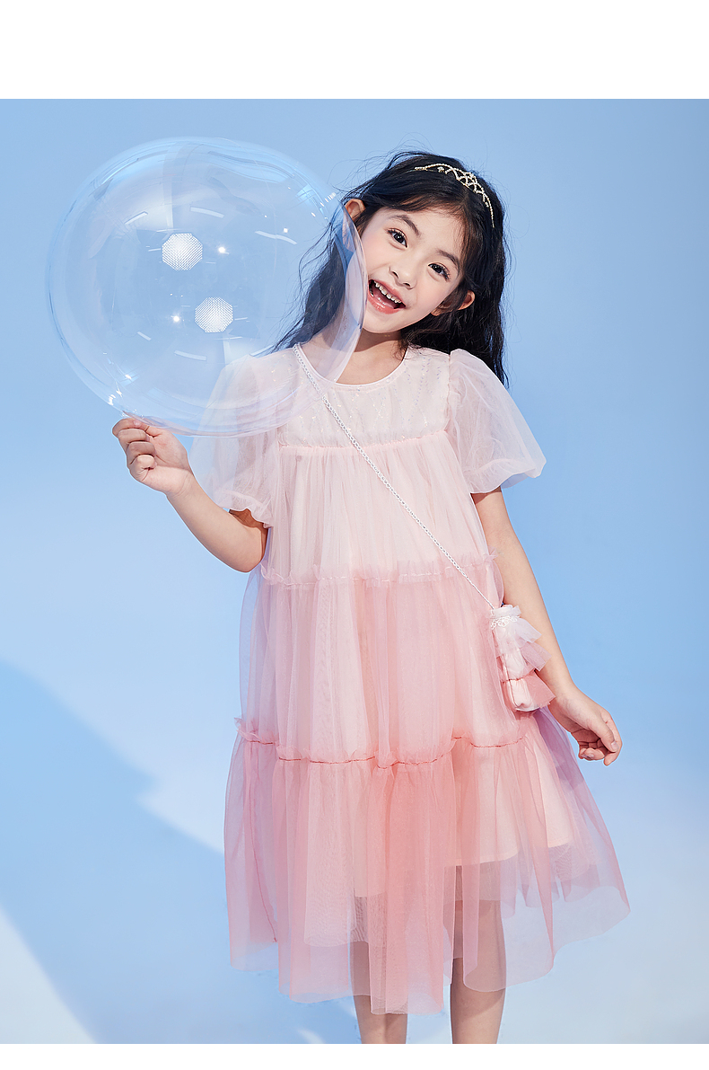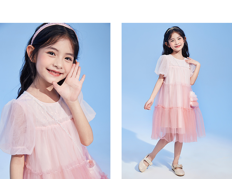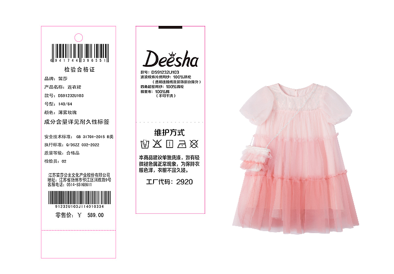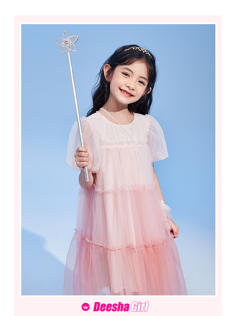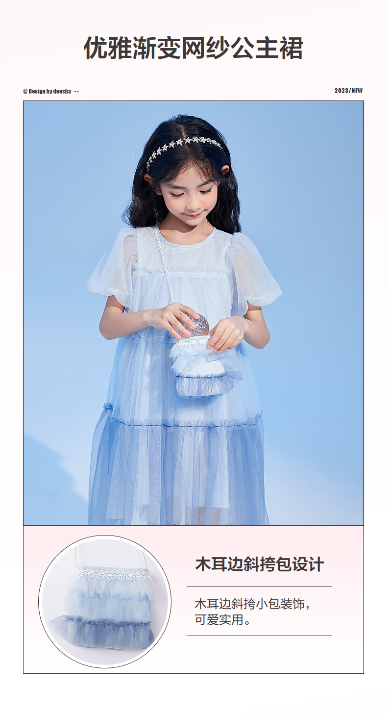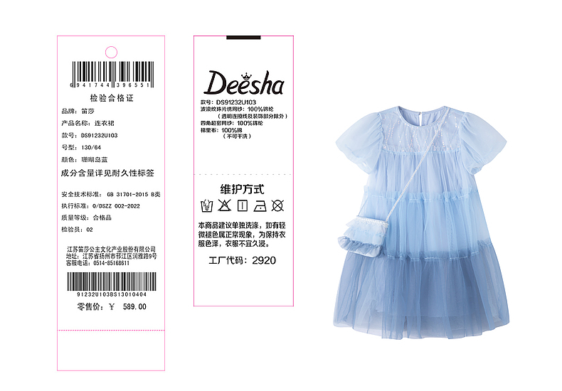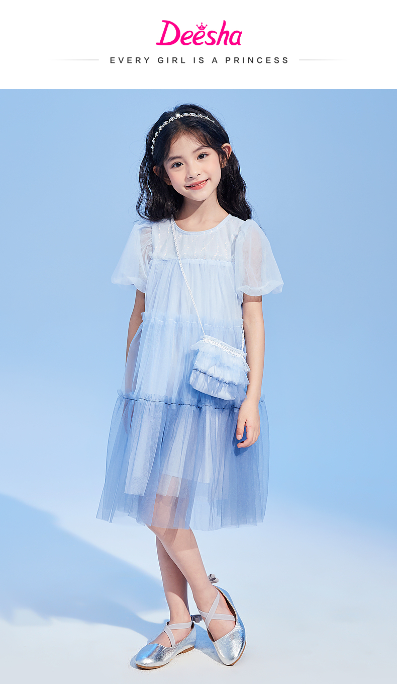 笛莎Deesha 2026年夏季新款青少年学院风刺绣标连衣裙裙子