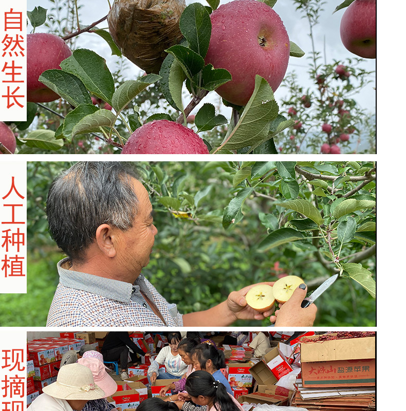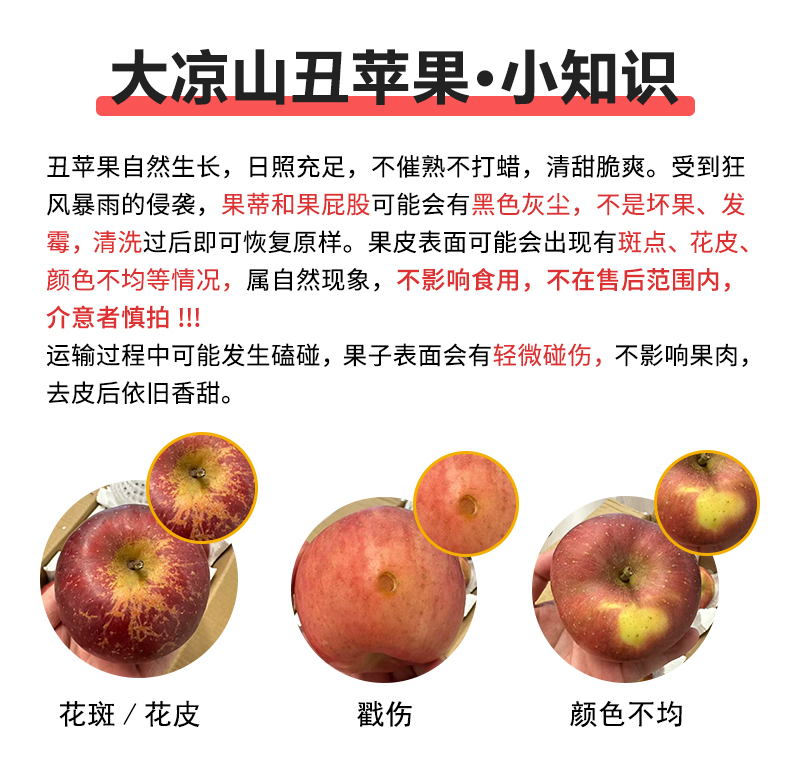 2.苹果自然种植,果子果面会有水波纹,花斑,花纹,黑点属于正常情况,并非坏果