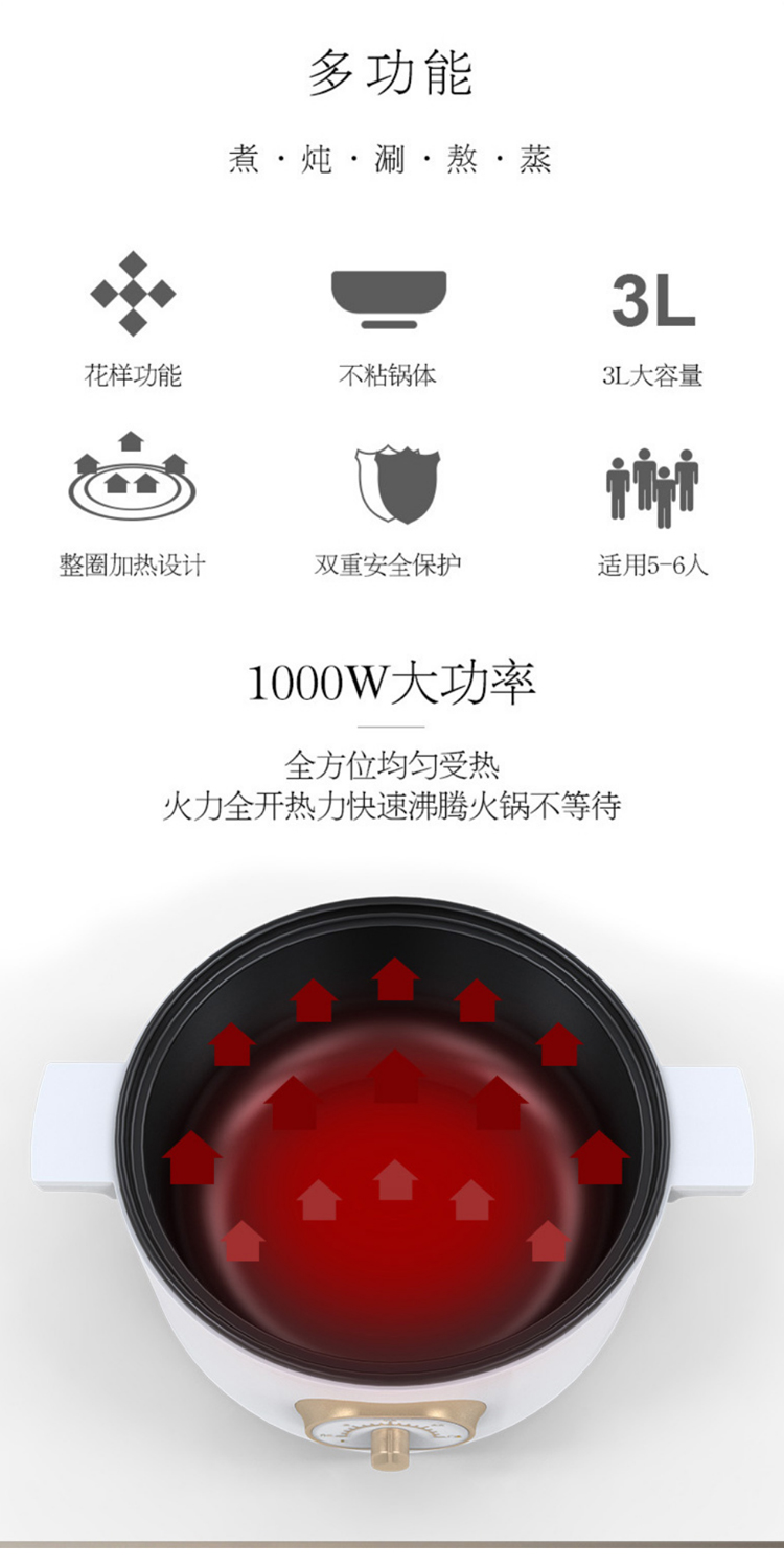 【蒸煮炒一体锅】电火锅家用大容量宿舍电煮锅 多功能不粘电炒锅电热锅