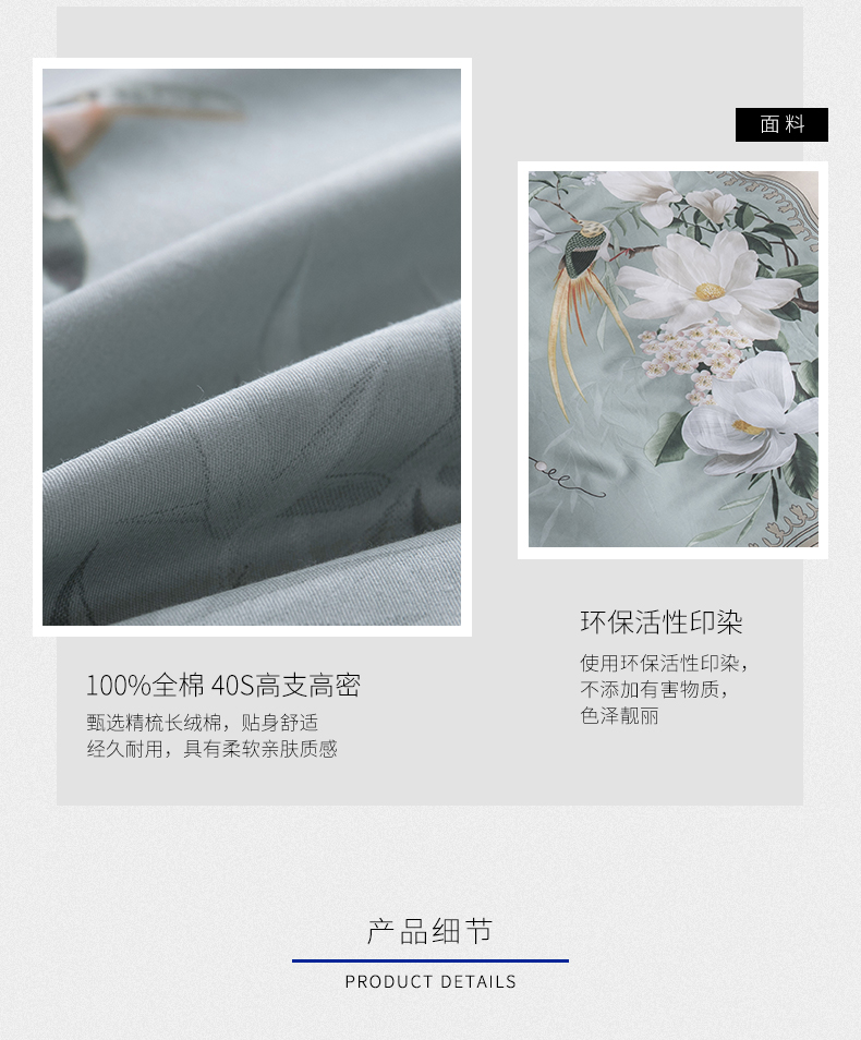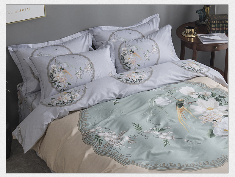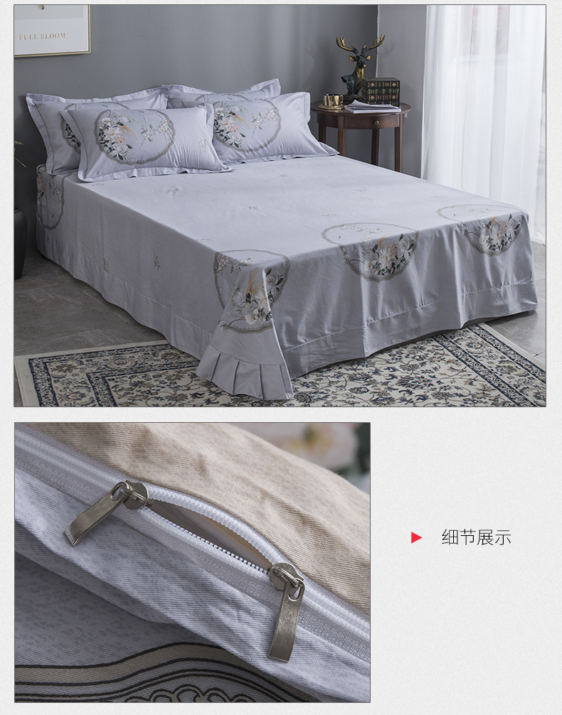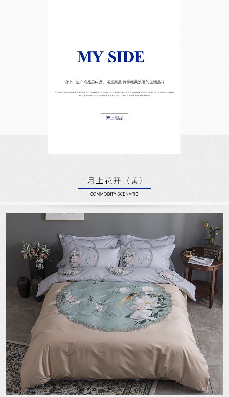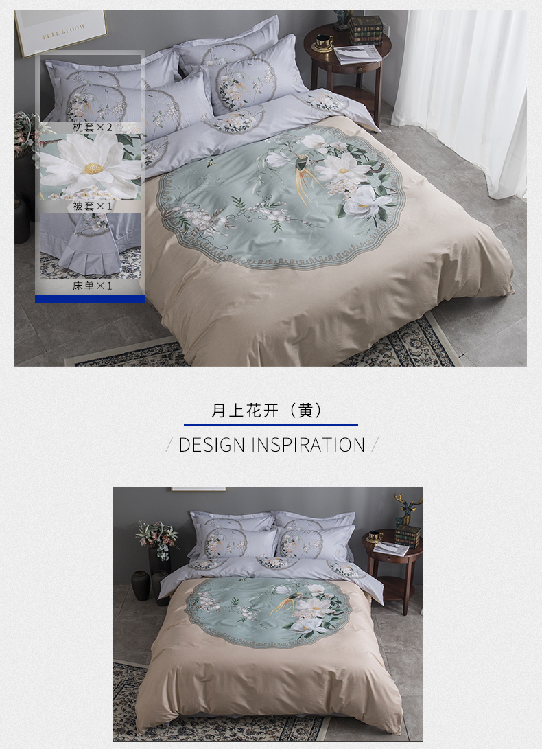 新中式风格全棉四件套 大版花型环保活性印染不褪色床单被套40支纱 月上花开(黄) MY SIDE