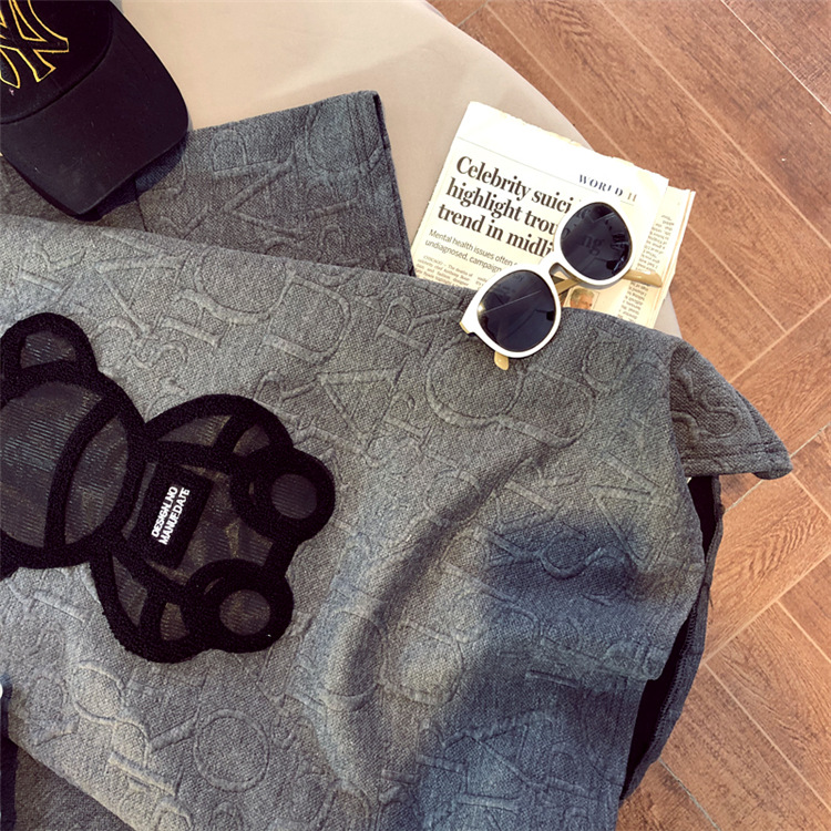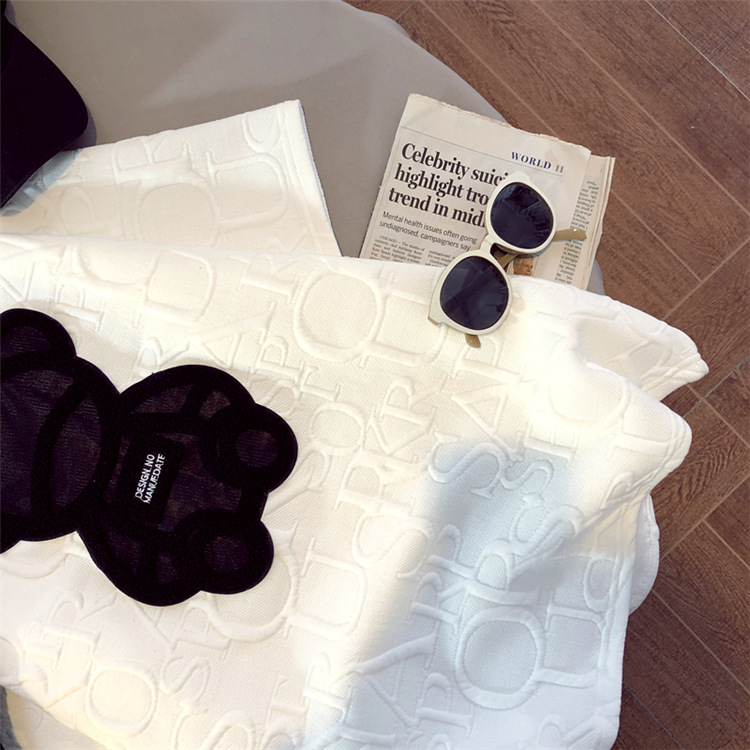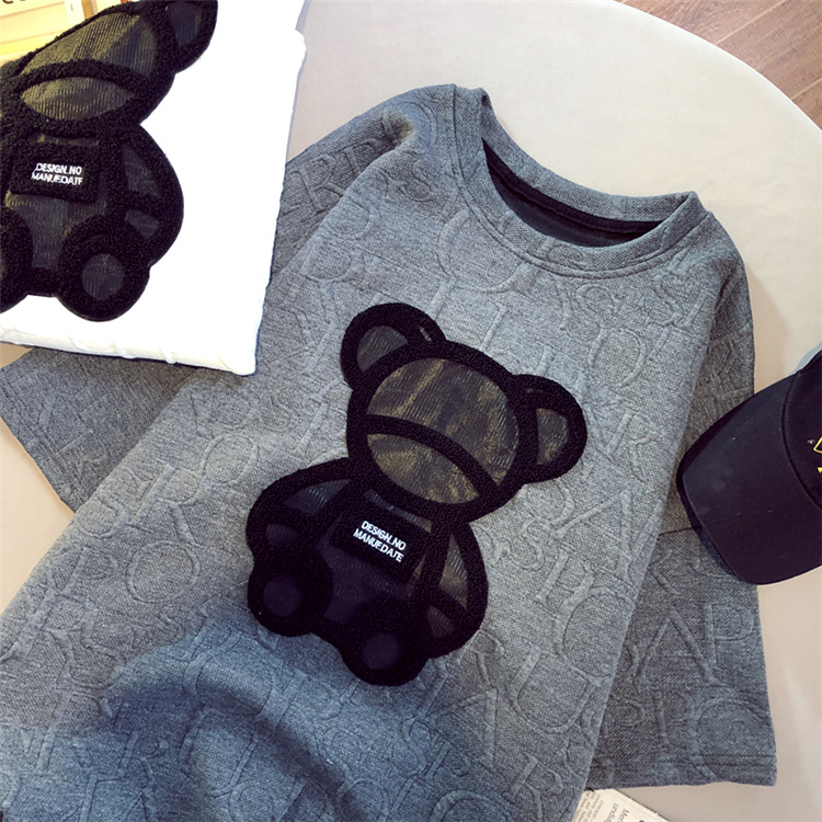 加厚T恤女2023早春新款中长款小熊圆领短袖宽松印花打底衫上衣t潮