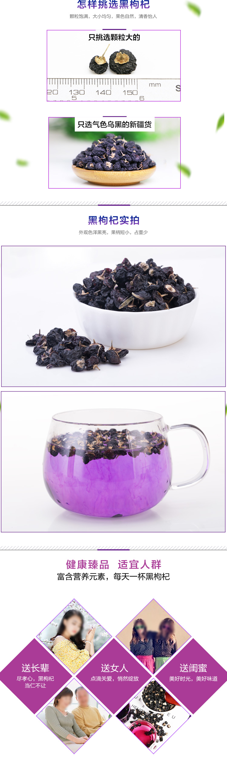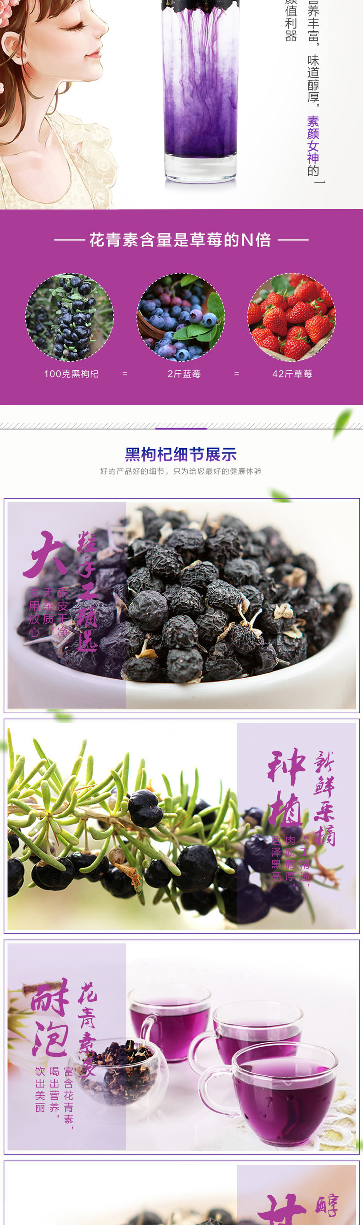 原花青素、氨基酸、花色苷丰富,抗氧化、保护视力。